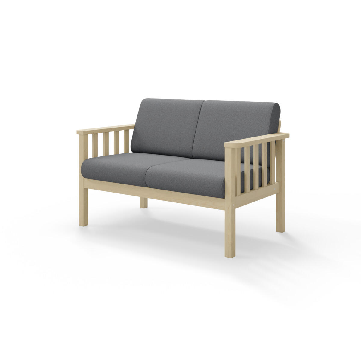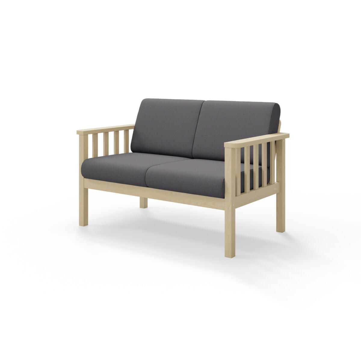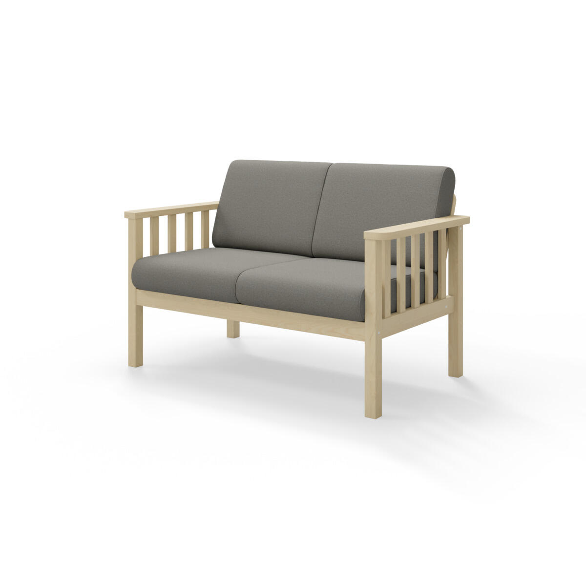 Sofa med stabil stamme i tre og puter av kaldskum for ekstra komfort. Avtakbart trekk på rygg- og seteputer. Sittehøyde 44 cm, sittedybde 60 cm. Høyde på ben: 26 cm.