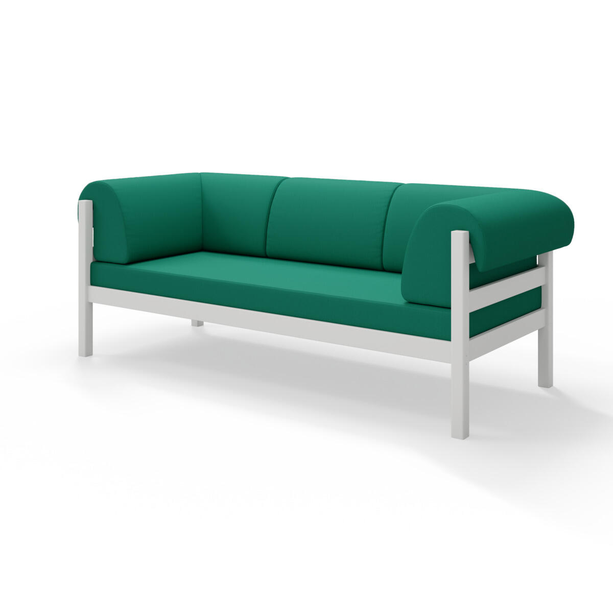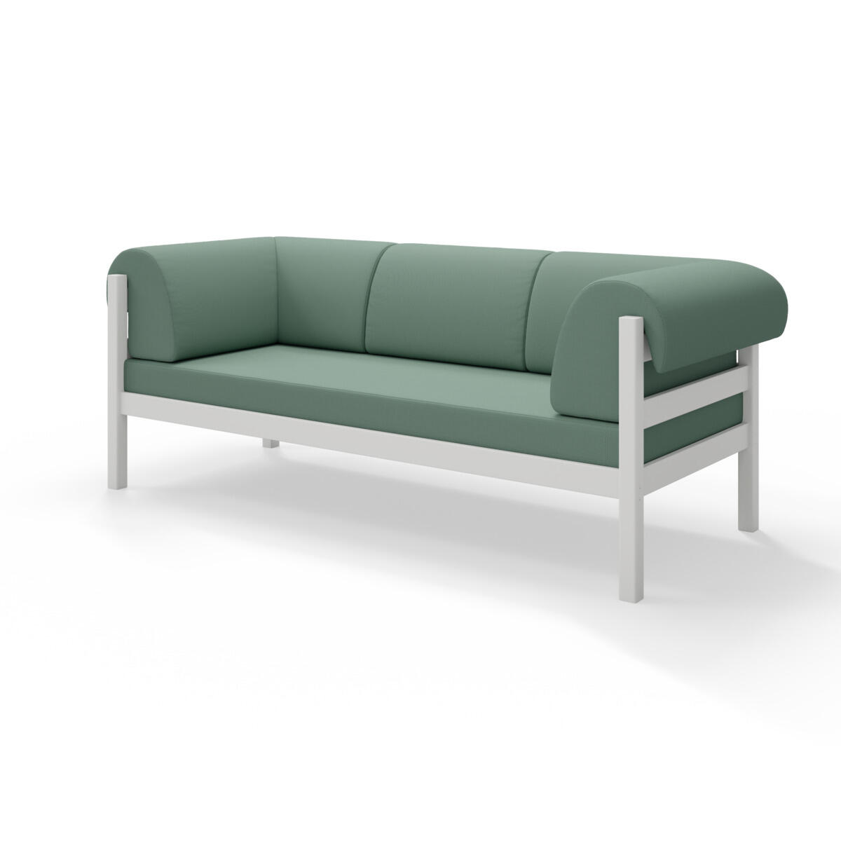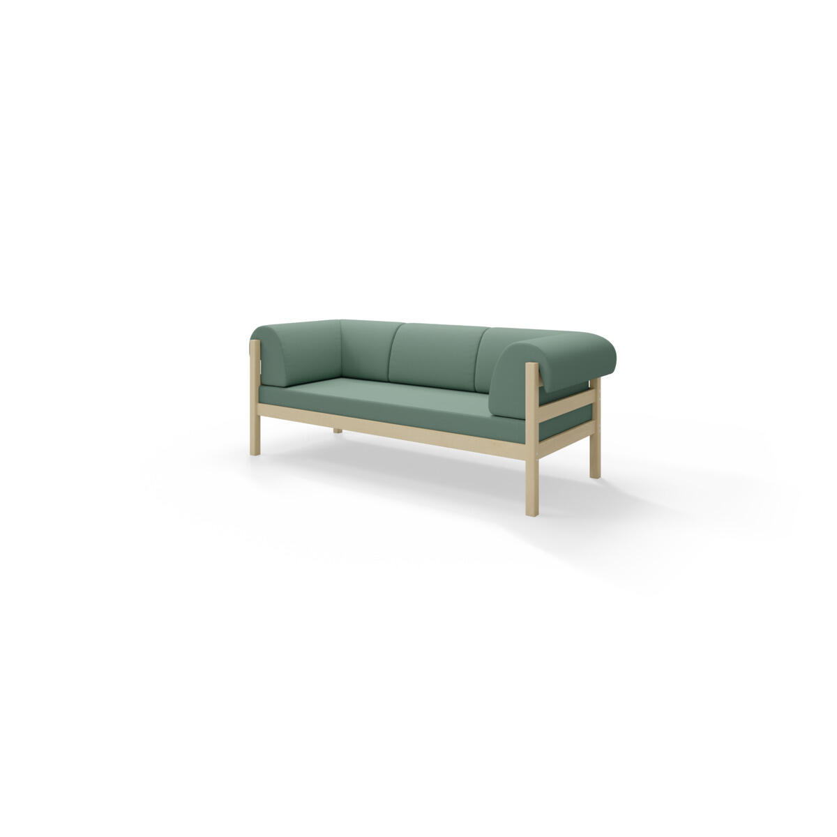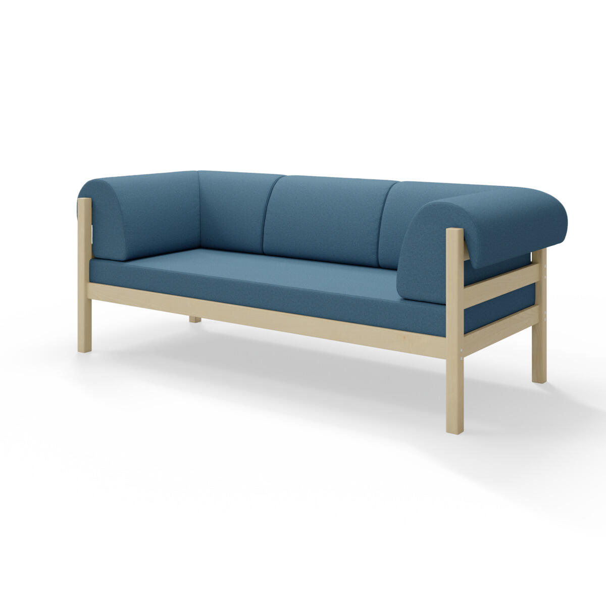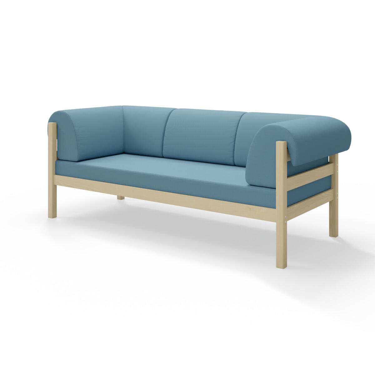 Sofa med solid stamme i bjørk og bunn av hard trefiberplate. Den myke polstringen i kaldskum gir en behagelig sitteopplevelse for både barn og voksne. Avtakbart trekk. Kompletter med vannavvisende trekk for å forlenge sofaens levetid. Lengde 219 cm. Sittehøyde 44 cm, sittedybde 60 cm.