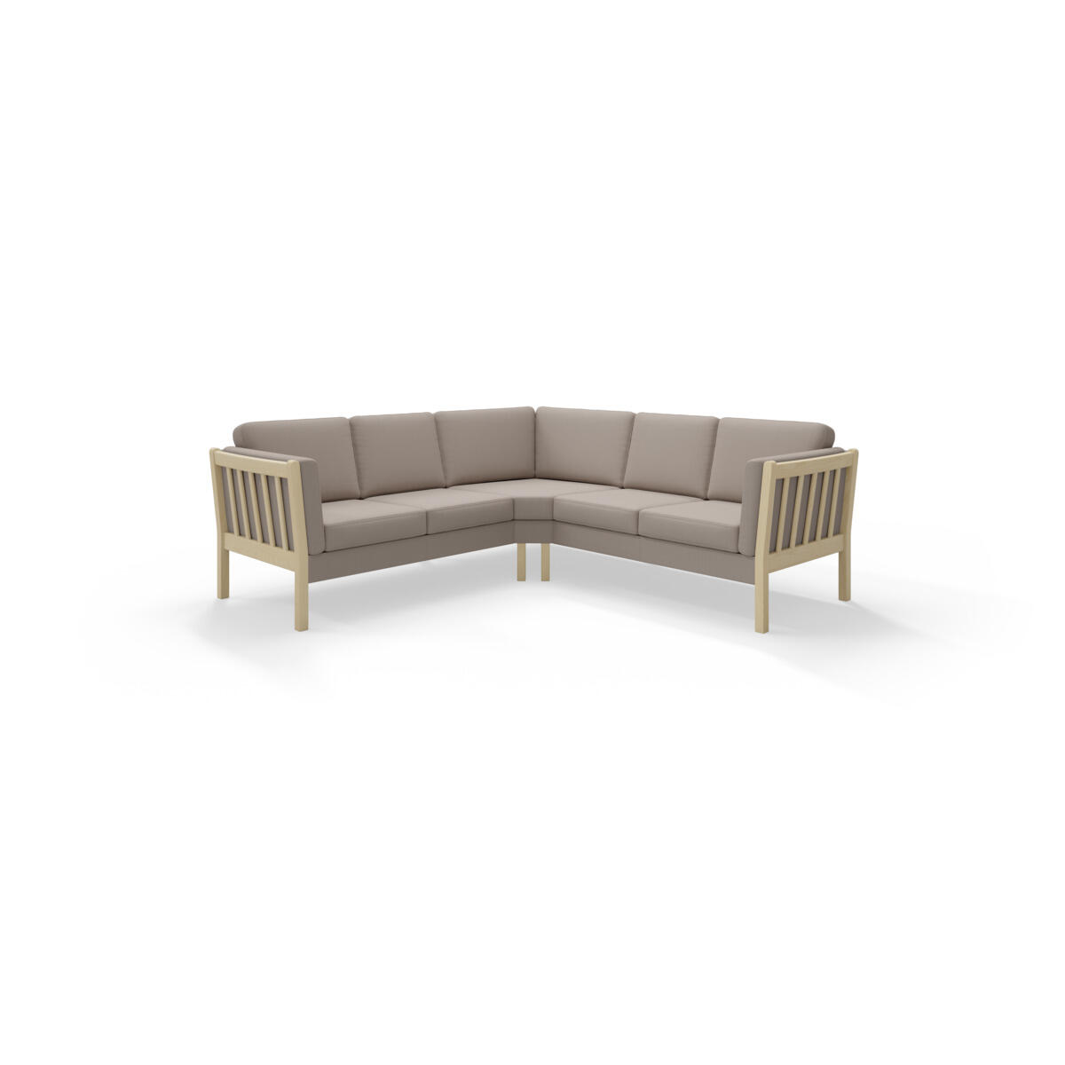 Sofa med stabil trestamme, nozagfjæring i bunnen og puter av kaldskum for ekstra komfort. Avtakbart trekk på rygg- og sitteputer. Mål: 209x209 cm. Sittehøyde 45 cm, sittedybde 53 cm. Benhøyde 10 cm