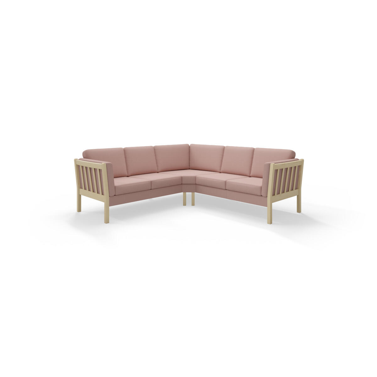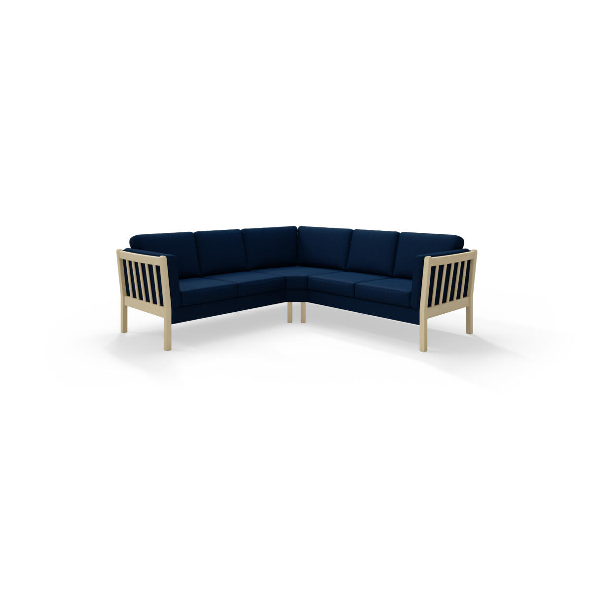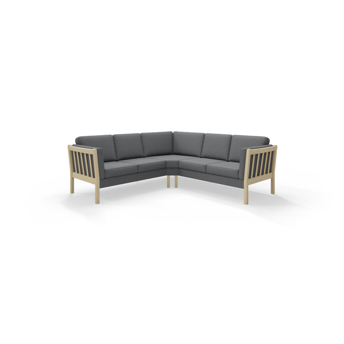 En moderne og tidløs hjørnesofa med et enkelt design som passer inn i de fleste miljøer. Treramme med nozag-understell og polstring av kaldskum. Understell i pulverlakkert metall. Avtakbart trekk på rygg- og sitteputer.