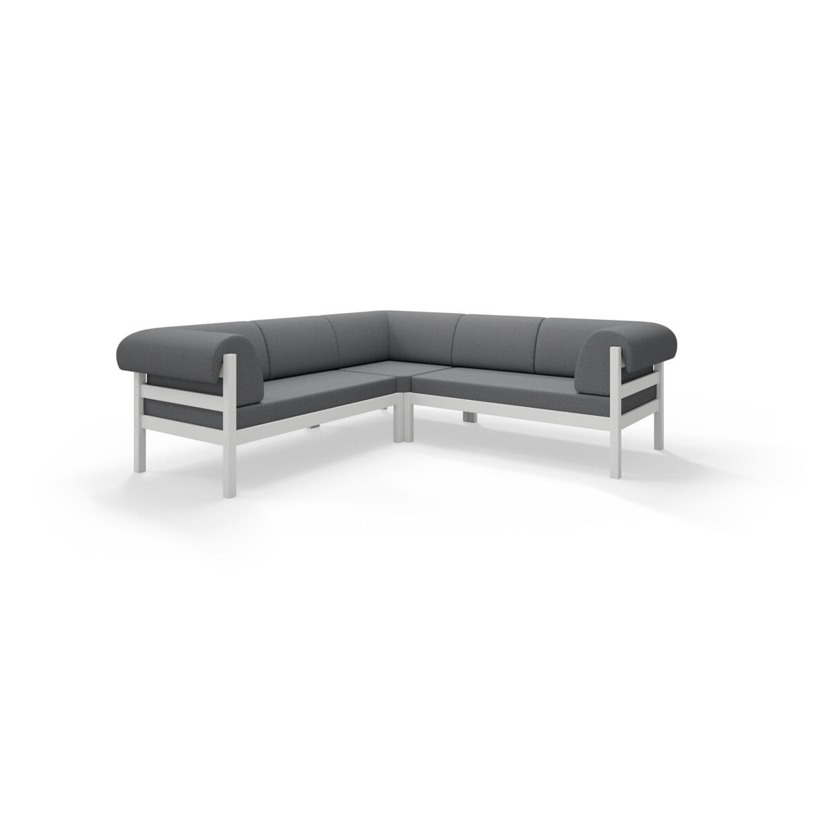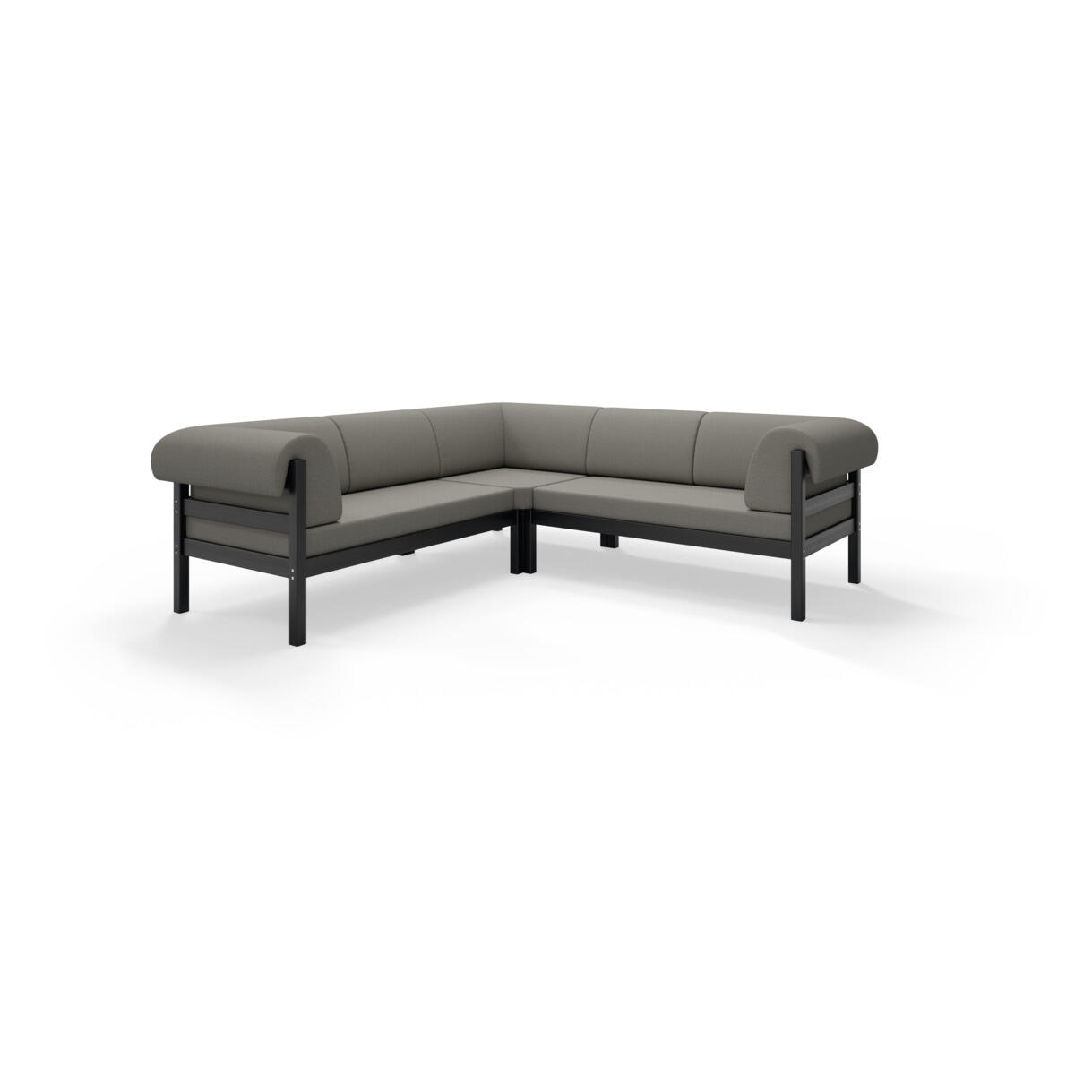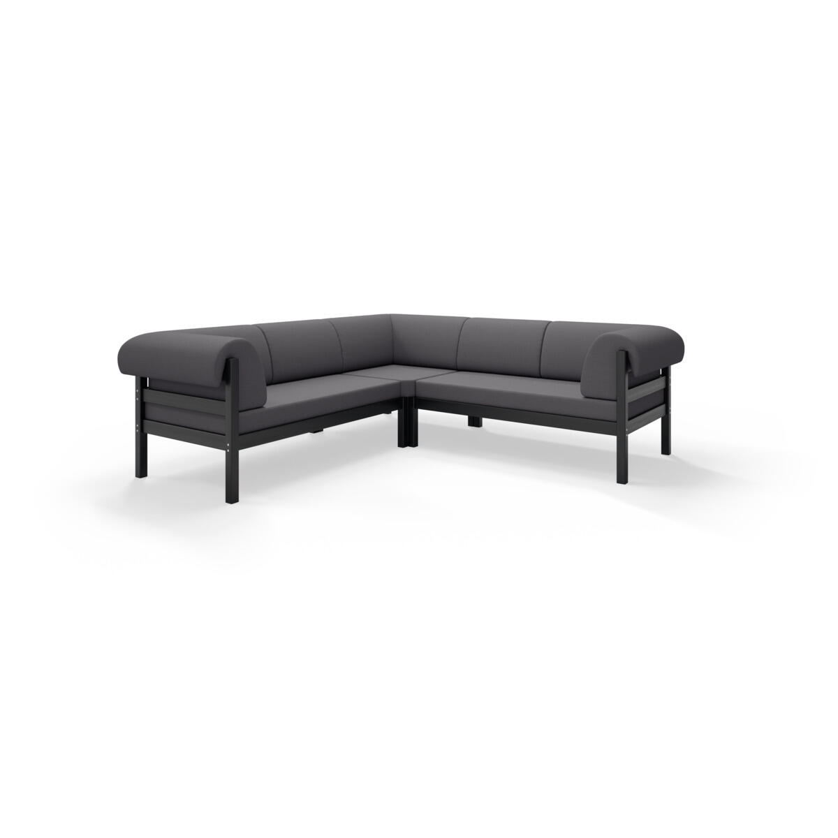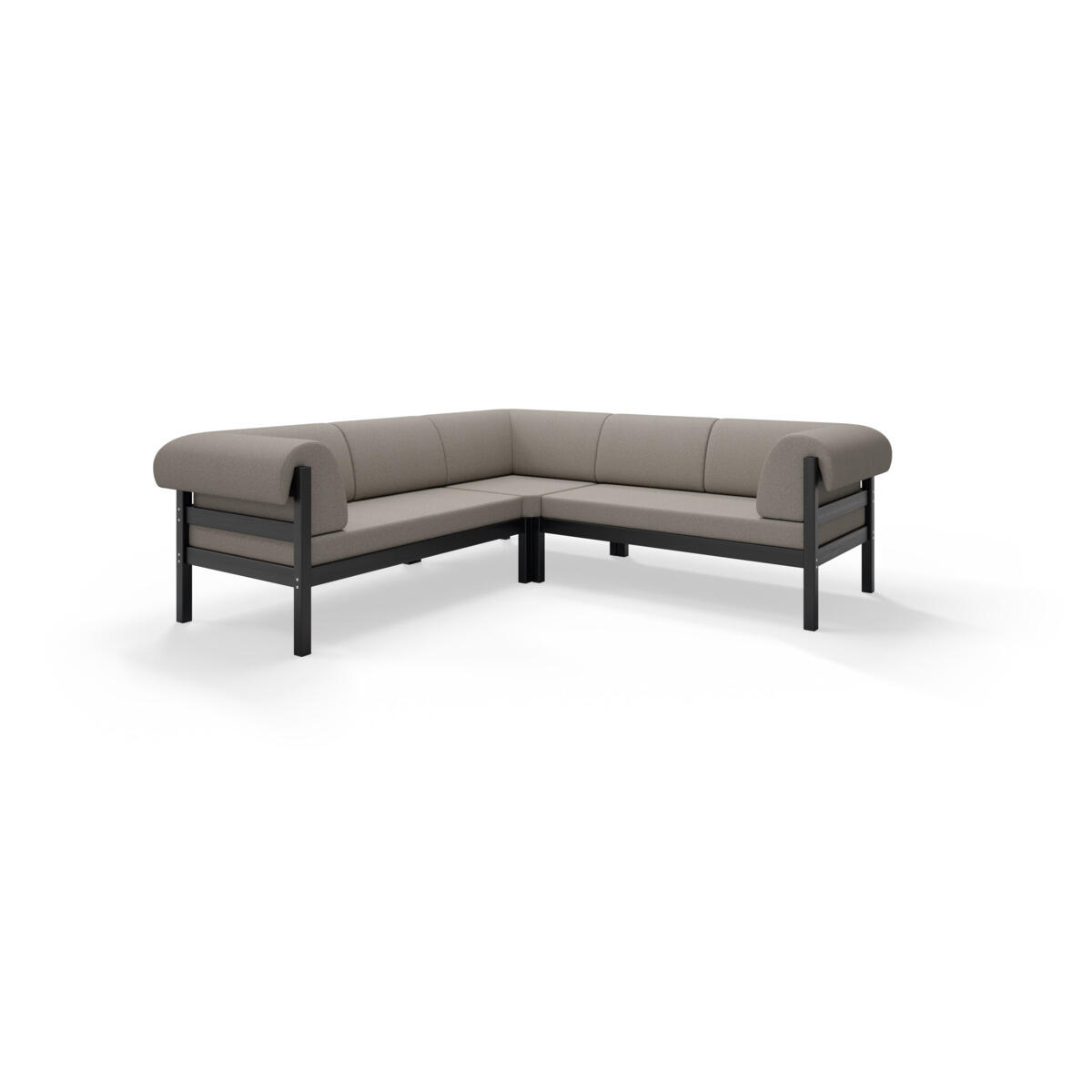 Sofa med stabil trestamme, nozagfjæring i bunnen og puter av kaldskum for ekstra komfort. Avtakbart trekk på rygg- og sitteputer. Mål: 209x209 cm. Sittehøyde 45 cm, sittedybde 53 cm. Benhøyde 10 cm