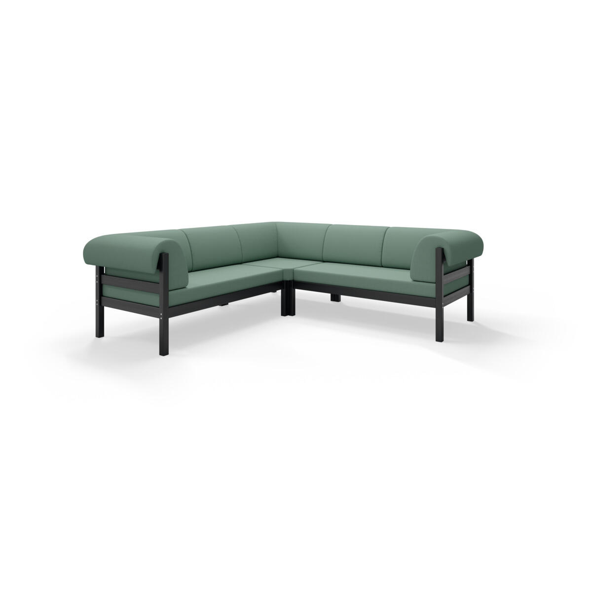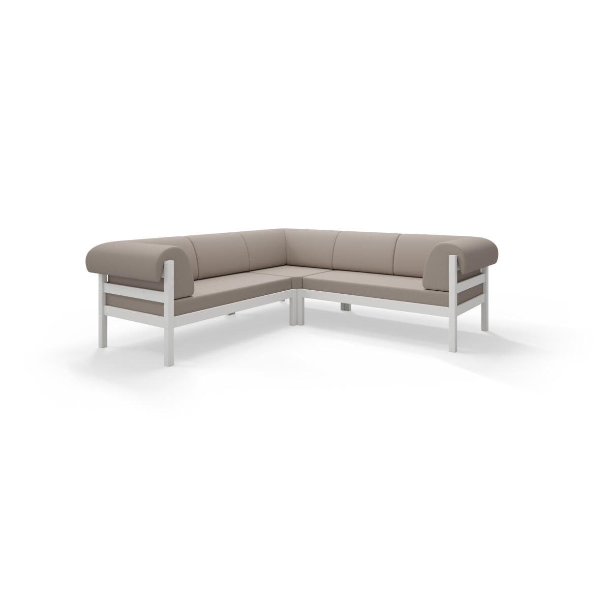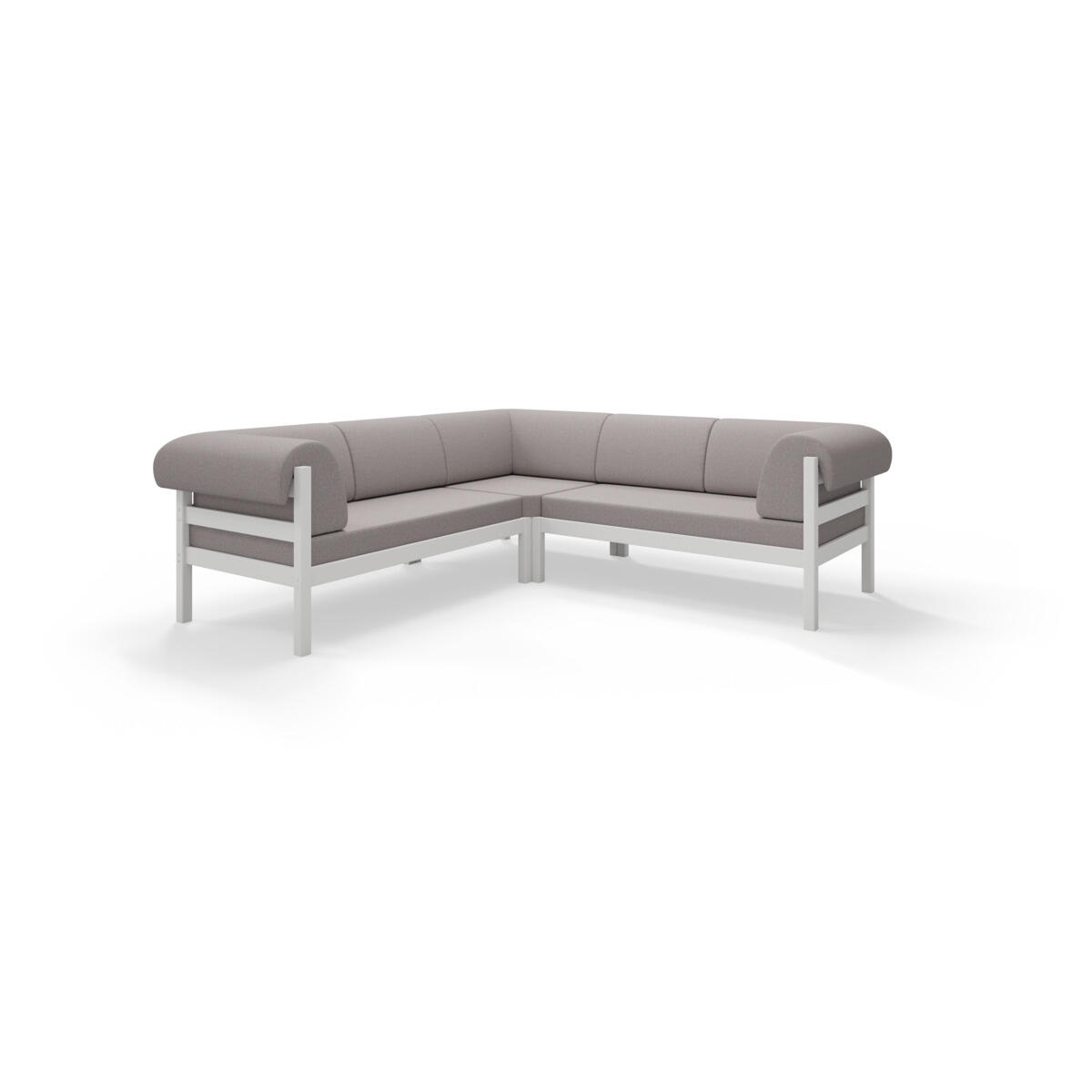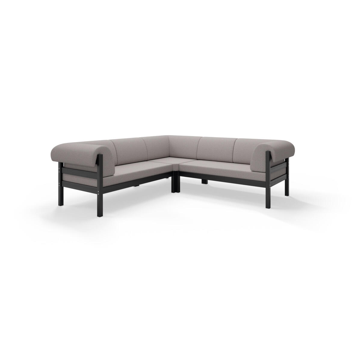 Sofa med stabil trestamme, nozagfjæring i bunnen og puter av kaldskum for ekstra komfort. Avtakbart trekk på rygg- og sitteputer. Mål: 209x209 cm. Sittehøyde 45 cm, sittedybde 53 cm. Benhøyde 10 cm