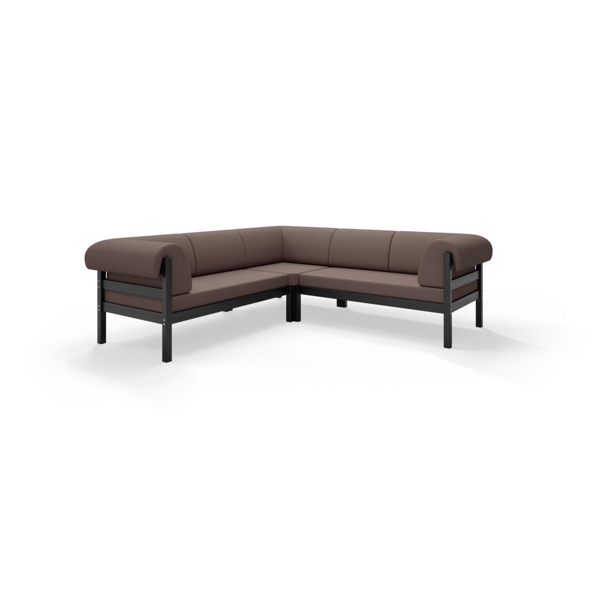 Hjørnesofa med moderne, stilig og rett design. Smulespalte (3 cm) mellom rygg, sete og armlener gjør det enkelt å holde det rent. Treramme og polstring i kaldskum. Understell i pulverlakkert metall.