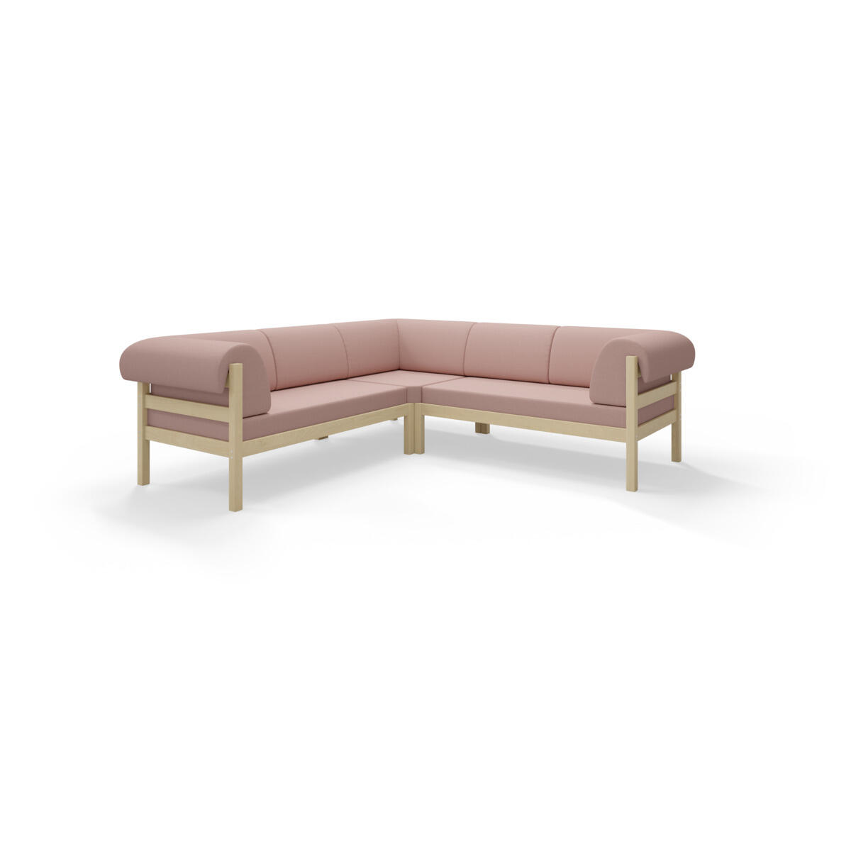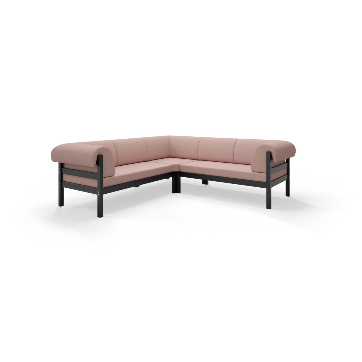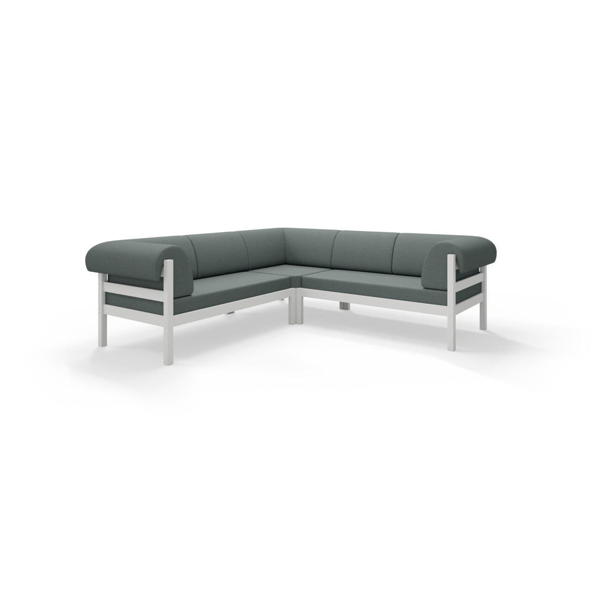 En moderne og tidløs hjørnesofa med et enkelt design som passer inn i de fleste miljøer. Treramme med nozag-understell og polstring av kaldskum. Understell i pulverlakkert metall. Avtakbart trekk på rygg- og sitteputer.