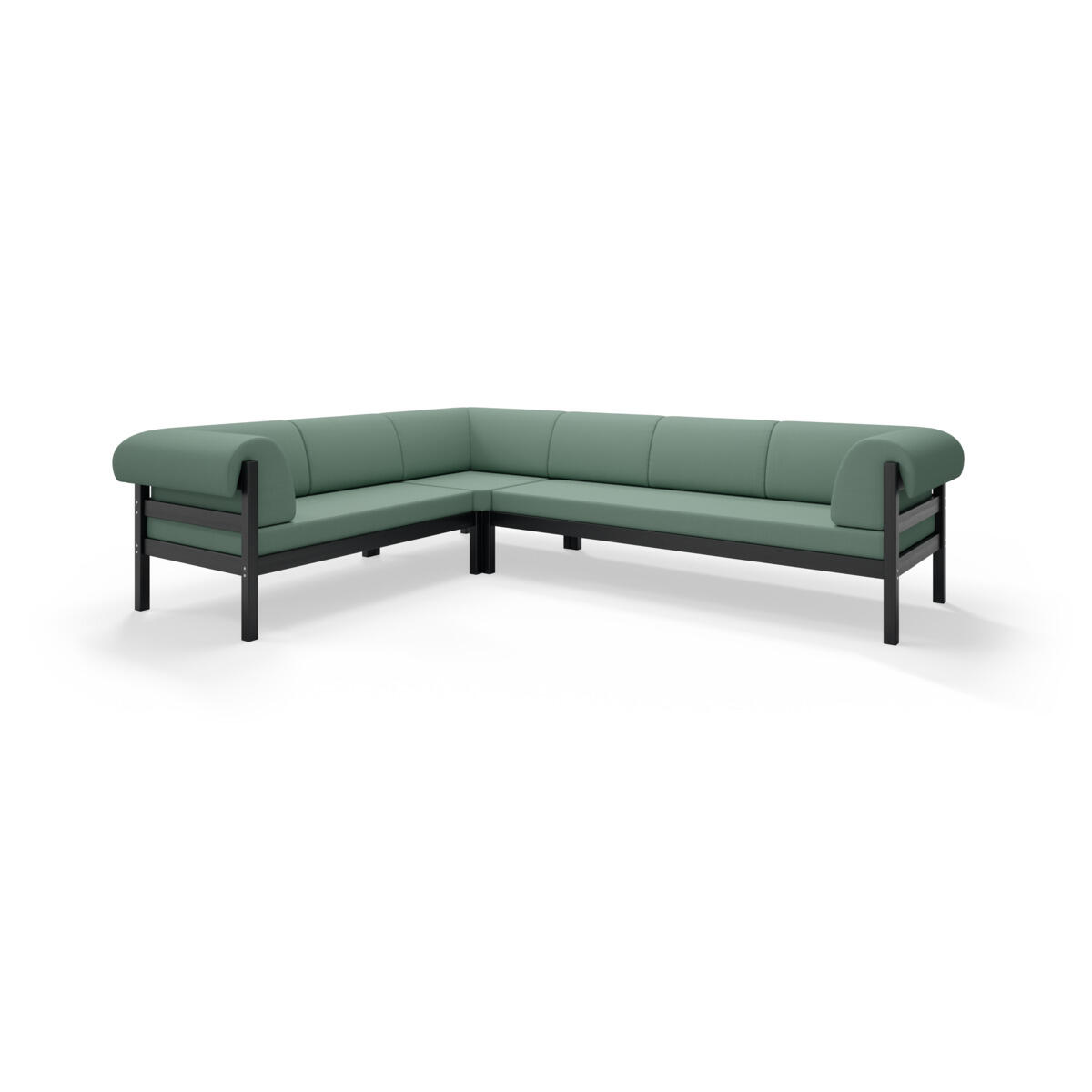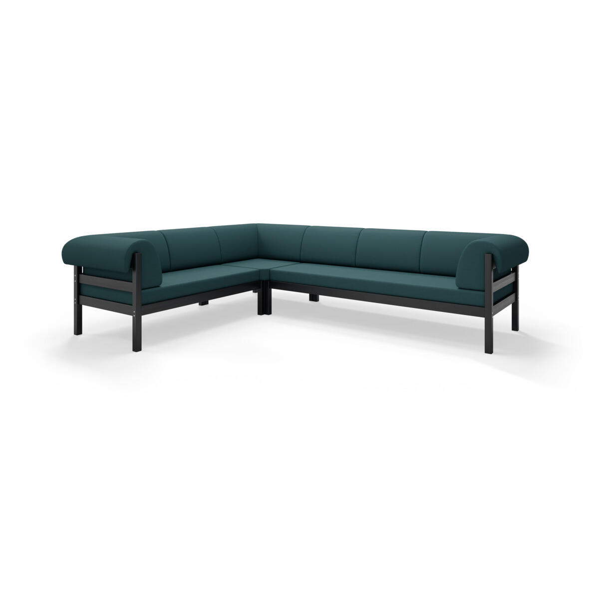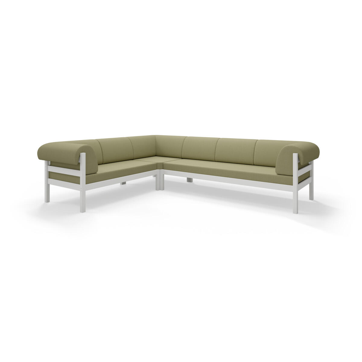 En moderne og tidløs hjørnesofa med et enkelt design som passer inn i de fleste miljøer. Treramme med nozag-understell og polstring av kaldskum. Understell i pulverlakkert metall. Avtakbart trekk på rygg- og sitteputer.