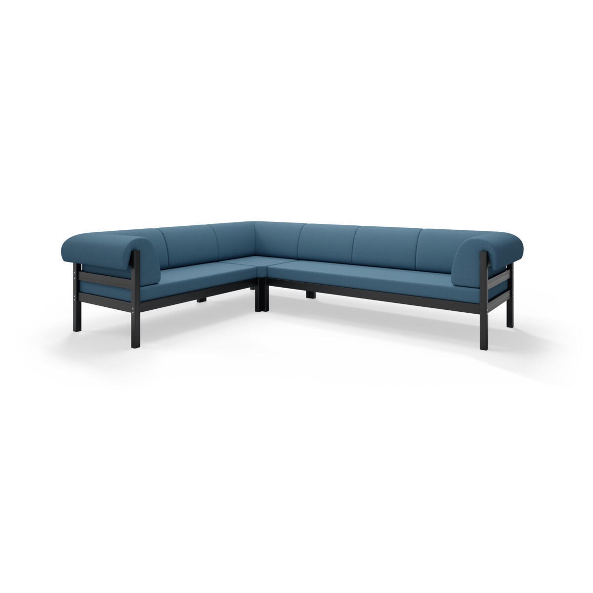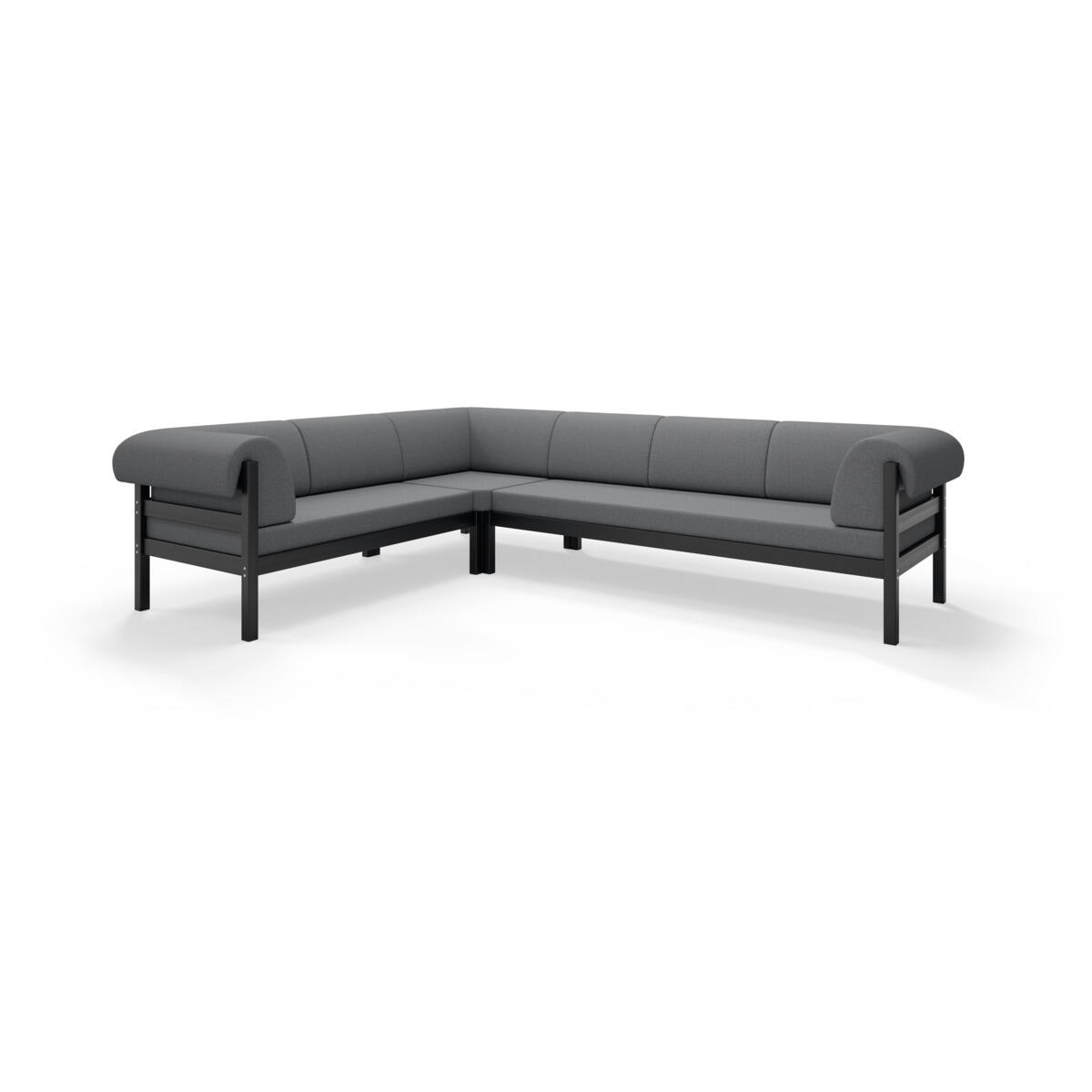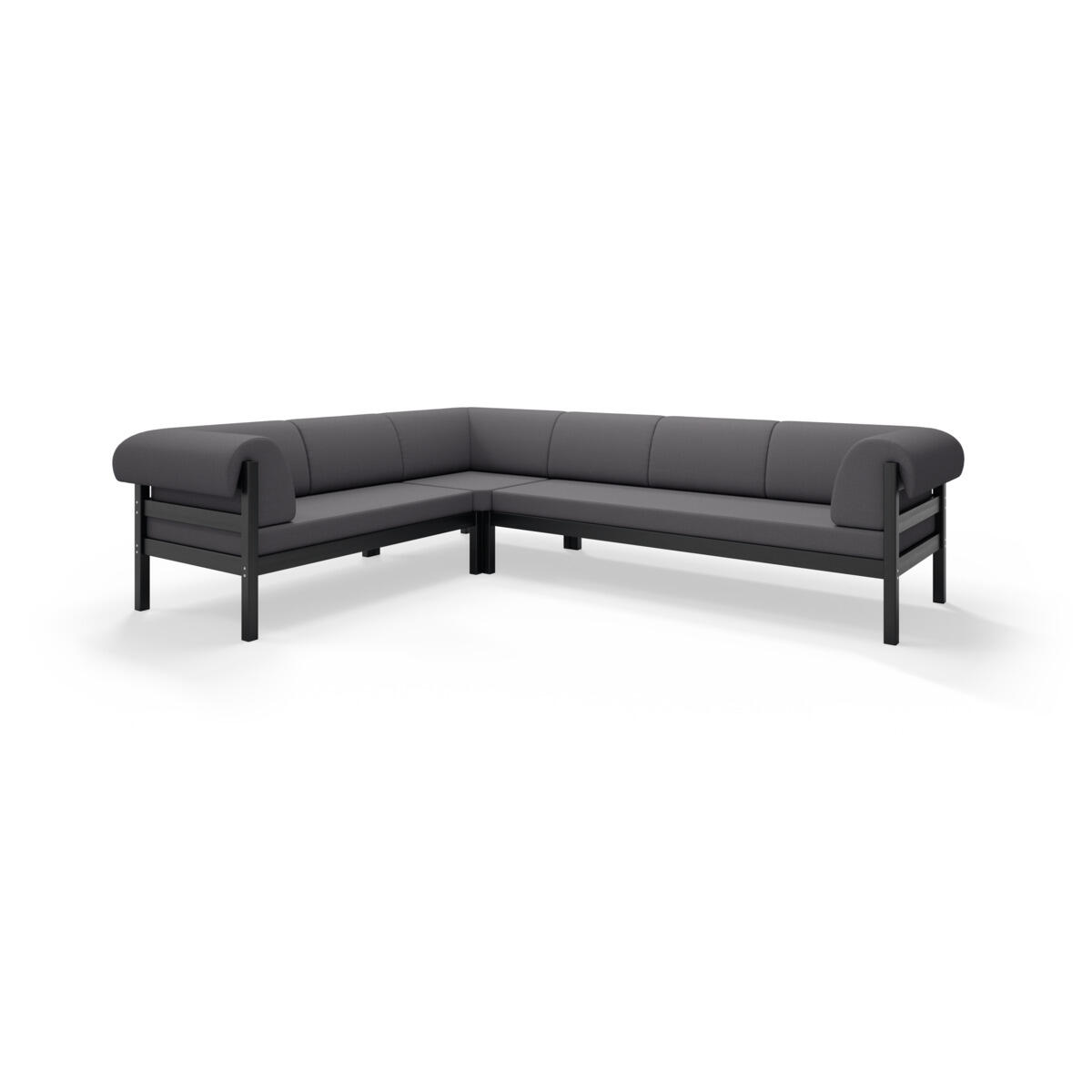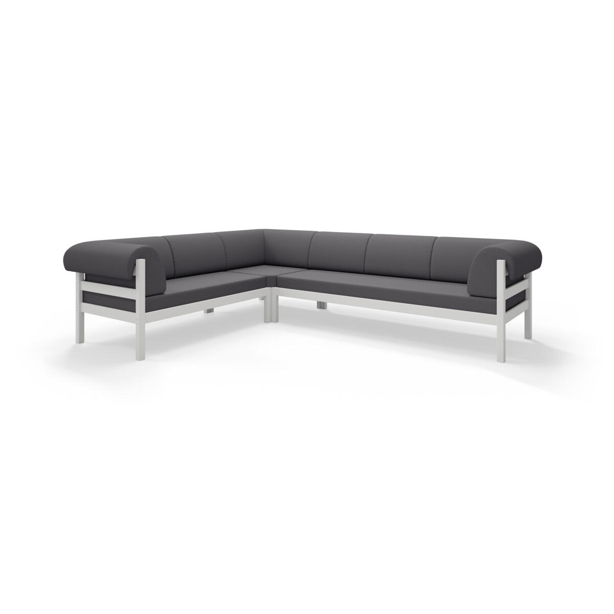 Sofa med stabil trestamme, nozagfjæring i bunnen og puter av kaldskum for ekstra komfort. Avtakbart trekk på rygg- og sitteputer. Mål: 209x209 cm. Sittehøyde 45 cm, sittedybde 53 cm. Benhøyde 10 cm
