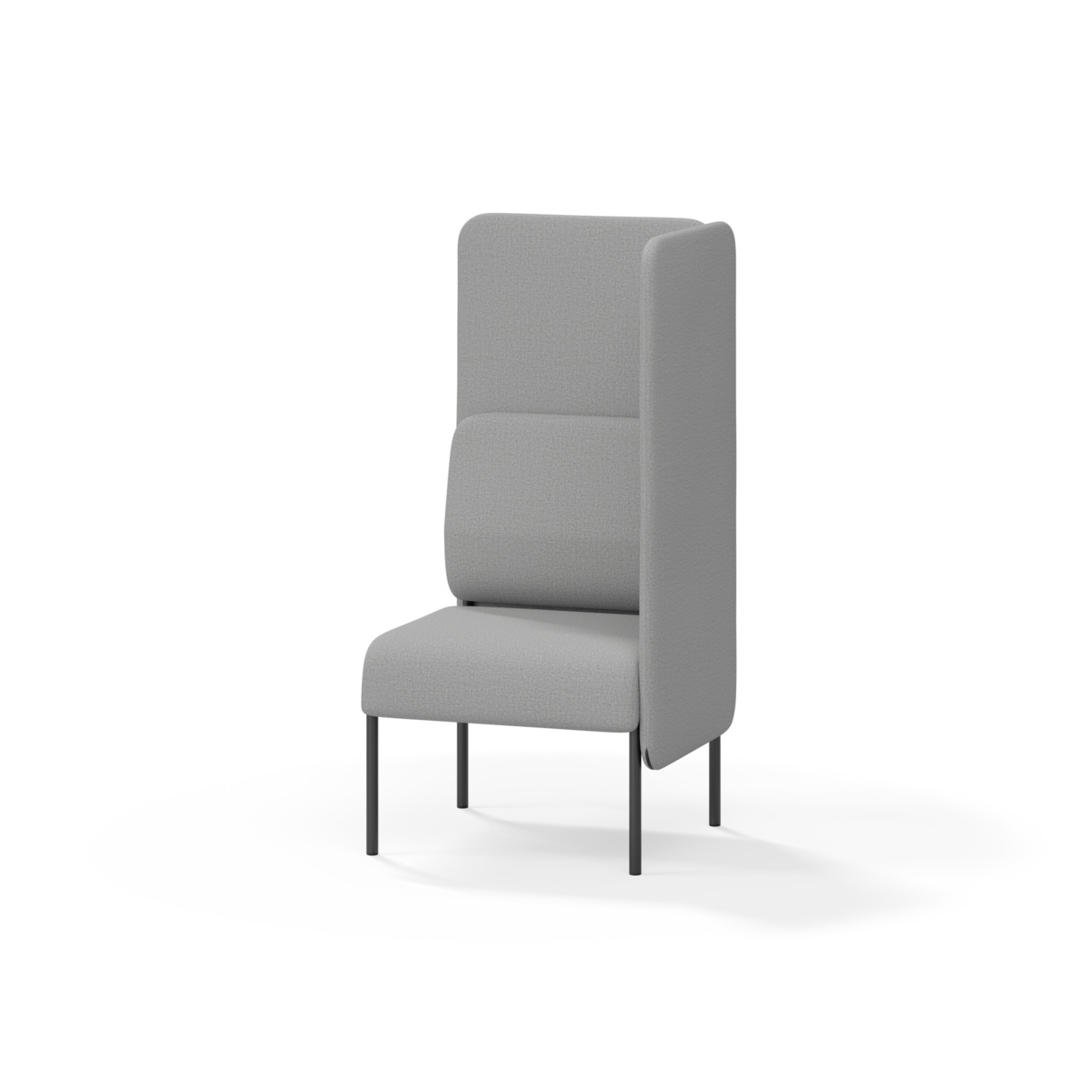 1-seter med ergonomisk utformet ryggpute og lydabsorberende sidepanel. Sofasystemet er spesielt utviklet for å skape plassbesparende moduler for studiero, trygghet, fellesskap og inkludering i skolen. Vi har minimert materialbruken og skapt et sirkulært produkt der alle deler kan byttes ut. Sofaen har smulespalter og et høyt understell i metall som forenkler rengjøring, samt avtakbart trekk på puter og paneler. Kryssfinerramme med polstring av kaldskum. Pulverlakkert understell med justerbare føtter for ujevne underlag. Design: Sigrid Strömgren
