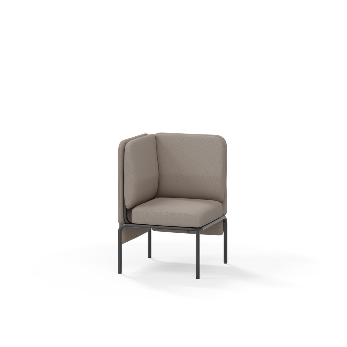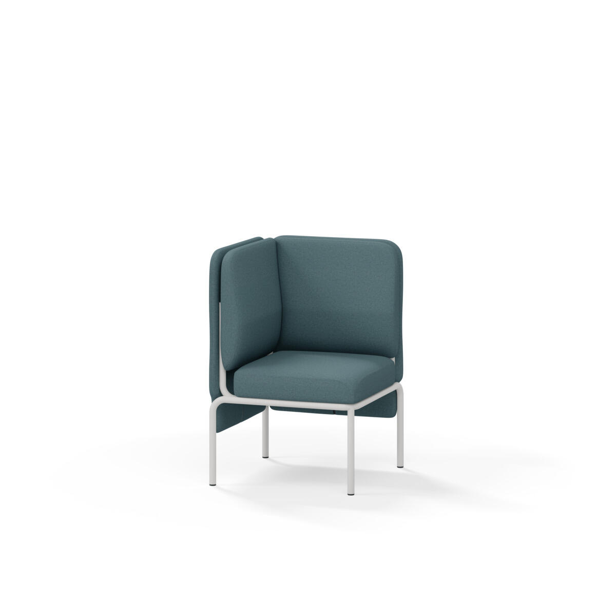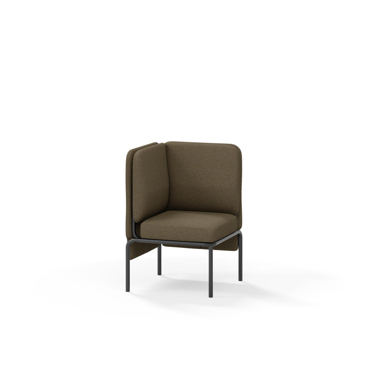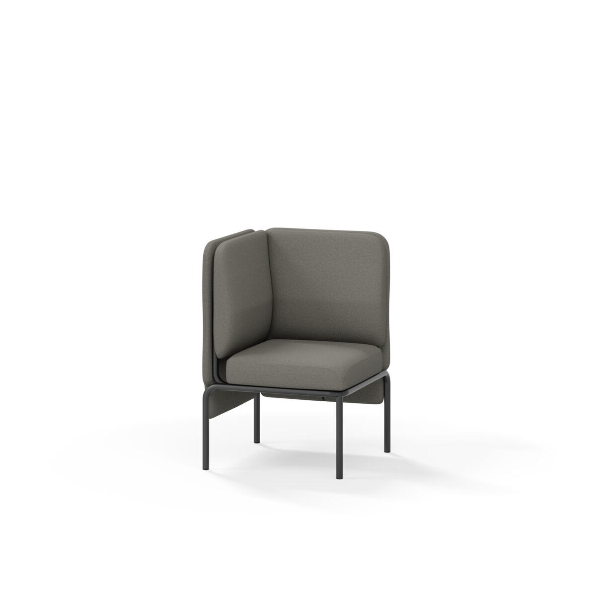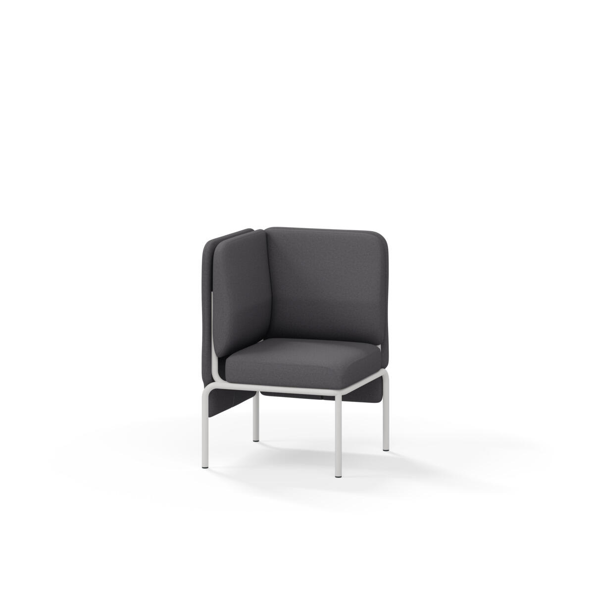 Hjørnemodul med ergonomisk utformet ryggpute og lydabsorberende panel. Sofasystemet er spesielt utviklet for å skape plassbesparende moduler som fremmer studiero, trygghet, fellesskap og inkludering i skolen. Vi har minimert materialbruken og utviklet et sirkulært produkt der alle deler kan byttes ut. Sofaen har smuleåpning og høyt metallstativ som gjør renhold enklere, samt avtagbart trekk på puter og paneler. Stamme av kryssfiner med polstring av kaldskum. Stativ i pulverlakkert metall med justerbare føtter, som sørger for stabilitet også på ujevnt underlag. Design: Sigrid Strömgren