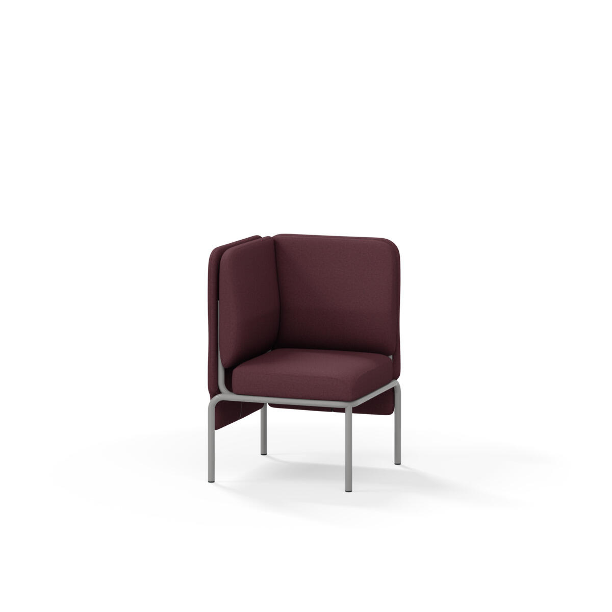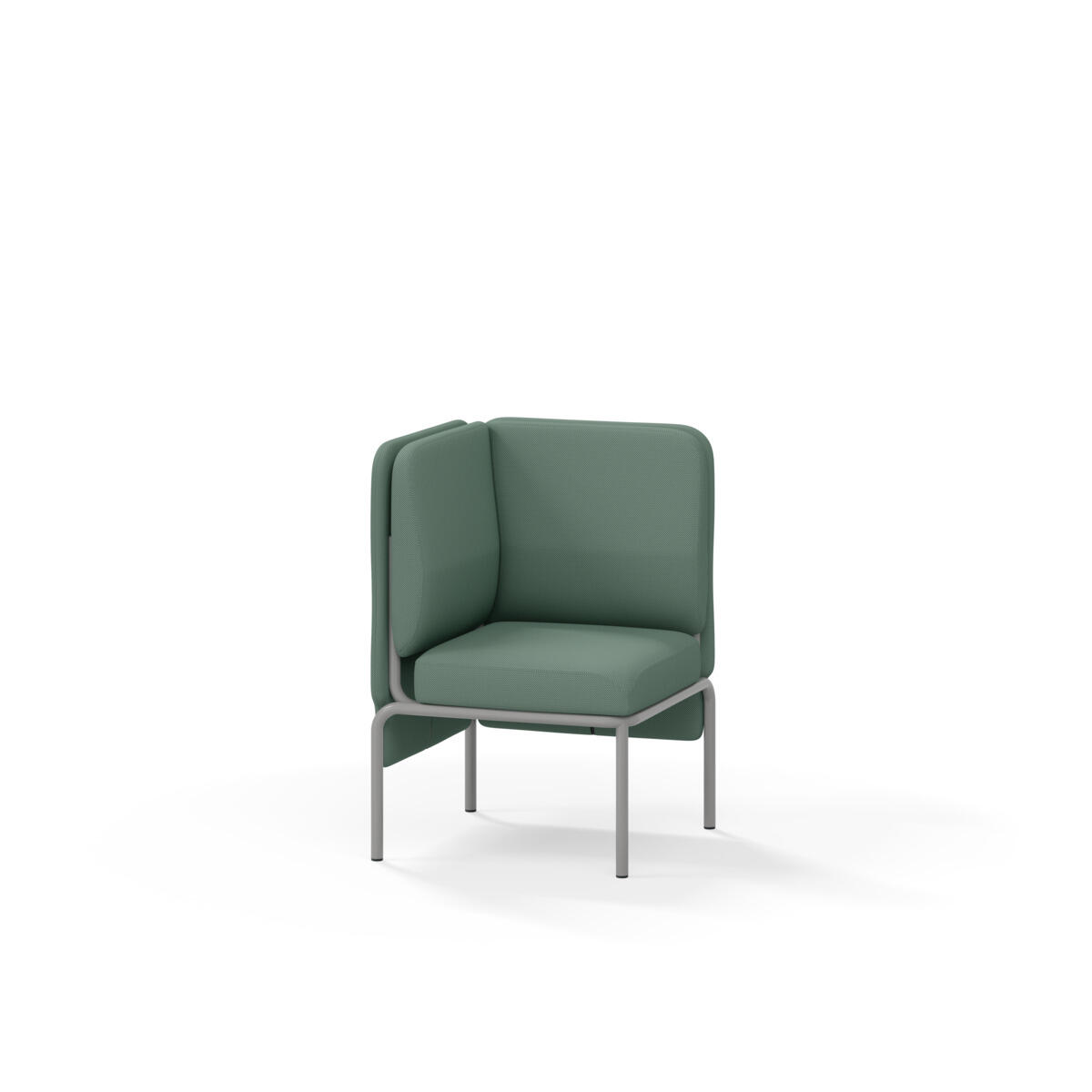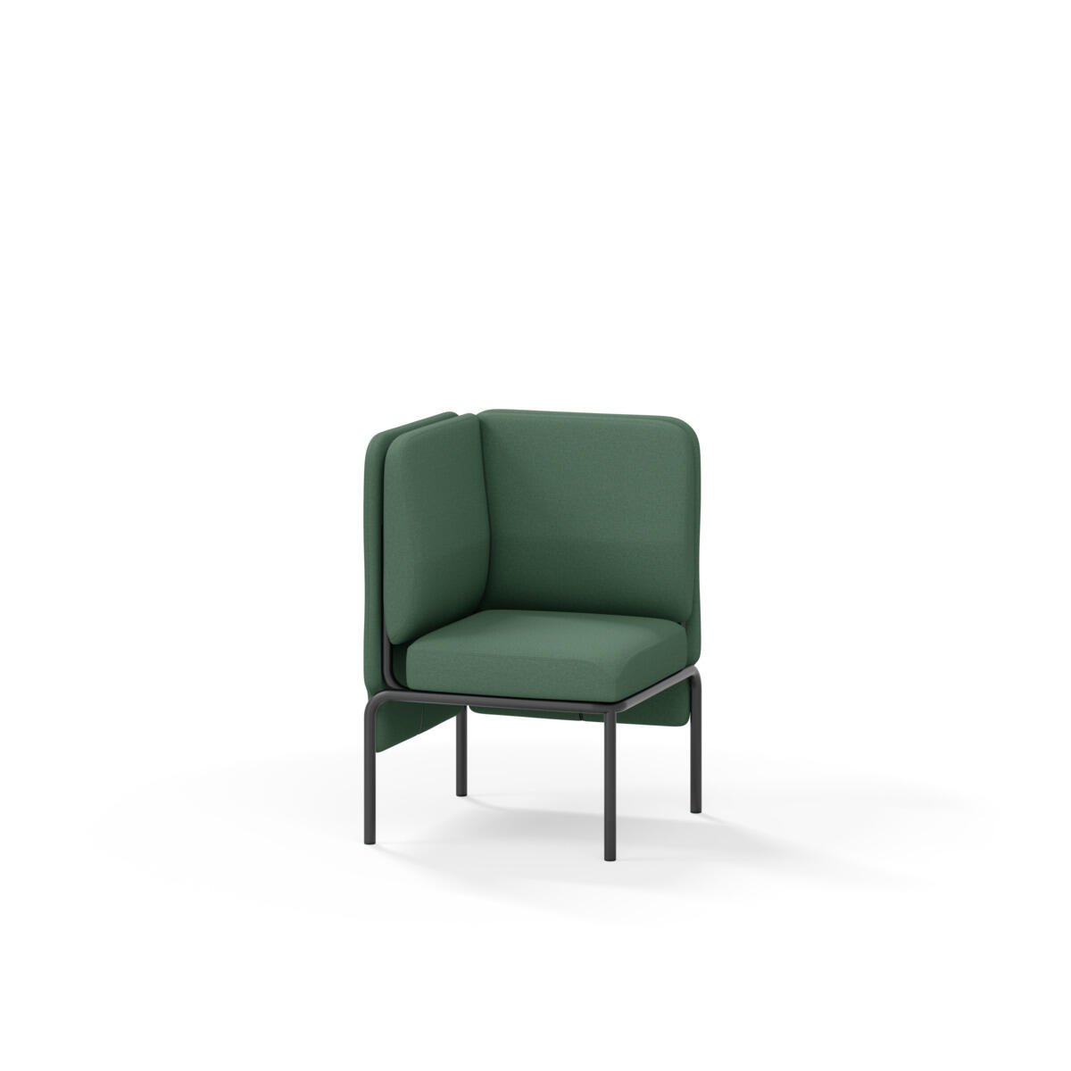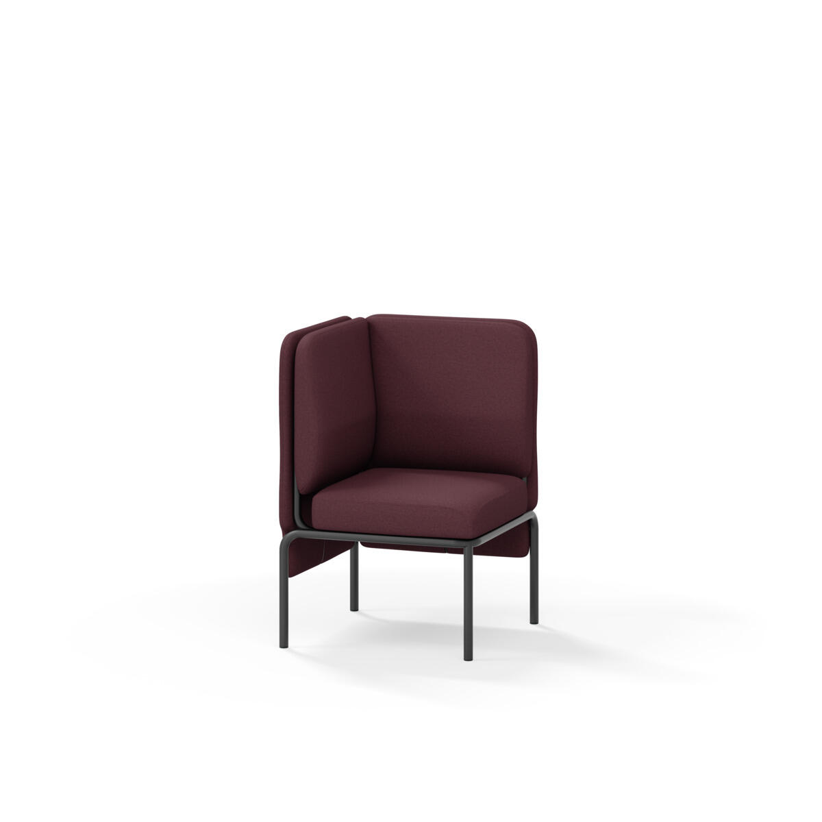Hjørnemodul med ergonomisk utformet ryggpute og lydabsorberende panel. Sofasystemet er spesielt utviklet for å skape plassbesparende moduler som fremmer studiero, trygghet, fellesskap og inkludering i skolen. Vi har minimert materialbruken og utviklet et sirkulært produkt der alle deler kan byttes ut. Sofaen har smuleåpning og høyt metallstativ som gjør renhold enklere, samt avtagbart trekk på puter og paneler. Stamme av kryssfiner med polstring av kaldskum. Stativ i pulverlakkert metall med justerbare føtter, som sørger for stabilitet også på ujevnt underlag. Design: Sigrid Strömgren