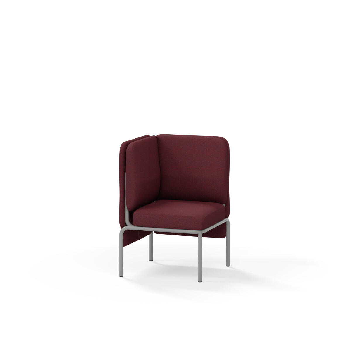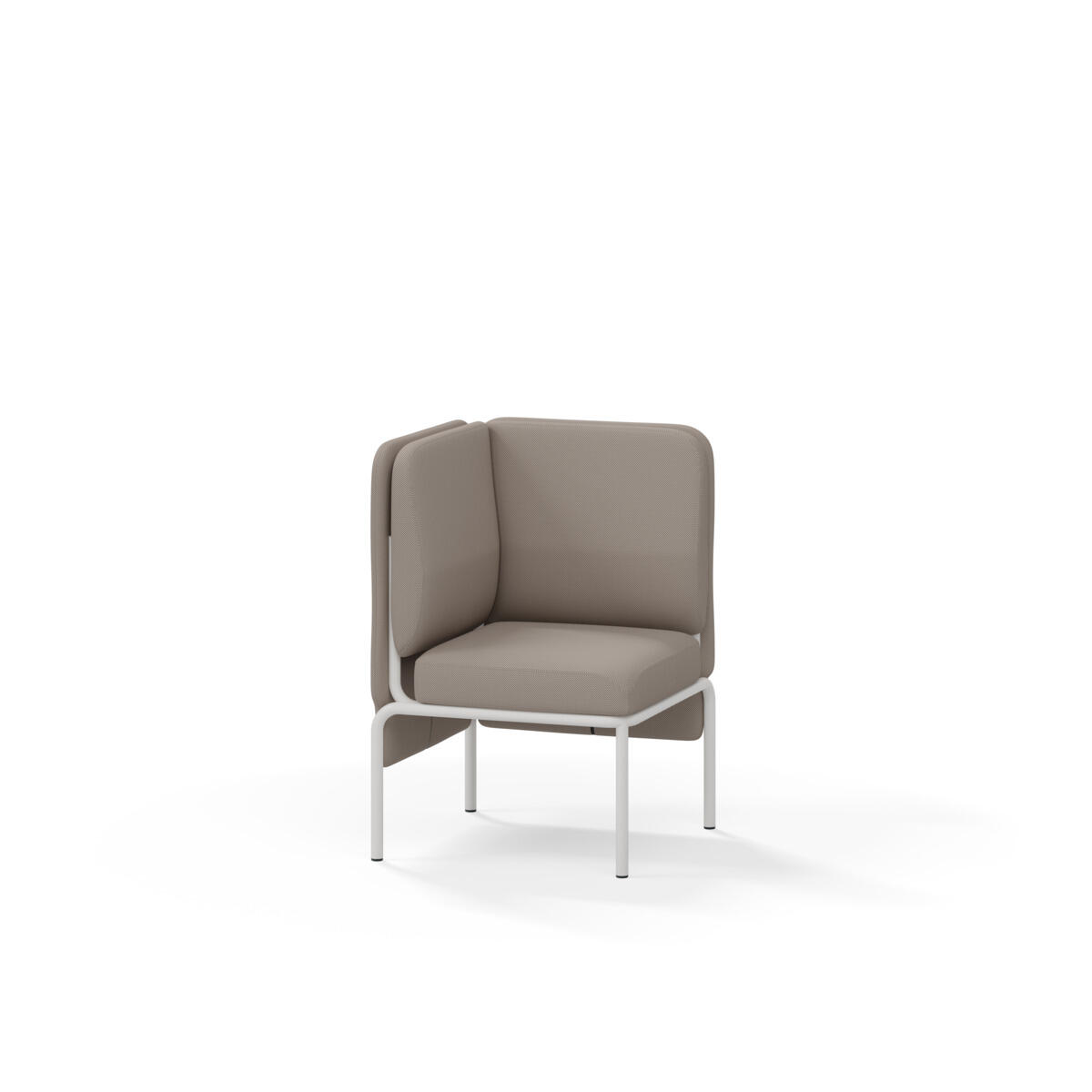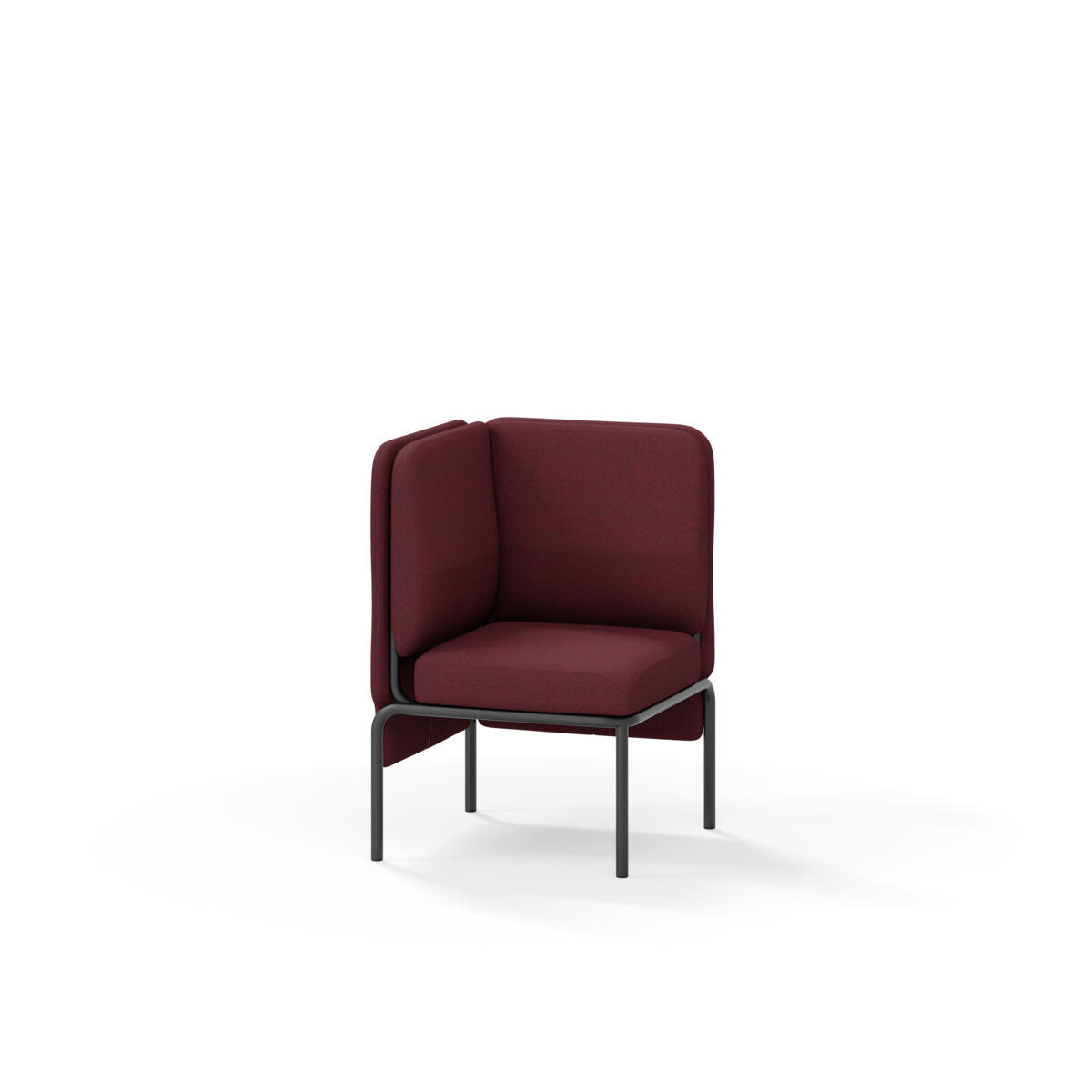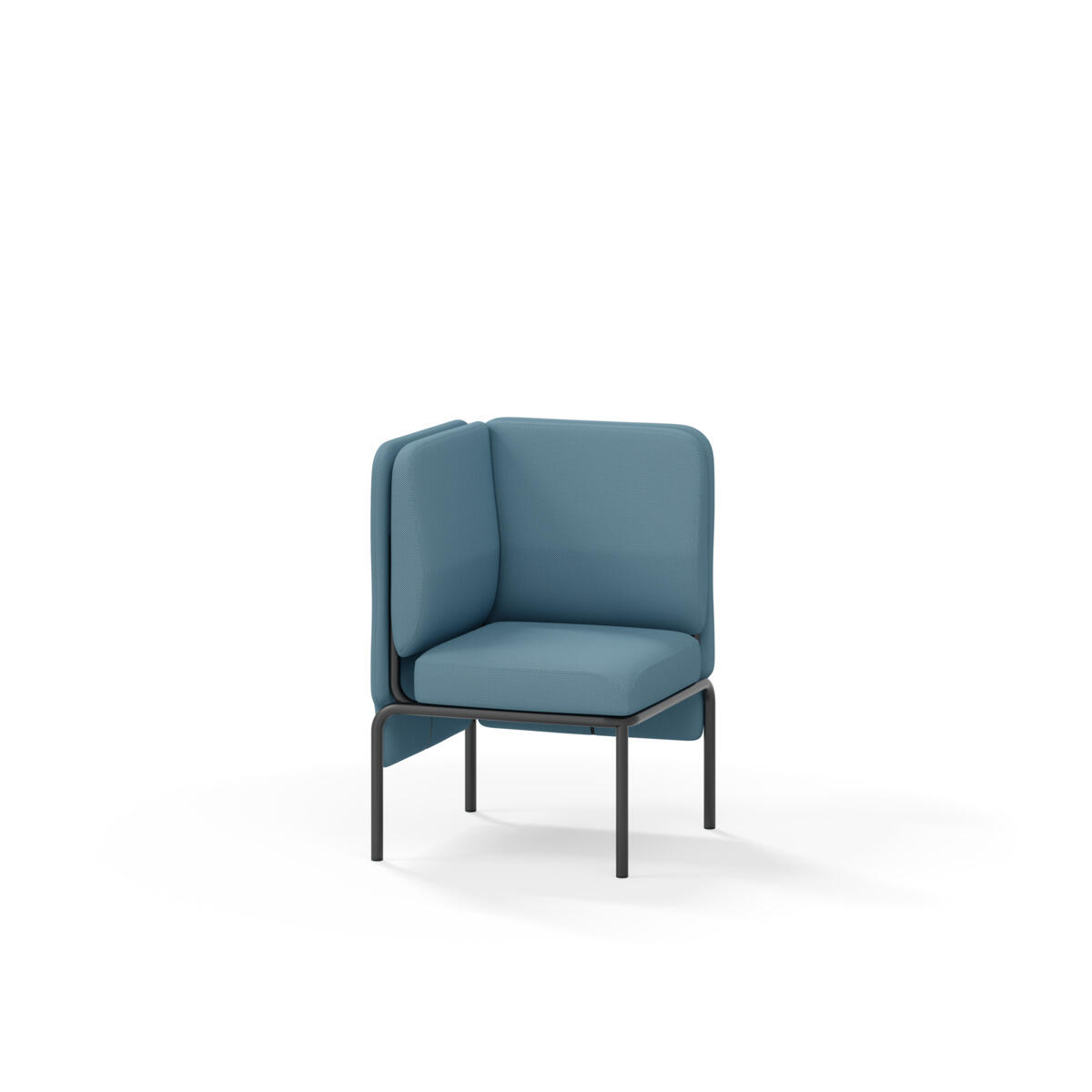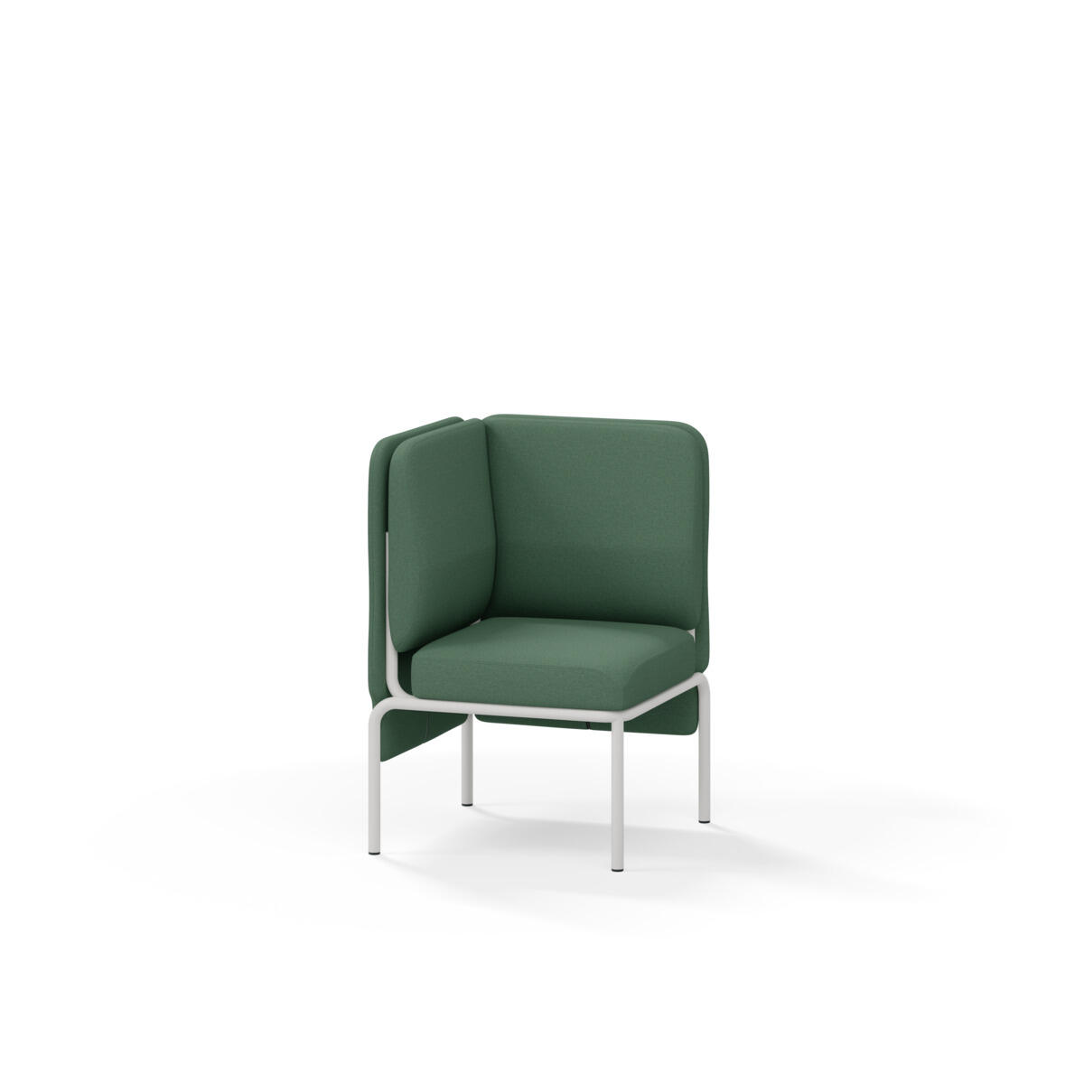 Hjørnemodul med ergonomisk utformet ryggpute og lydabsorberende panel. Sofasystemet er spesielt utviklet for å skape plassbesparende moduler som fremmer studiero, trygghet, fellesskap og inkludering i skolen. Vi har minimert materialbruken og utviklet et sirkulært produkt der alle deler kan byttes ut. Sofaen har smuleåpning og høyt metallstativ som gjør renhold enklere, samt avtagbart trekk på puter og paneler. Stamme av kryssfiner med polstring av kaldskum. Stativ i pulverlakkert metall med justerbare føtter, som sørger for stabilitet også på ujevnt underlag. Design: Sigrid Strömgren