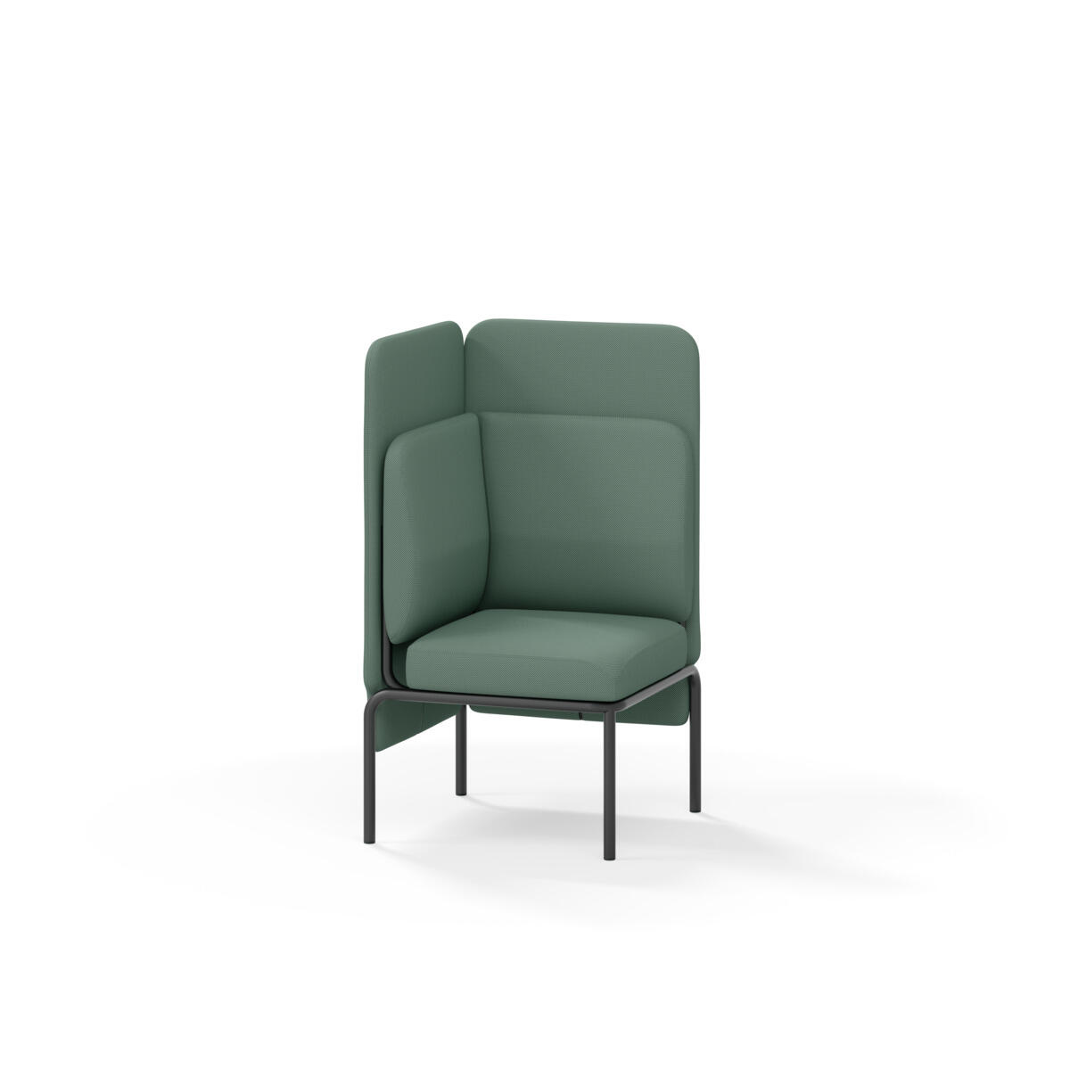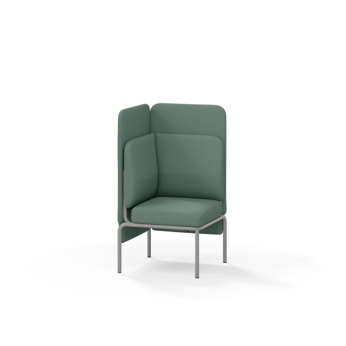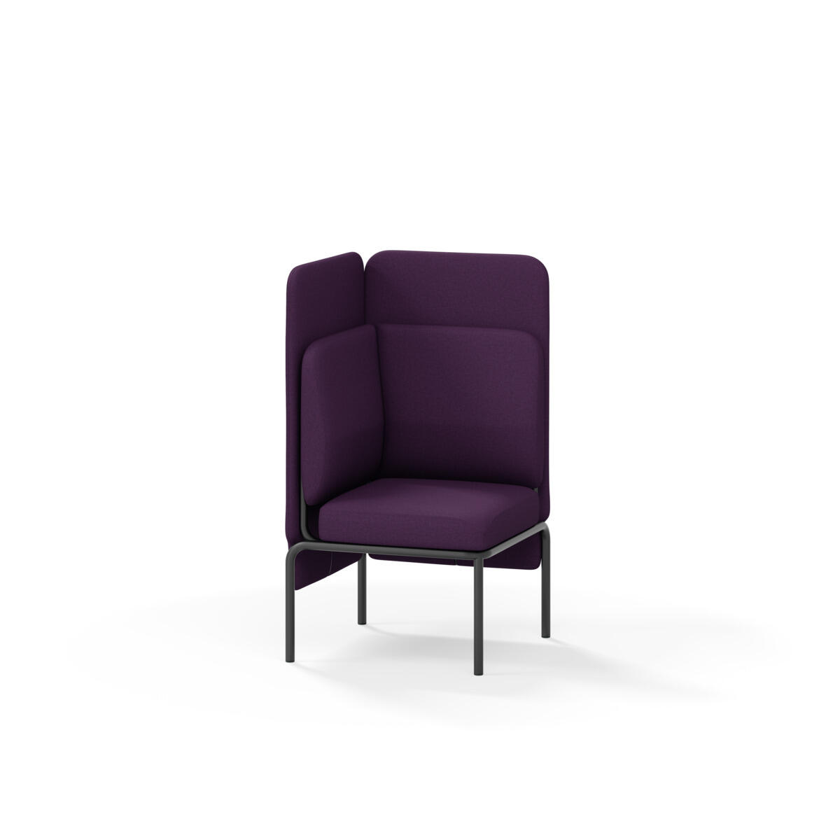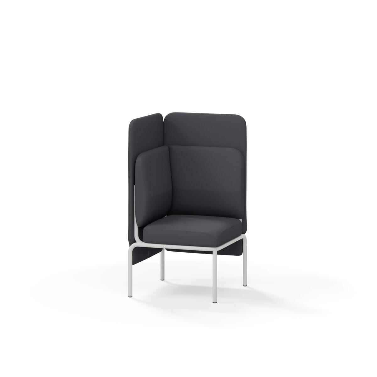 Hjørnemodul med ergonomisk utformet ryggpute og lydabsorberende panel. Sofasystemet er spesielt utviklet for å skape plassbesparende moduler som fremmer studiero, trygghet, fellesskap og inkludering i skolen. Vi har minimert materialbruken og utviklet et sirkulært produkt der alle deler kan byttes ut. Sofaen har smuleåpning og høyt metallstativ som gjør renhold enklere, samt avtagbart trekk på puter og paneler. Stamme av kryssfiner med polstring av kaldskum. Stativ i pulverlakkert metall med justerbare føtter, som sørger for stabilitet også på ujevnt underlag. Design: Sigrid Strömgren