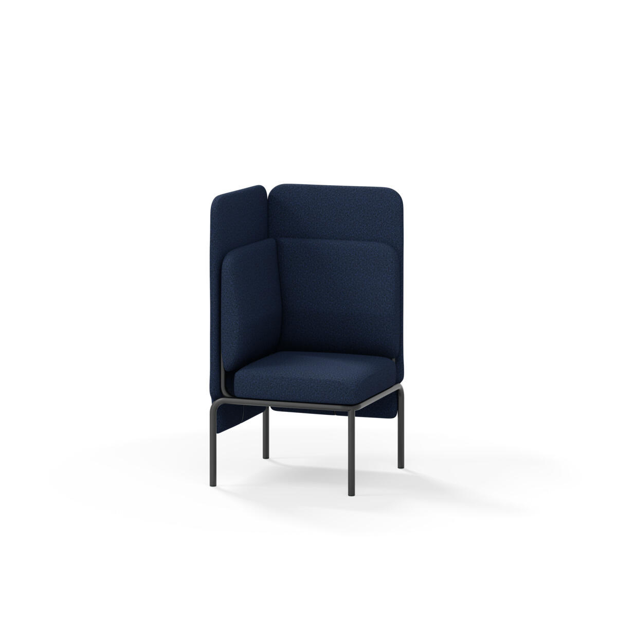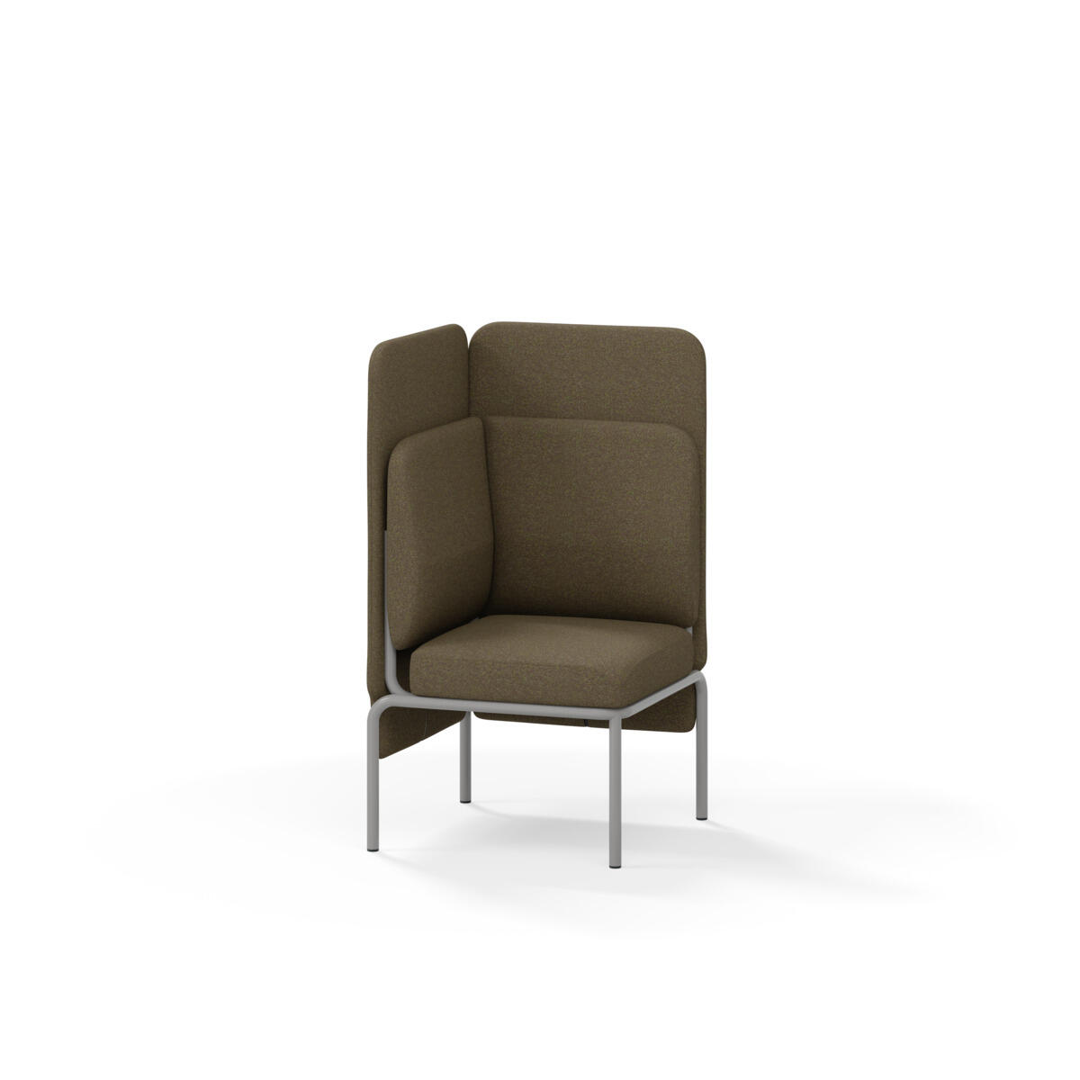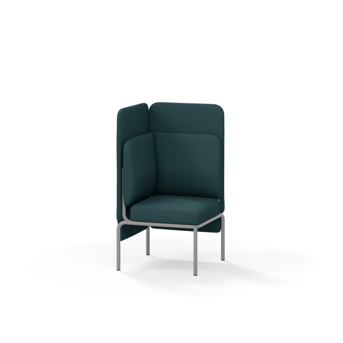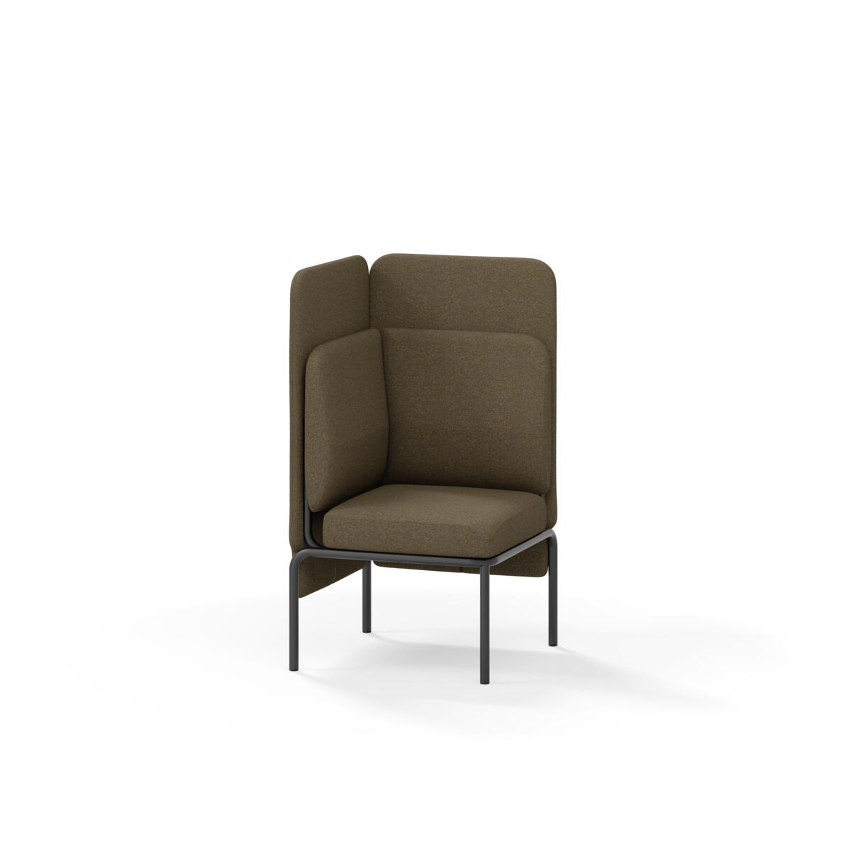 Hjørnemodul med ergonomisk utformet ryggpute og lydabsorberende panel. Sofasystemet er spesielt utviklet for å skape plassbesparende moduler som fremmer studiero, trygghet, fellesskap og inkludering i skolen. Vi har minimert materialbruken og utviklet et sirkulært produkt der alle deler kan byttes ut. Sofaen har smuleåpning og høyt metallstativ som gjør renhold enklere, samt avtagbart trekk på puter og paneler. Stamme av kryssfiner med polstring av kaldskum. Stativ i pulverlakkert metall med justerbare føtter, som sørger for stabilitet også på ujevnt underlag. Design: Sigrid Strömgren