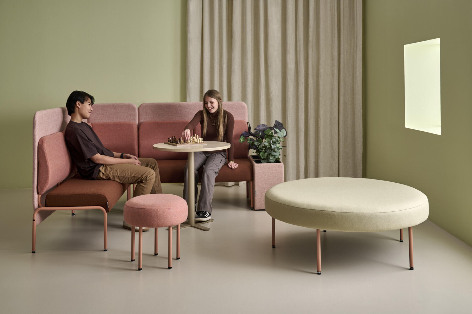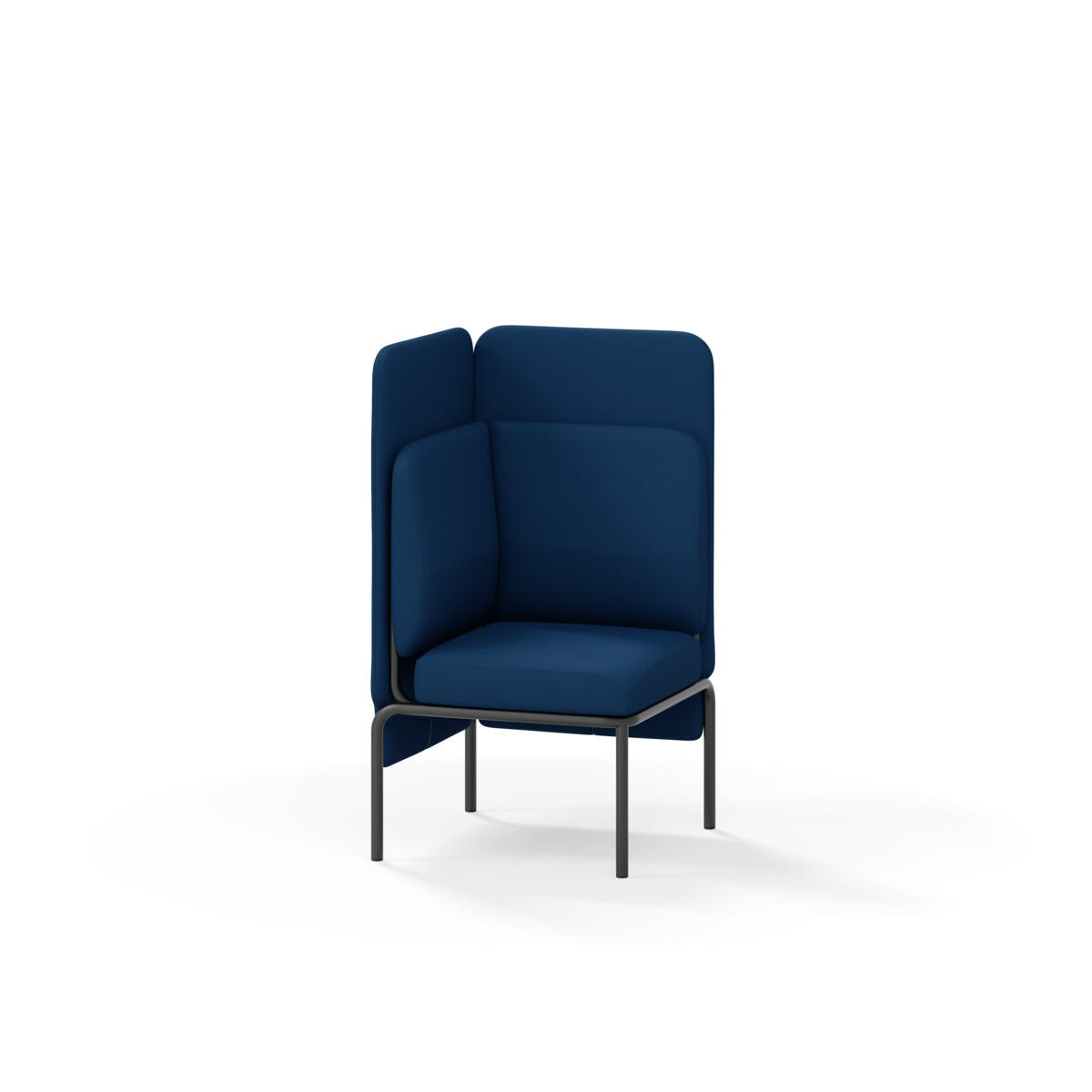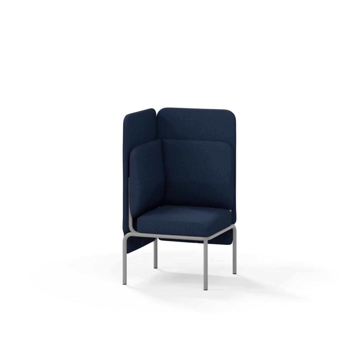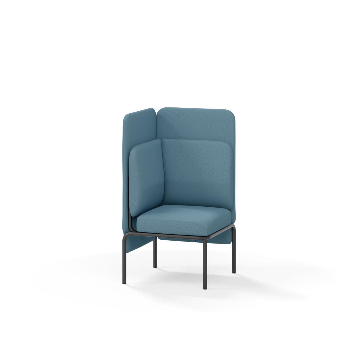 Hjørnemodul med ergonomisk utformet ryggpute og lydabsorberende panel. Sofasystemet er spesielt utviklet for å skape plassbesparende moduler som fremmer studiero, trygghet, fellesskap og inkludering i skolen. Vi har minimert materialbruken og utviklet et sirkulært produkt der alle deler kan byttes ut. Sofaen har smuleåpning og høyt metallstativ som gjør renhold enklere, samt avtagbart trekk på puter og paneler. Stamme av kryssfiner med polstring av kaldskum. Stativ i pulverlakkert metall med justerbare føtter, som sørger for stabilitet også på ujevnt underlag. Design: Sigrid Strömgren
