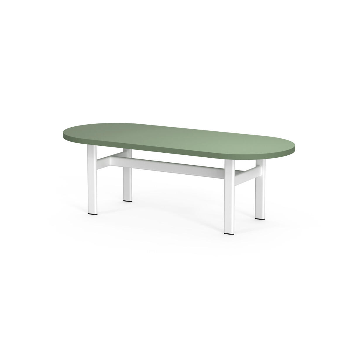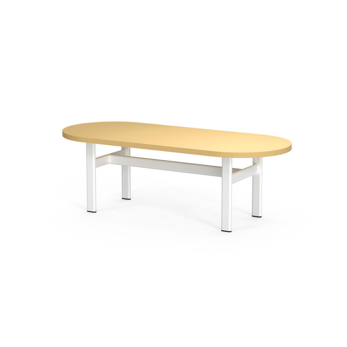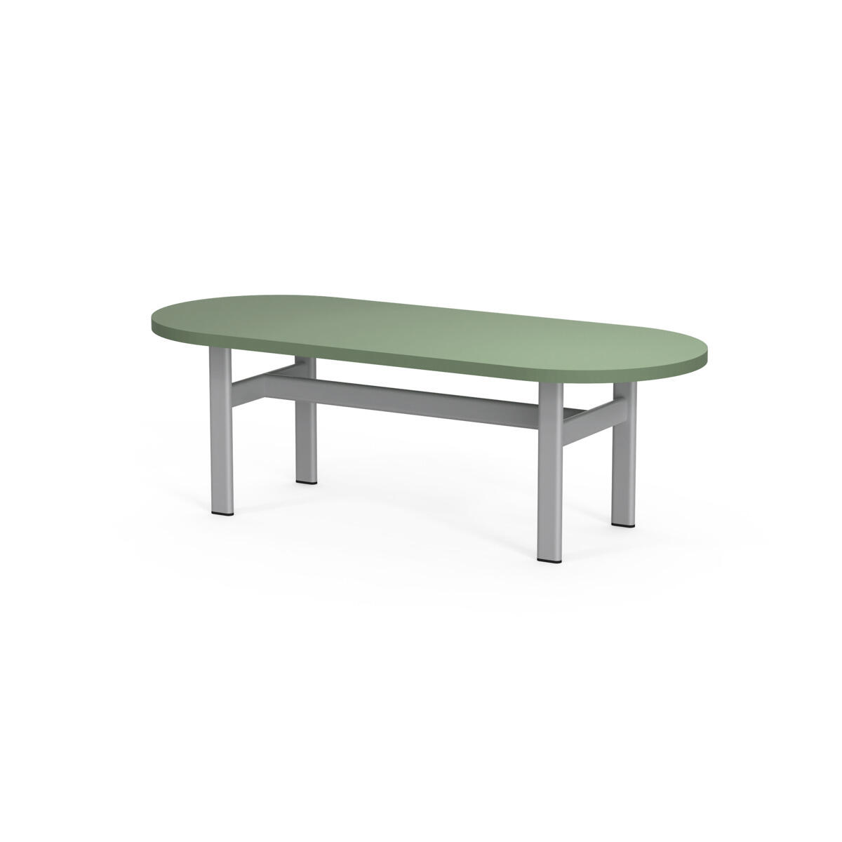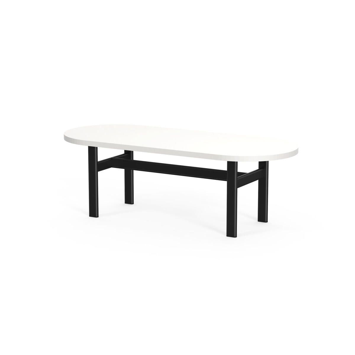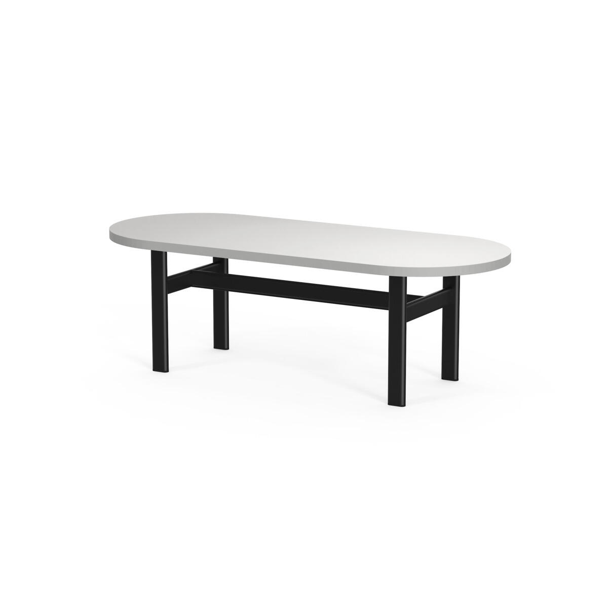 Omsluttende sofa som, takket være sine høye sider, har en lyddempende og avskjermende effekt, noe som gjør den egnet for for eksempel gruppemøter, samarbeid eller egentid i et dempet miljø. De høye veggene gir avskjerming fra resten av rommet. Bord med laminatplate L125×D64×H74 cm; fargen på bordplaten følger fargen på bena. Trestamme og stopping i kaldskum. Ben i pulverlakkert metall.