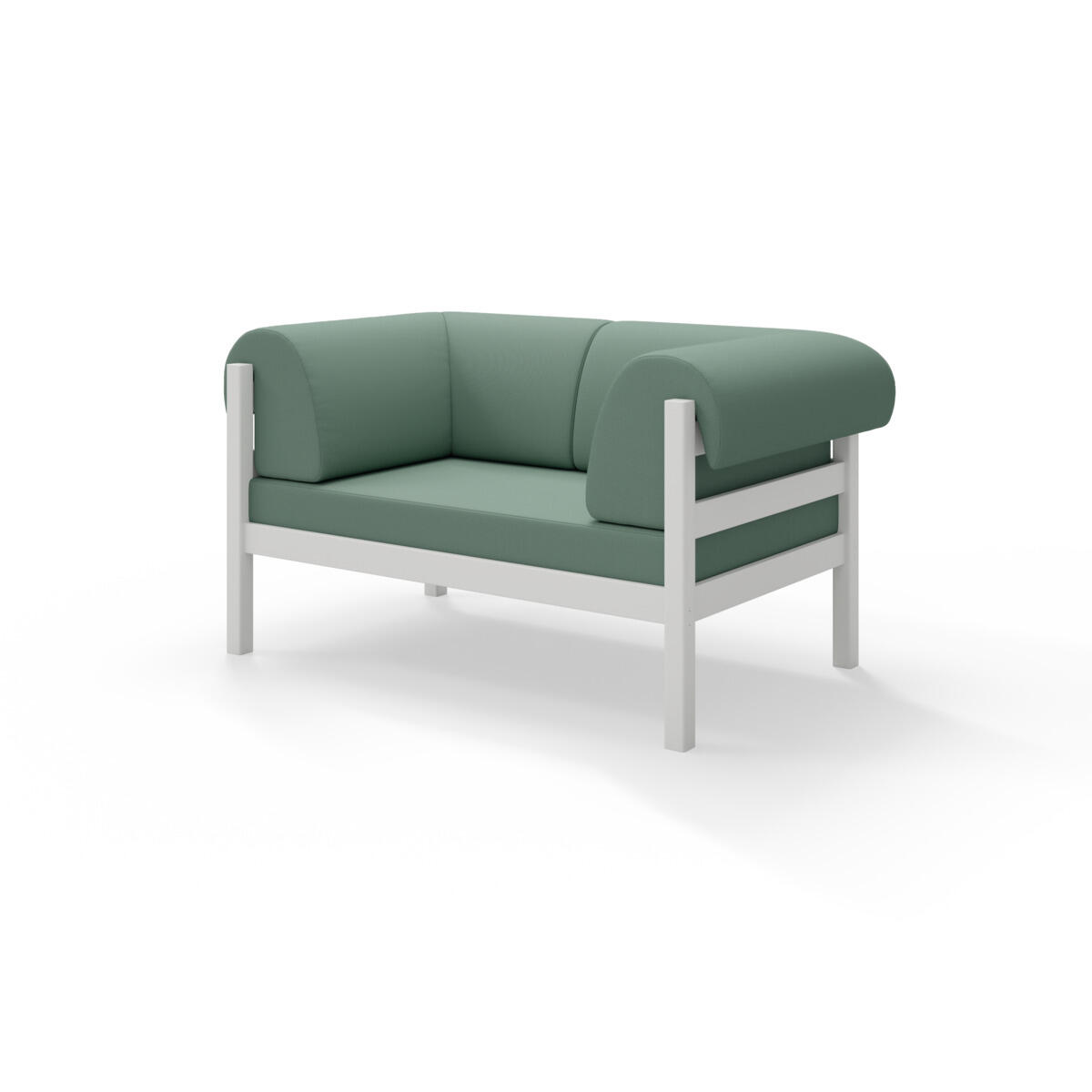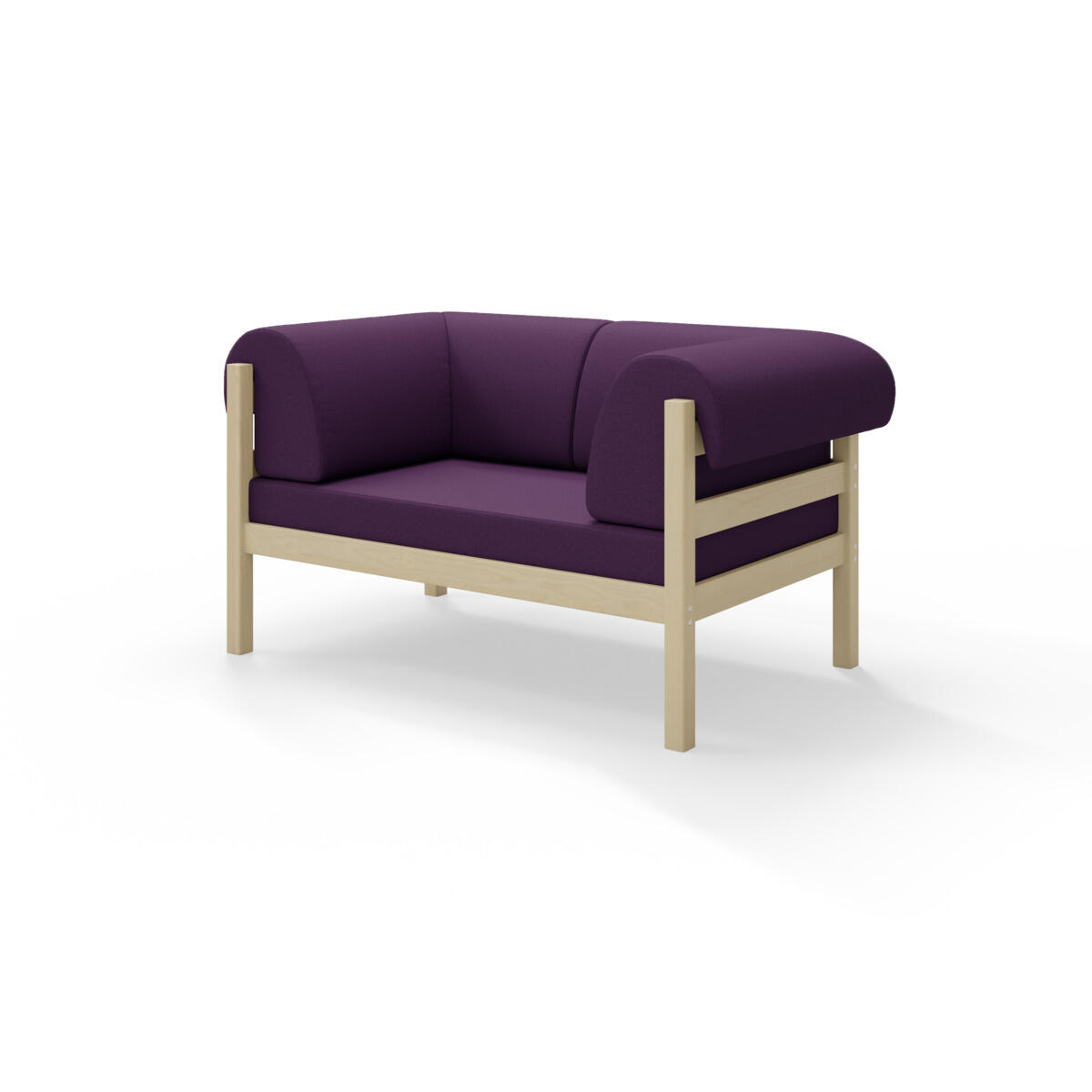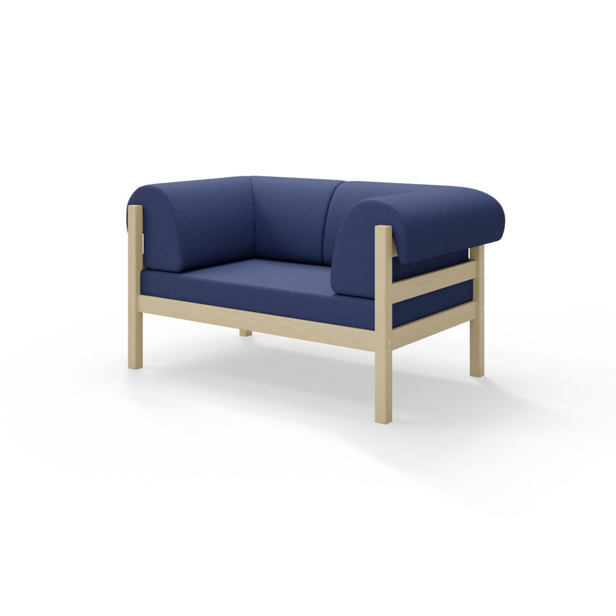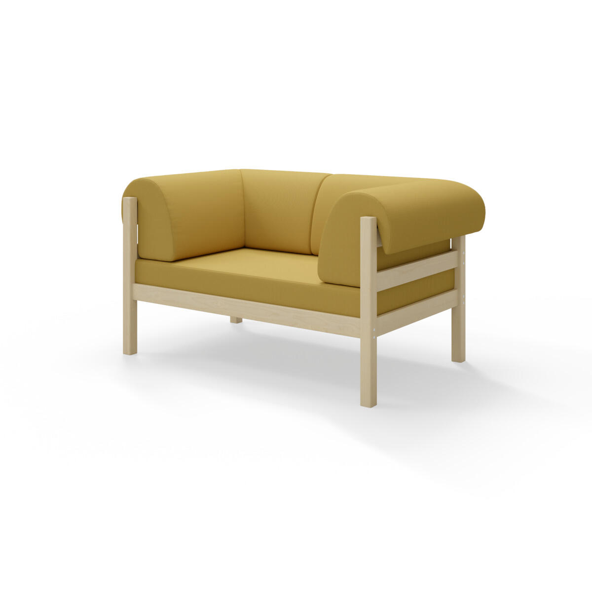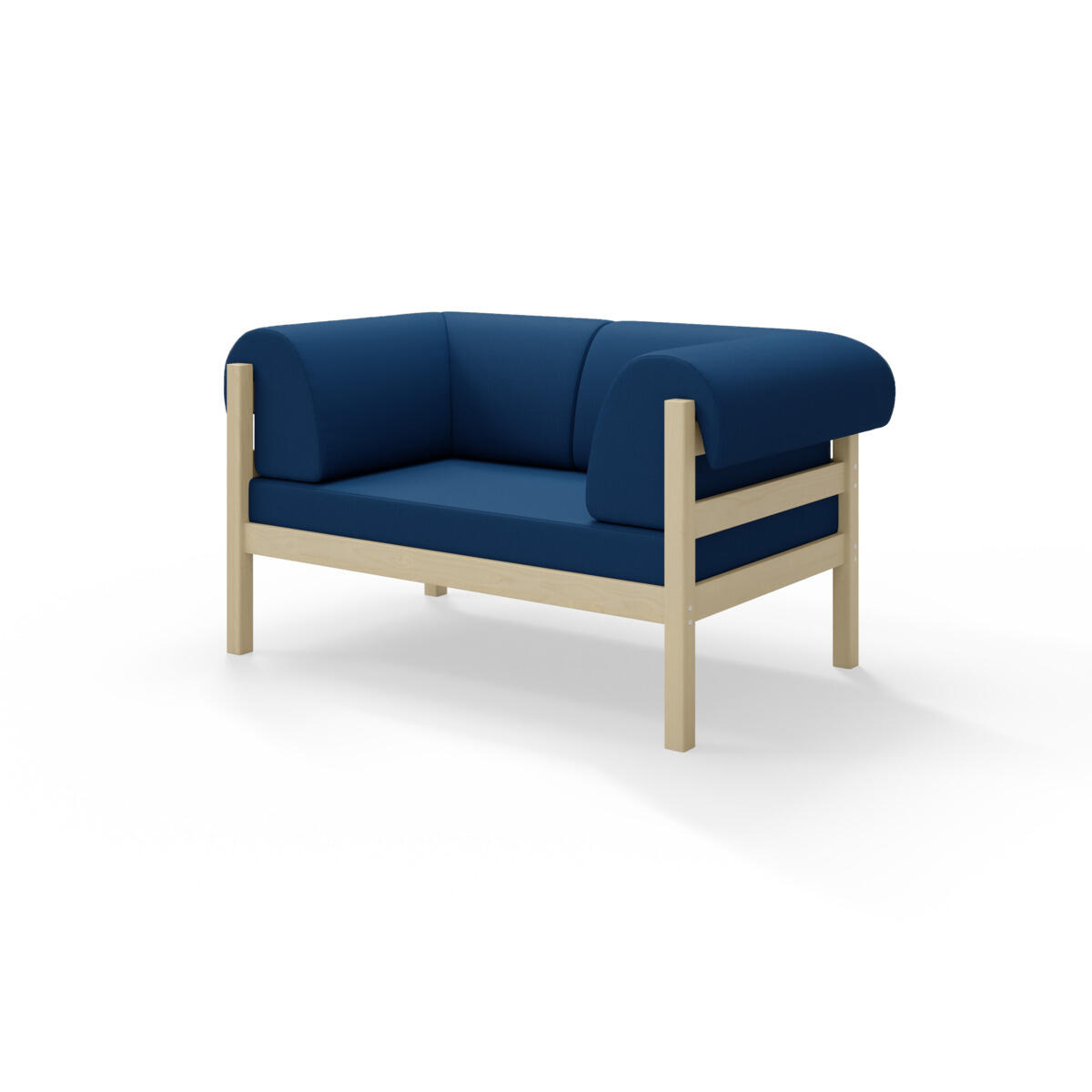 Sofa med solid stamme i bjørk og bunn av hard trefiberplate. Den myke polstringen i kaldskum gir en behagelig sitteopplevelse for både barn og voksne. Avtakbart trekk. Kompletter med vannavvisende trekk for å forlenge sofaens levetid. Sittehøyde 44 cm, sittedybde 60 cm.