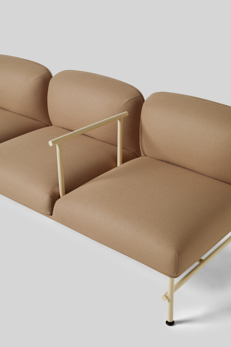 Et minimalistisk møbel som kombinerer eleganse med funksjonalitet. Trestamme og stopping i kaldskum. Ben i pulverlakkert metall. Som tilvalg finnes sidebord eller metallarmstøtte, bestilles på eget artikkelnummer.