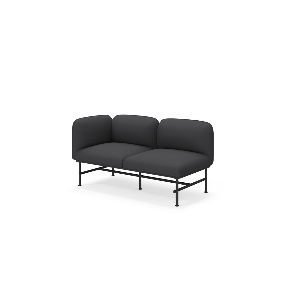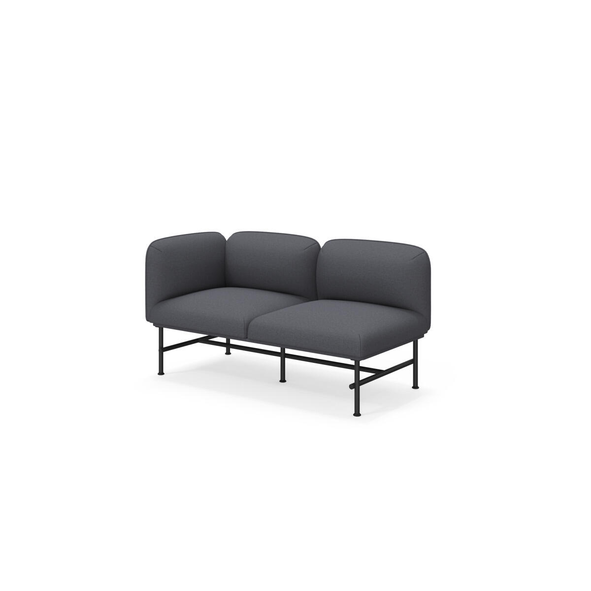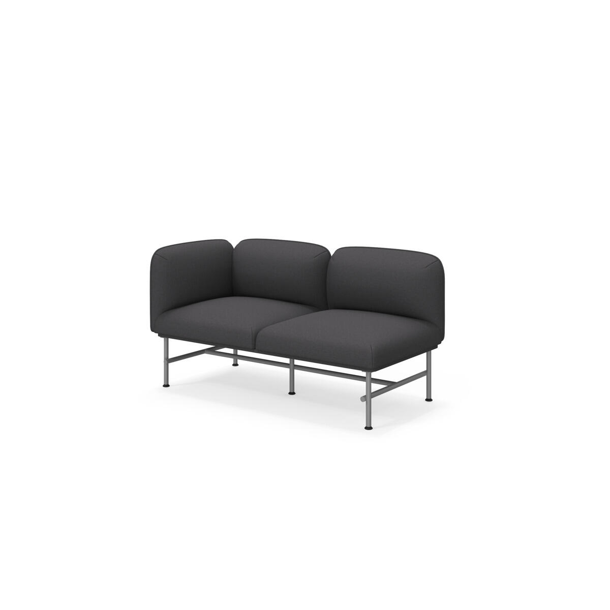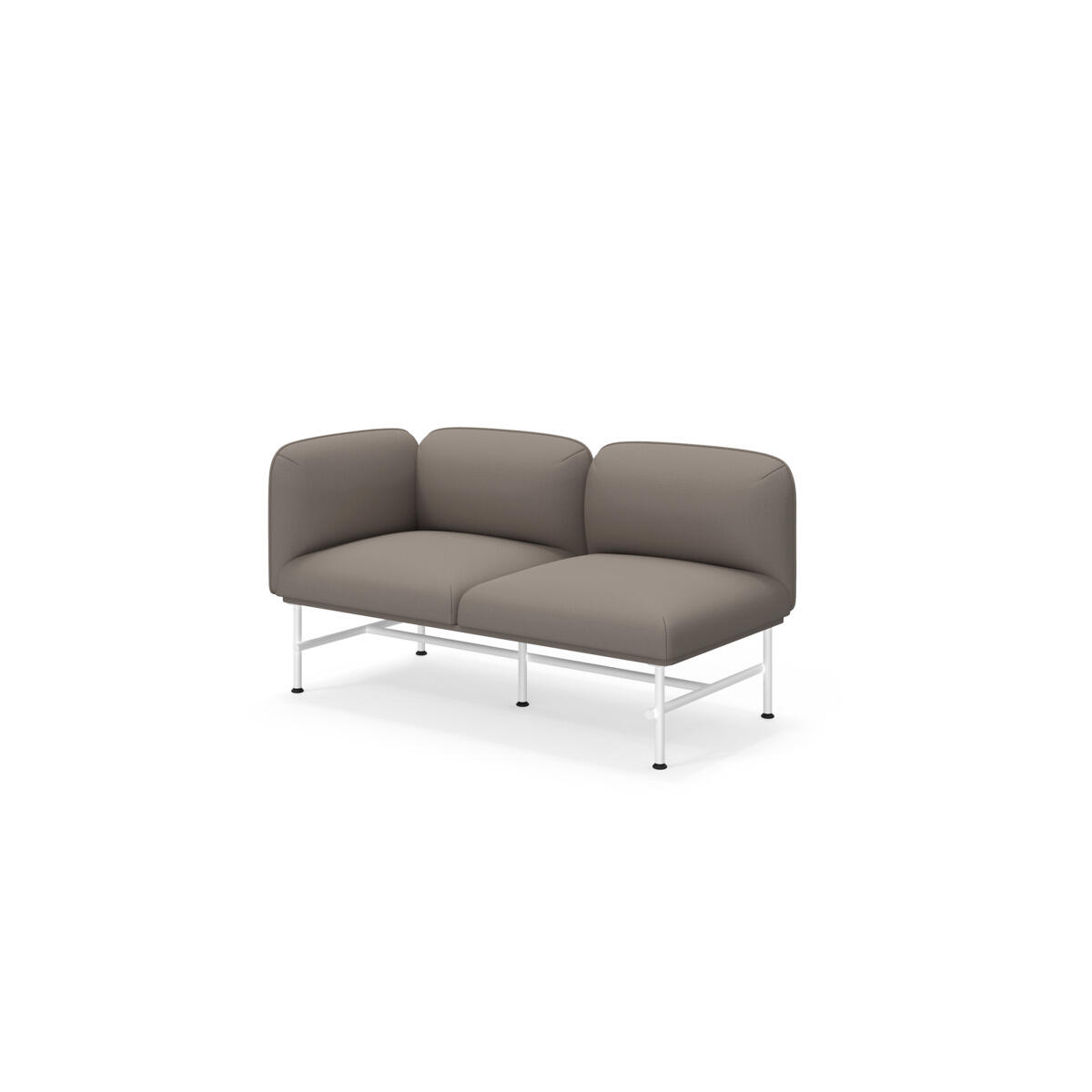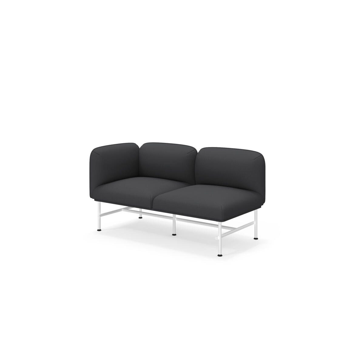 Et minimalistisk møbel som kombinerer eleganse med funksjonalitet. Trestamme og stopping i kaldskum. Ben i pulverlakkert metall. Som tilvalg finnes sidebord eller metallarmstøtte, bestilles på eget artikkelnummer.