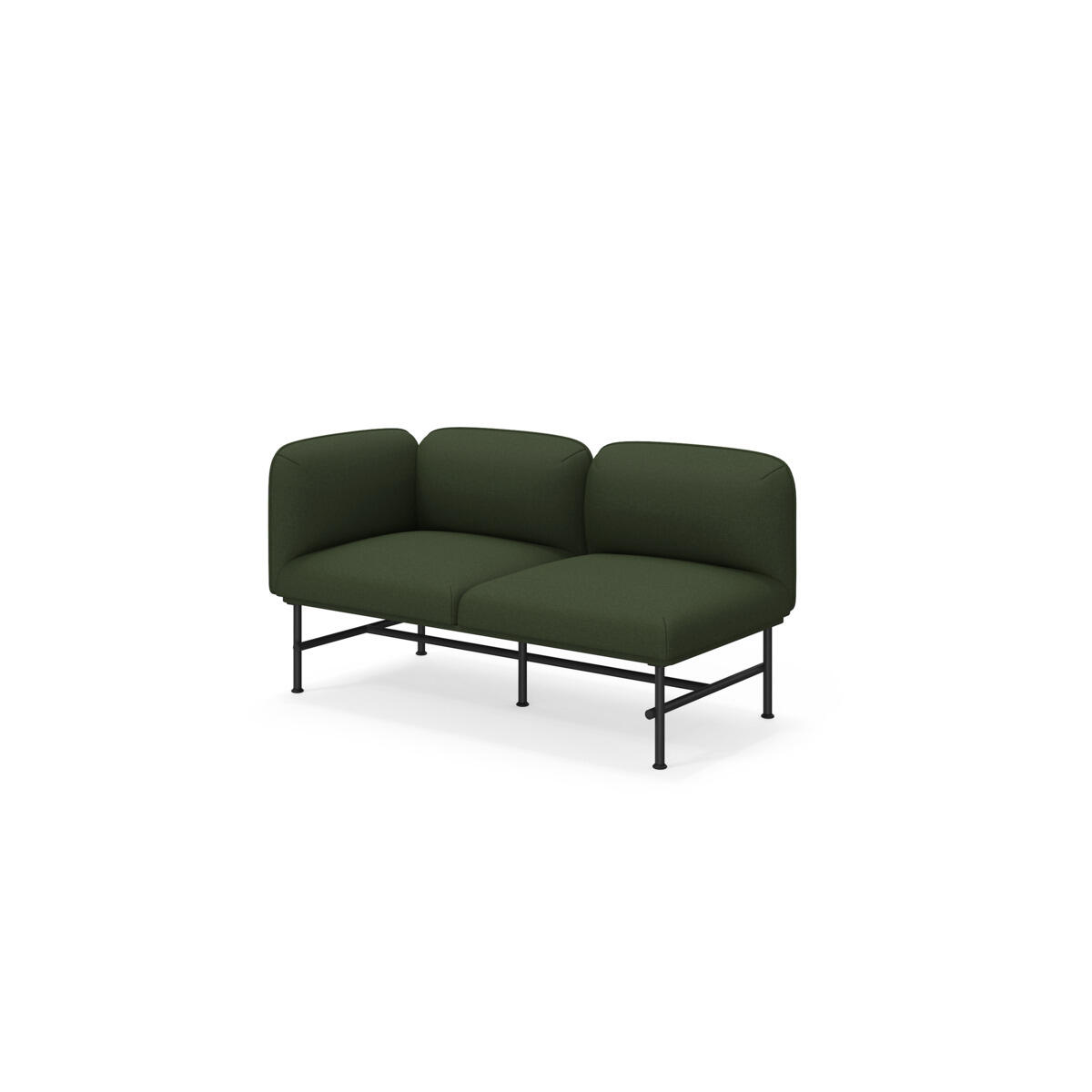 Et minimalistisk møbel som kombinerer eleganse med funksjonalitet. Den høye ryggen og sidene bidrar til å dempe lyd og forbedre rommets akustikk. Trestamme og stopping i kaldskum. Ben i pulverlakkert metall. Som tilvalg finnes sidebord eller metallarmstøtte, bestilles på eget artikkelnummer.
