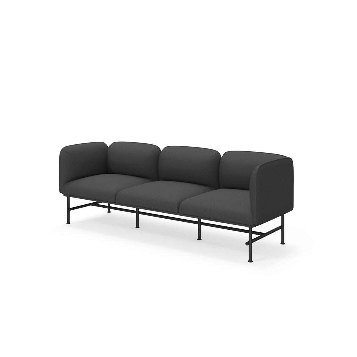 Et minimalistisk møbel som kombinerer eleganse med funksjonalitet. Den høye ryggen og sidene bidrar til å dempe lyd og forbedre rommets akustikk. Trestamme og stopping i kaldskum. Ben i pulverlakkert metall. Som tilvalg finnes sidebord eller metallarmstøtte, bestilles på eget artikkelnummer.