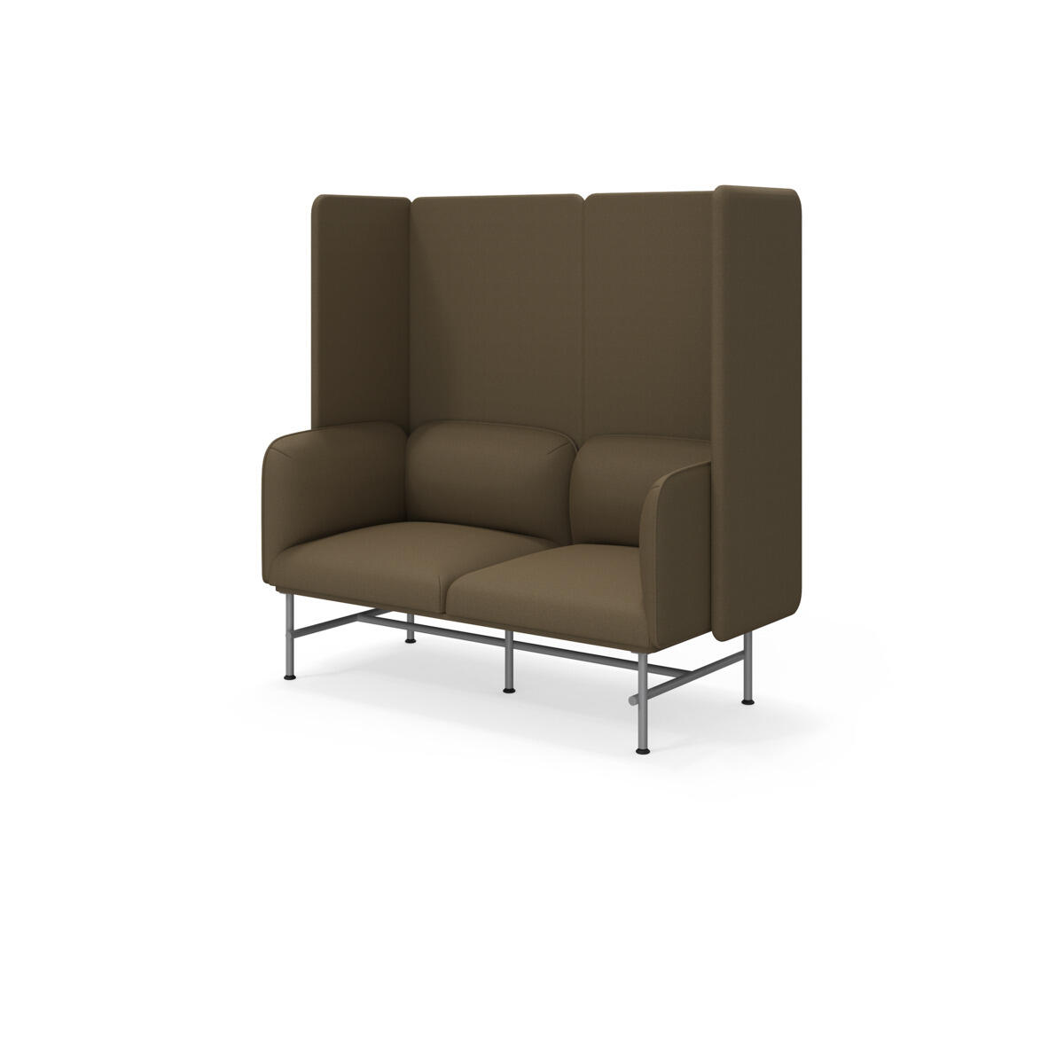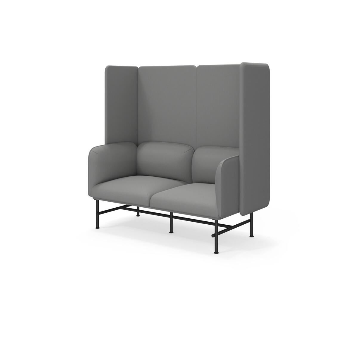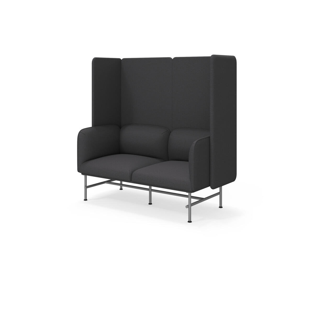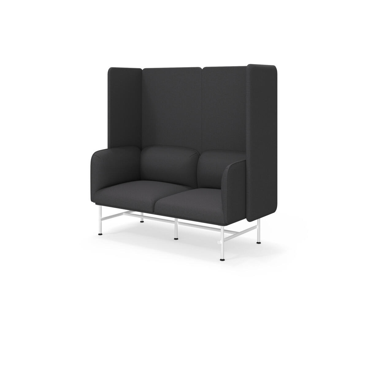 Et minimalistisk møbel som kombinerer eleganse med funksjonalitet. Den høye ryggen og sidene bidrar til å dempe lyd og forbedre rommets akustikk. Trestamme og stopping i kaldskum. Ben i pulverlakkert metall. Som tilvalg finnes sidebord eller metallarmstøtte, bestilles på eget artikkelnummer.