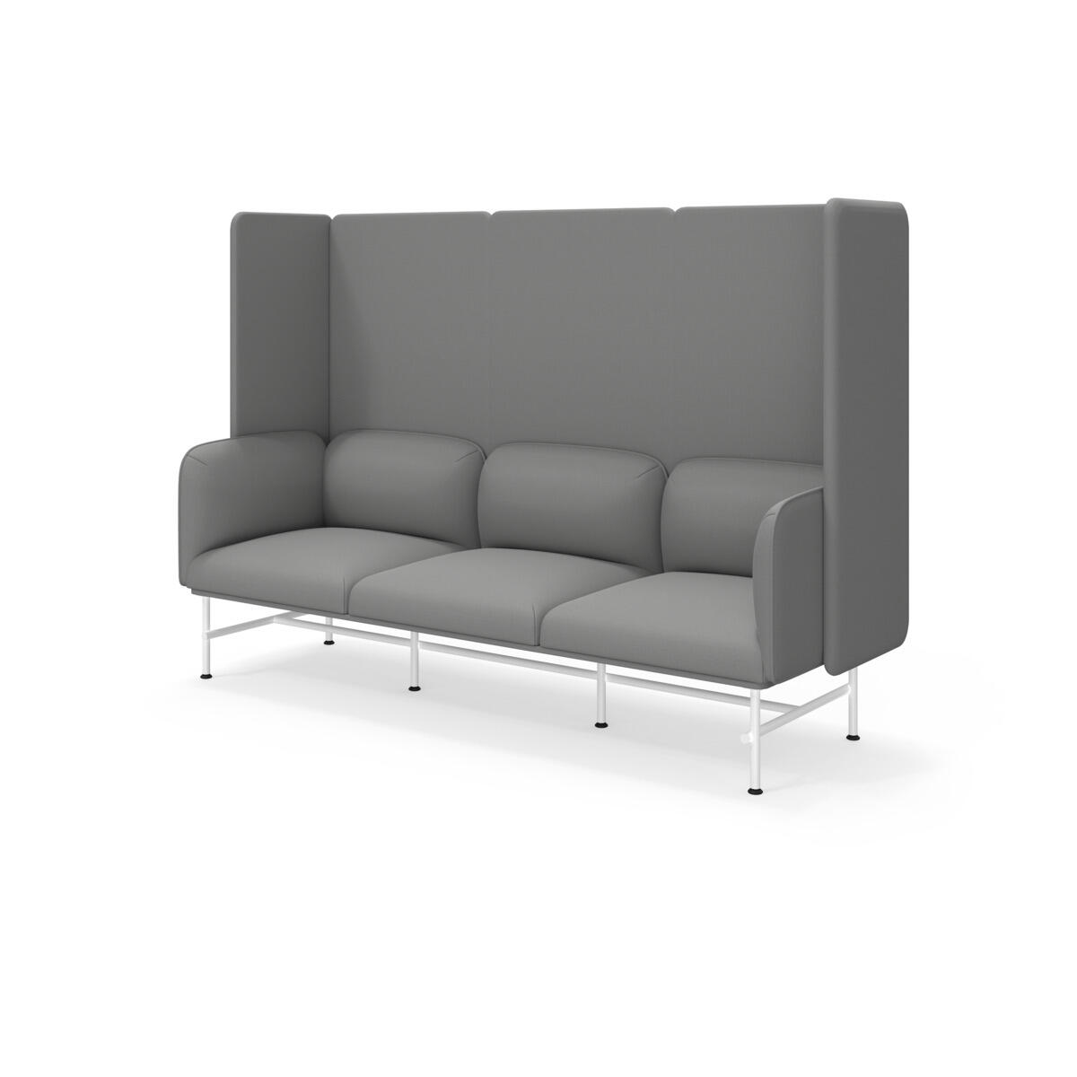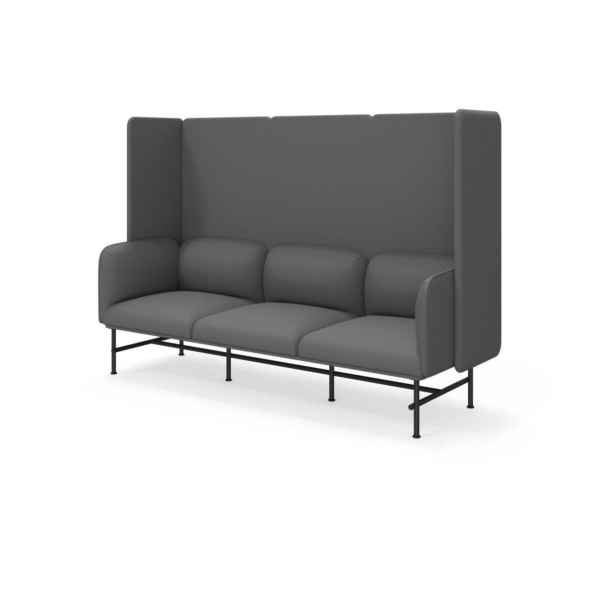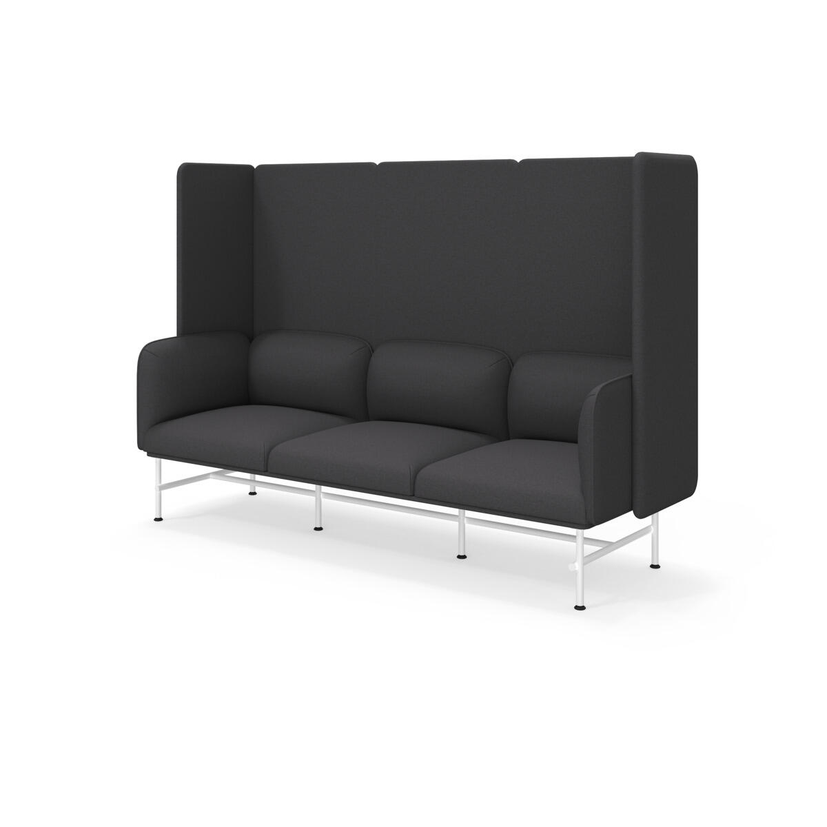 Et minimalistisk møbel som kombinerer eleganse med funksjonalitet. Den høye ryggen og sidene bidrar til å dempe lyd og forbedre rommets akustikk. Trestamme og stopping i kaldskum. Ben i pulverlakkert metall. Som tilvalg finnes sidebord eller metallarmstøtte, bestilles på eget artikkelnummer.