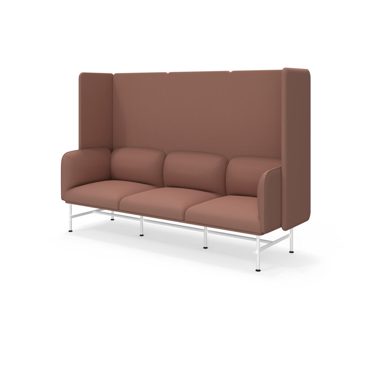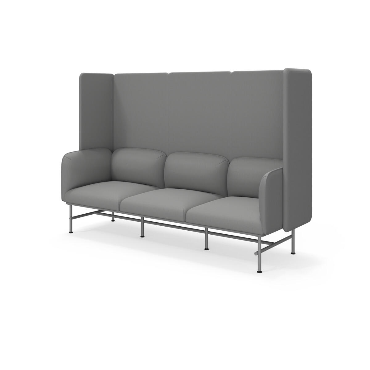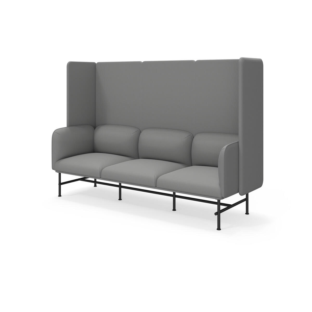 Et minimalistisk møbel som kombinerer eleganse med funksjonalitet. Den høye ryggen og sidene bidrar til å dempe lyd og forbedre rommets akustikk. Trestamme og stopping i kaldskum. Ben i pulverlakkert metall. Som tilvalg finnes sidebord eller metallarmstøtte, bestilles på eget artikkelnummer.