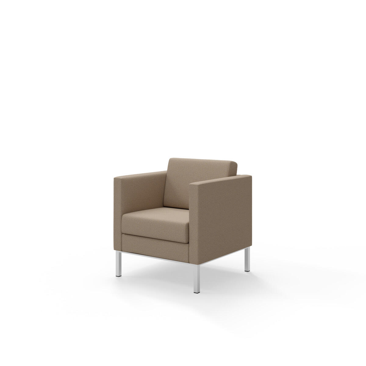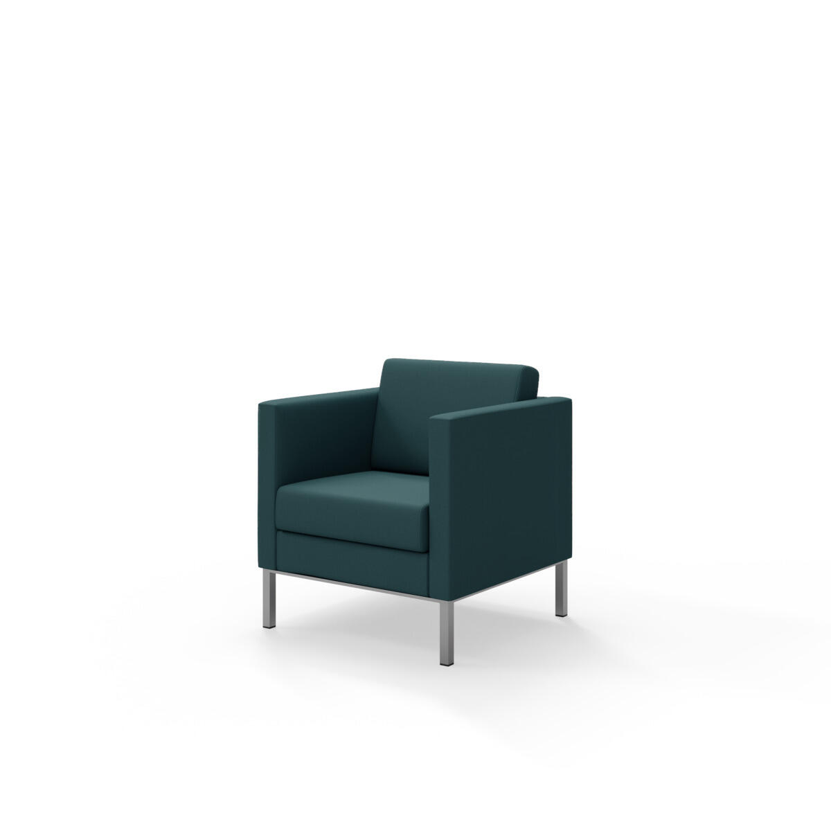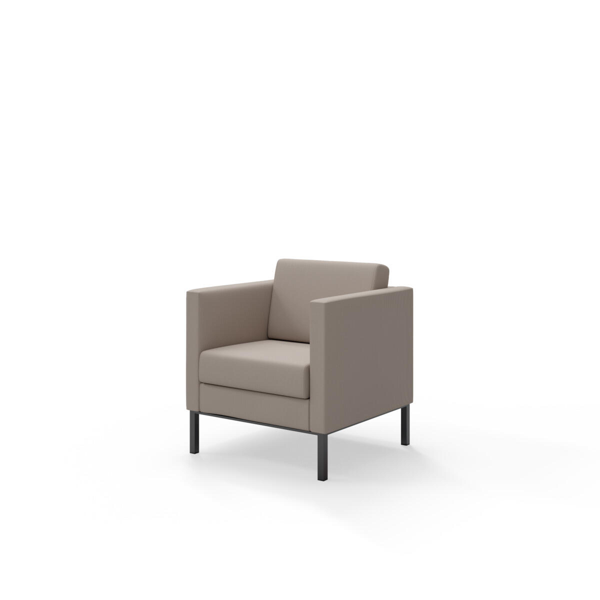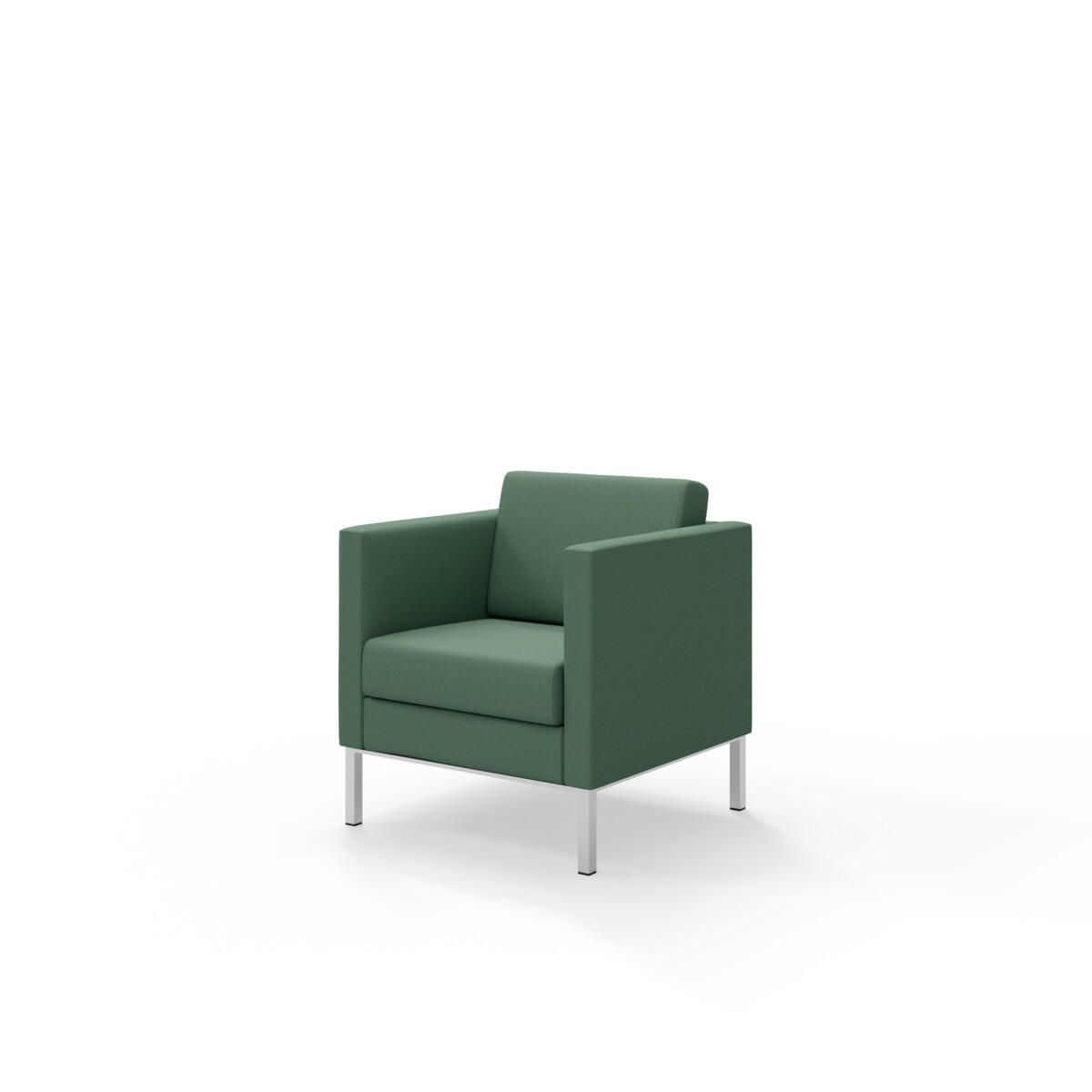En moderne og tidløs sofa med et enkelt design som passer inn i de fleste miljøer. Det rette utsiden gjør det enkelt å plassere flere sofaer tett sammen, for eksempel rygg mot rygg. Treramme med nozag-understell og polstring av kaldskum. Understell i pulverlakkert metall. Avtakbart trekk på rygg- og sitteputer.