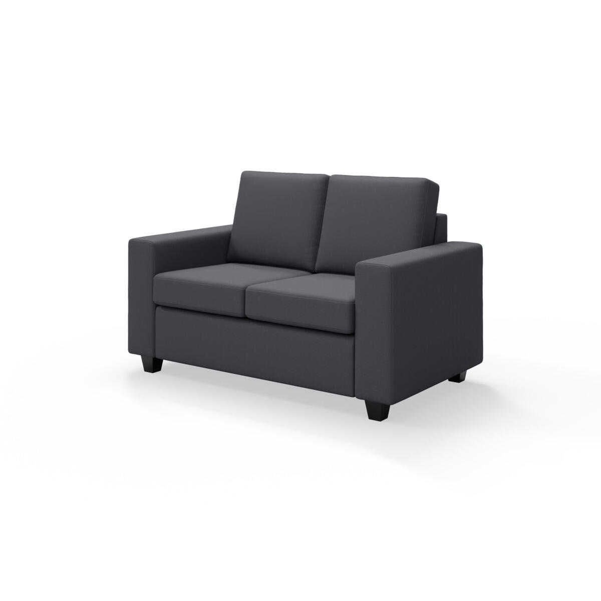Sofa med stabil trestamme, nozagfjæring i bunnen og puter av kaldskum for ekstra komfort. Avtakbart trekk på rygg- og sitteputer. Mål: 142x83 cm. Sittehøyde 45 cm, sittedybde 56 cm. Benhøyde 10 cm