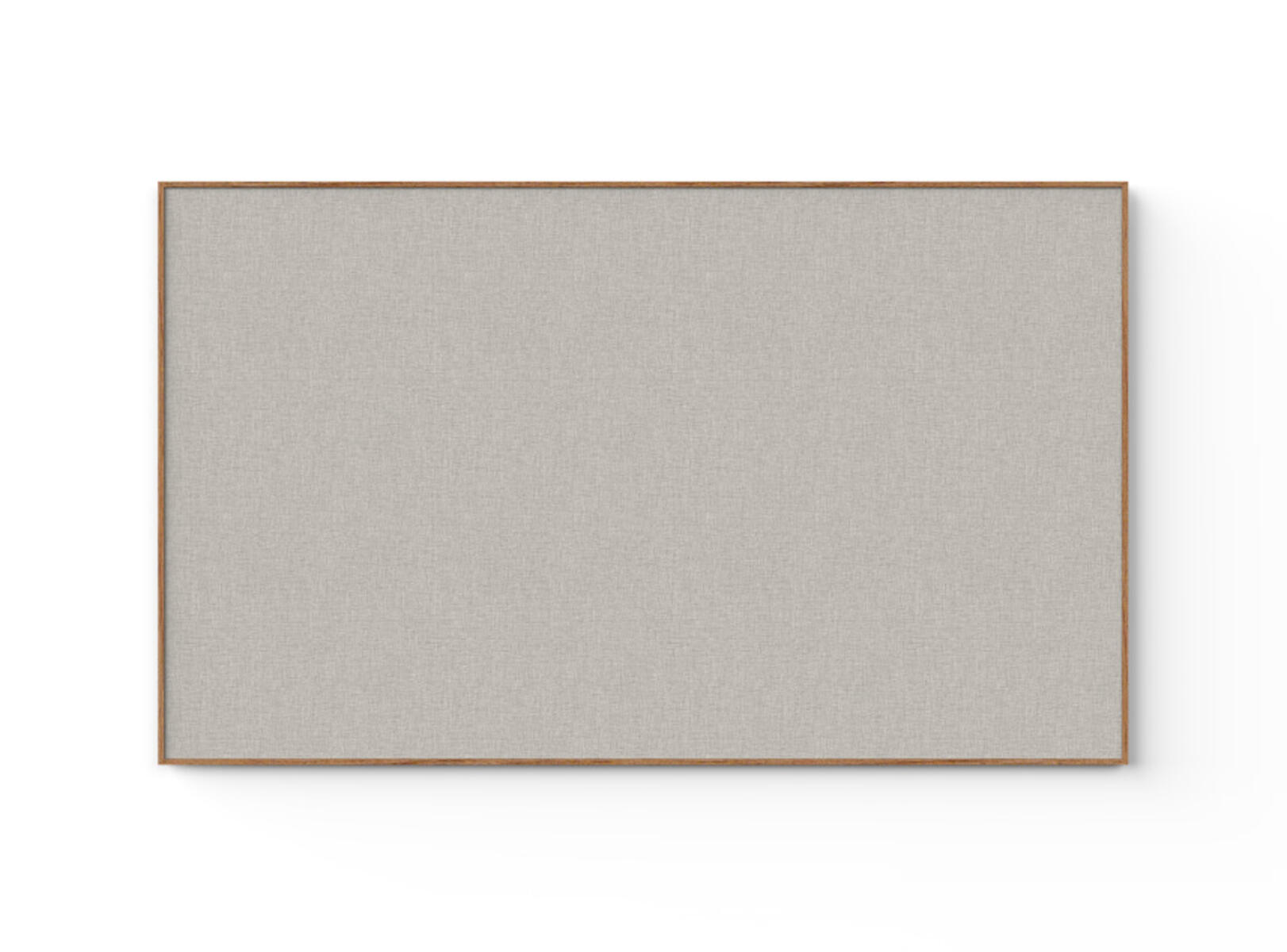 Oppslagstavle trukket med lin. Aluminiumsramme med plasthjørner.