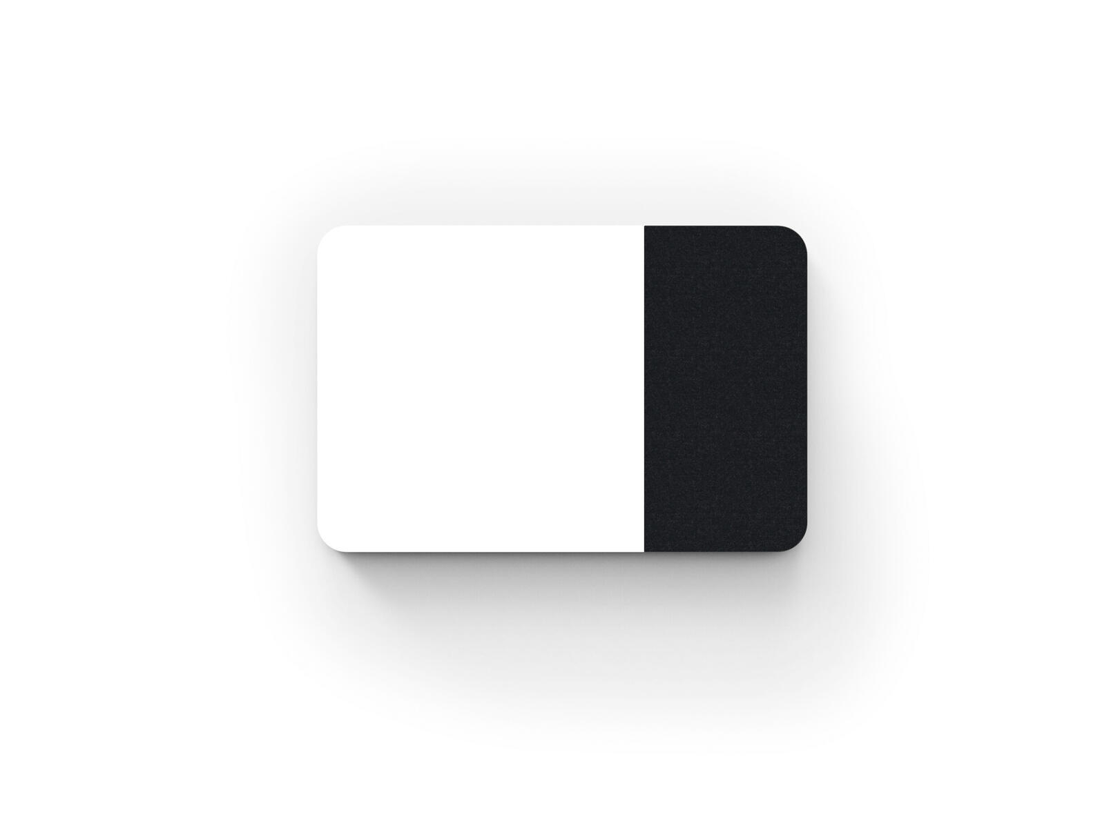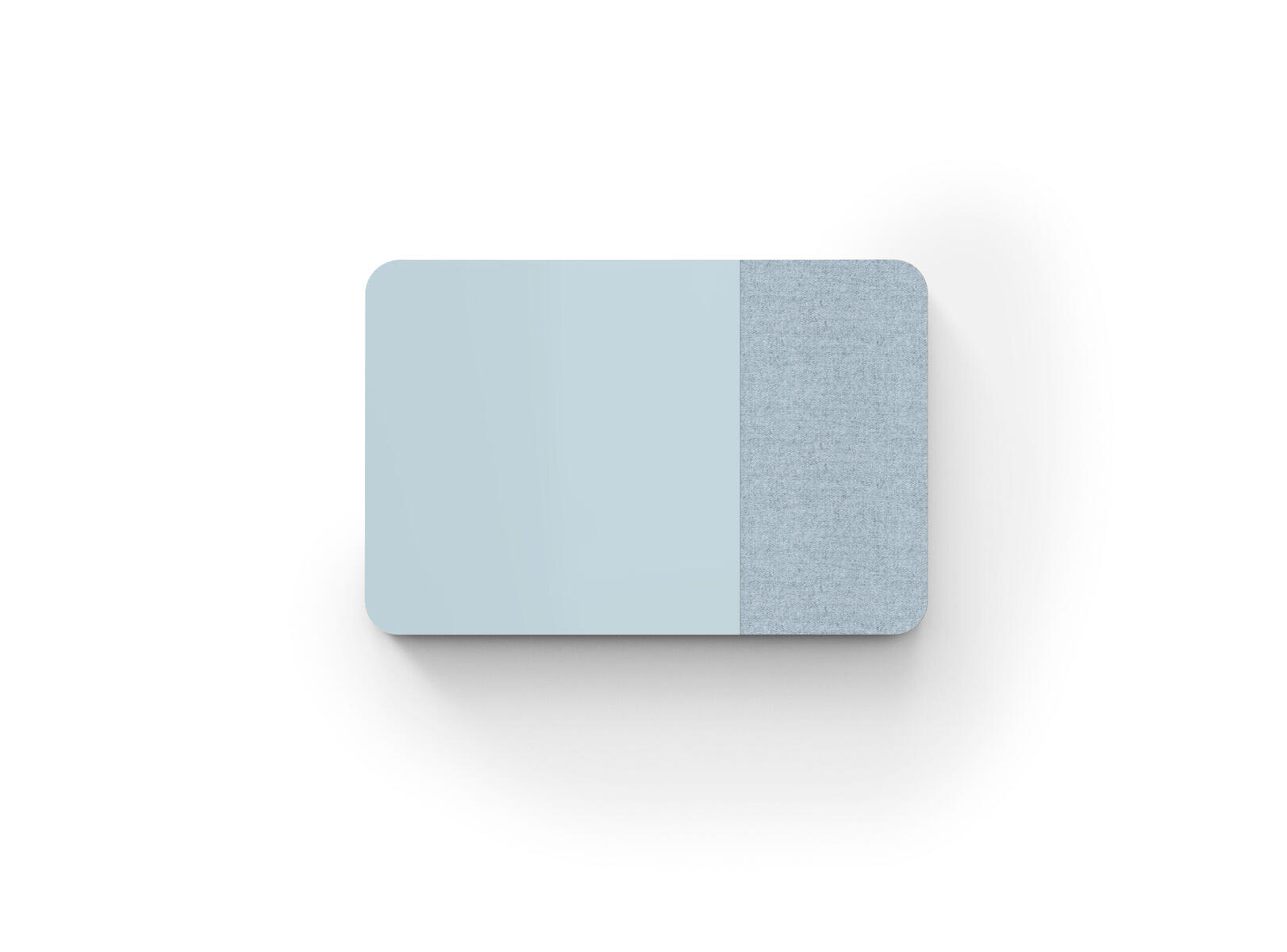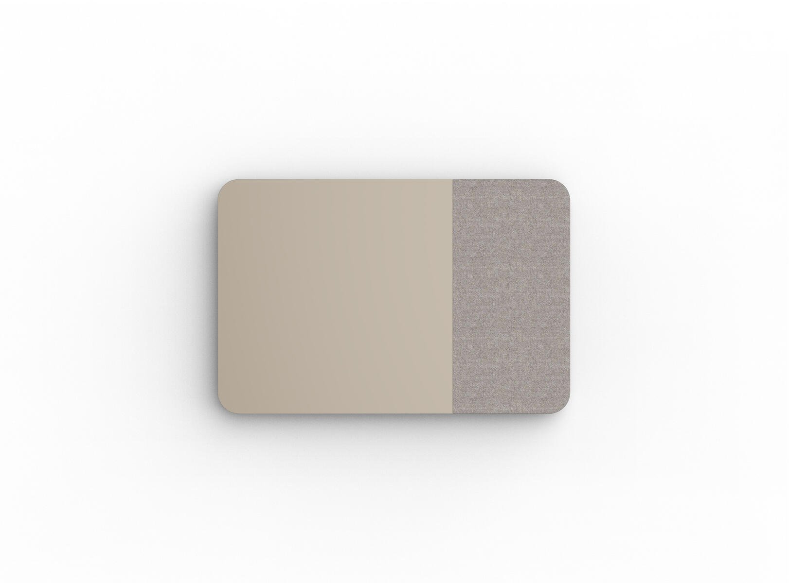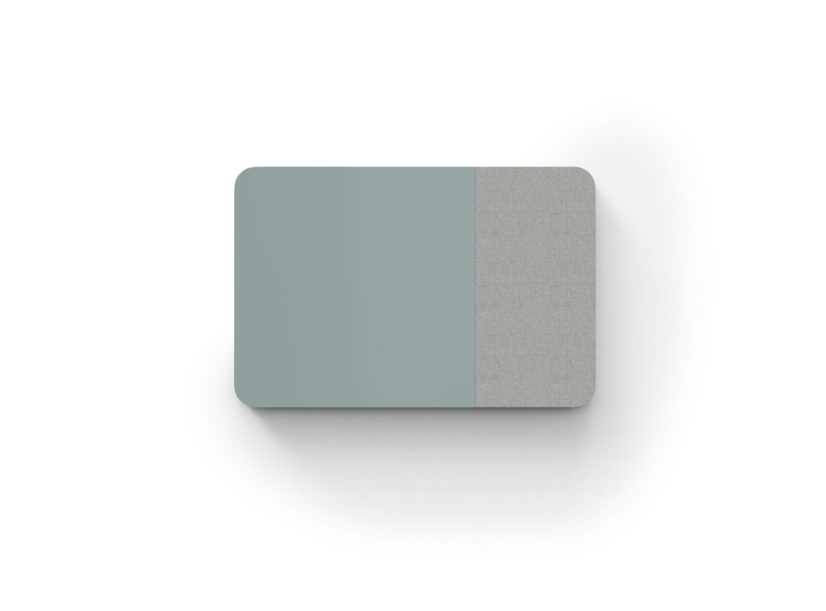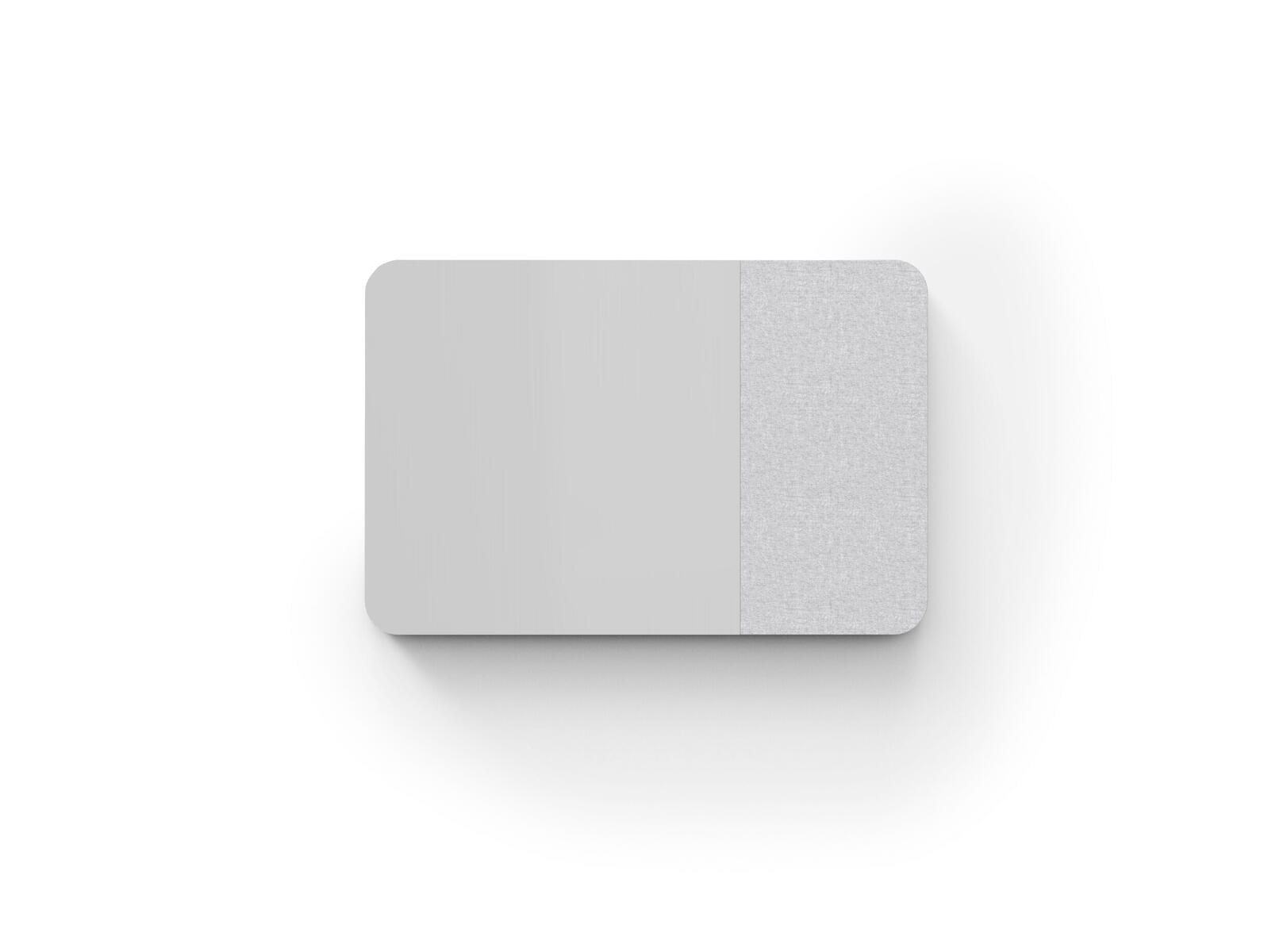 Tavle med kombinasjon av stoffkledd flate og magnetisk skirvbar glassflate samt lydabsorberende fyll. Den stoffkledde flaten er 50 cm bred. Skjulte beslag