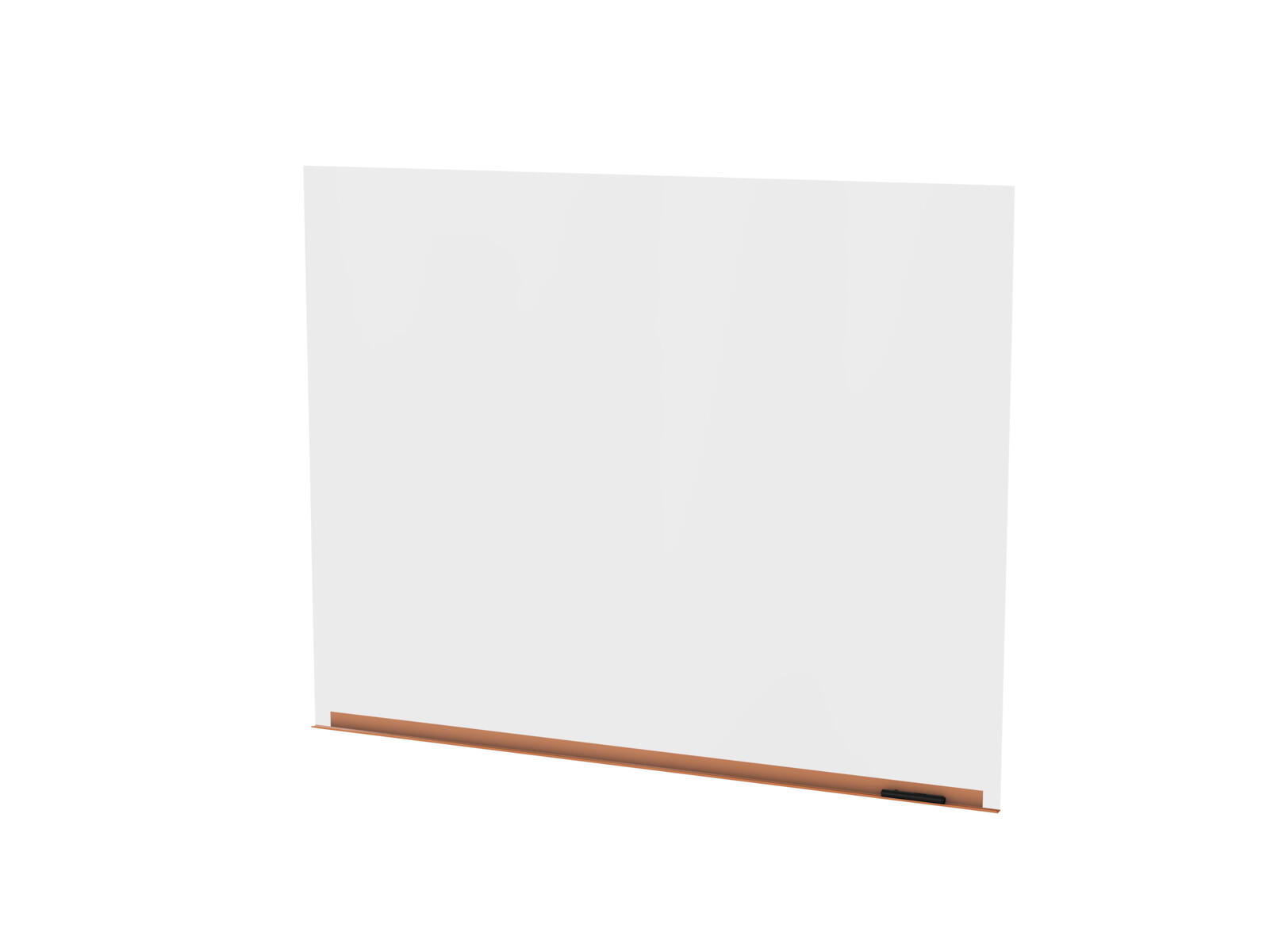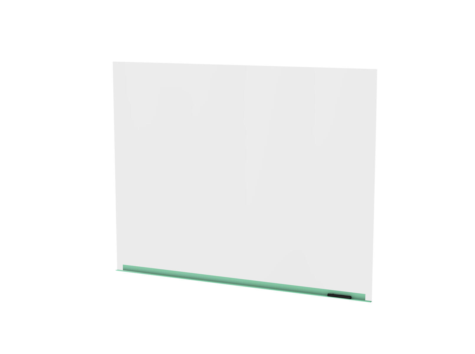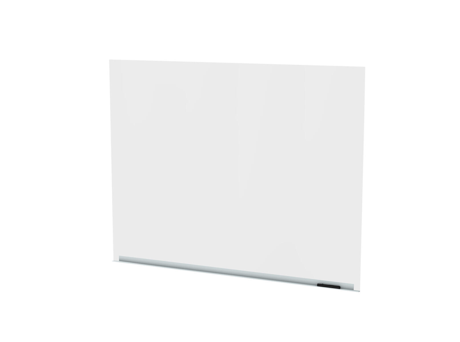 Magnetbærende glasstavle laget av optisk glass med ekstra lavt jerninnhold, noe som gir et helt klart glass uten grønne toner. Det klare glasset gir en glans og en fargenøyaktighet som ikke kan oppnås med vanlig standardglass. Skjulte beslag. Herdet, optisk glass 4 mm. Krever spesielt tilpassede, sterkere magneter. Som tilbehør finnes pennehylle i matchende farger.