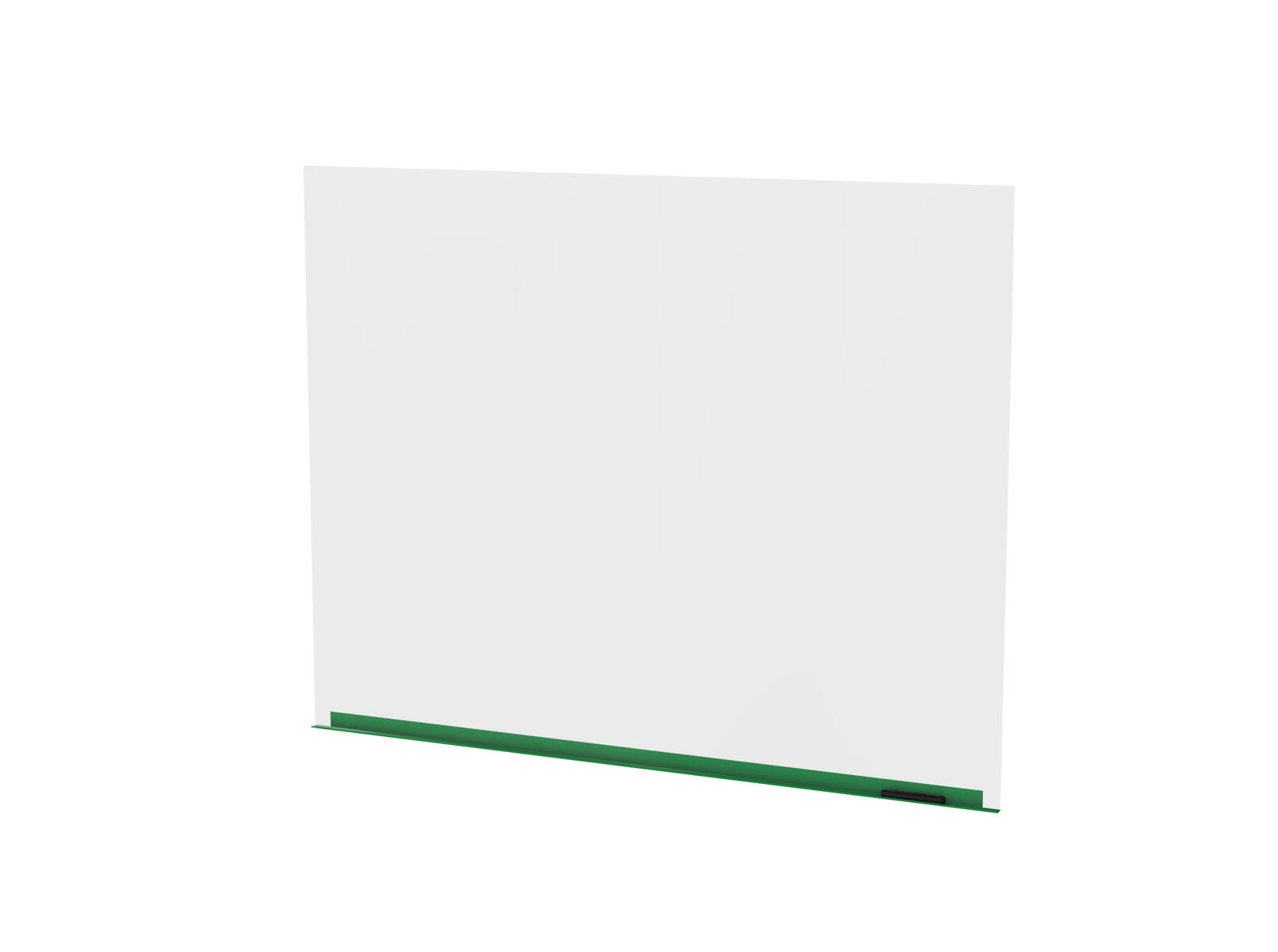 Magnetbærende glasstavle laget av optisk glass med ekstra lavt jerninnhold, noe som gir et helt klart glass uten grønne toner. Det klare glasset gir en glans og en fargenøyaktighet som ikke kan oppnås med vanlig standardglass. Skjulte beslag. Herdet, optisk glass 4 mm. Krever spesielt tilpassede, sterkere magneter.