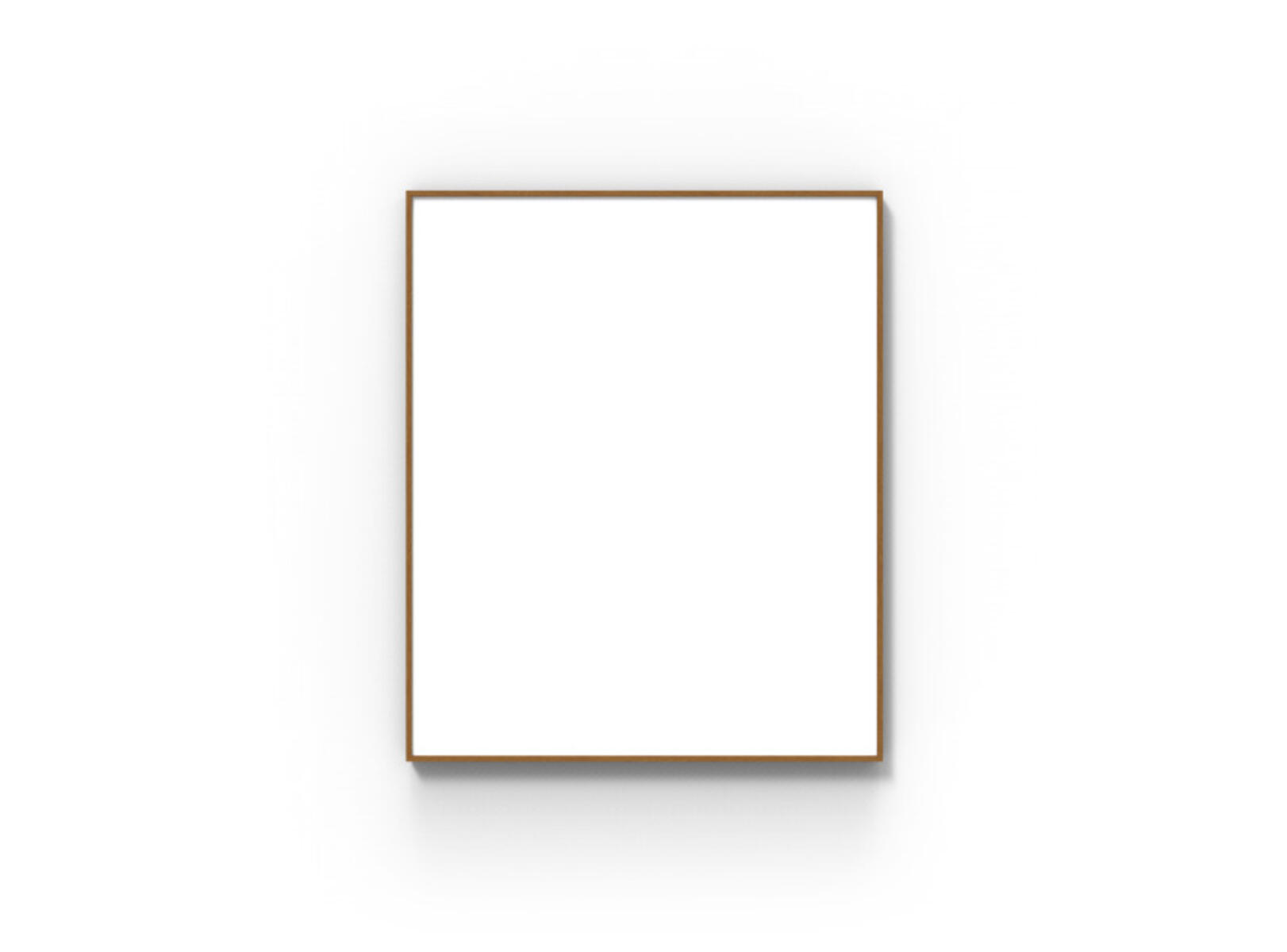 Whiteboard med magnetisk skriveflate i stål med ramme i heltre eik. Skjulte beslag. Dybde fra vegg: 20 mm.