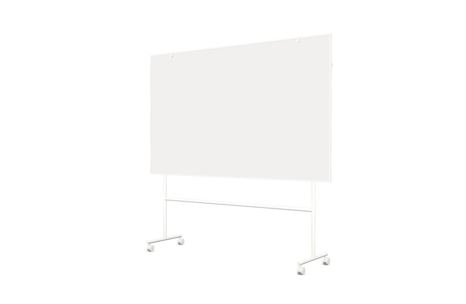 Dobbelsidig vendbar magnetisk whiteboardtavle av keramisk stål. Stativ med låsbare hjul. Hurtiglås holder tavlen sikkert på plass. Pennehylle under tavlen. Høyde 196 cm, bredde 151,5 cm og dybde på stativ 66,5 cm.