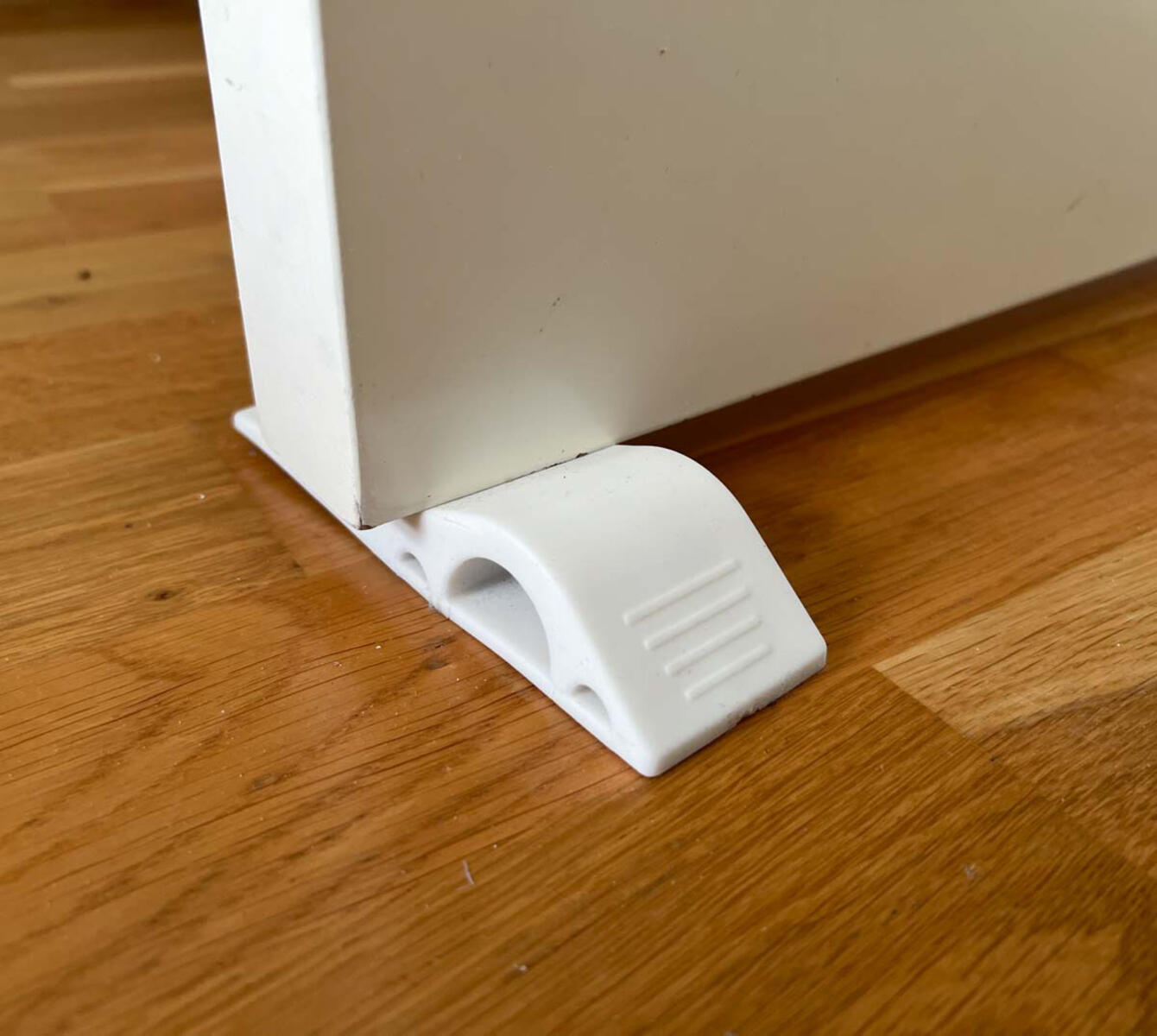 Dørkile for å holde døren fast i åpen stilling, for eksempel ved lufting eller for å hindre at barnet leker med døren. Den er laget av et gummilignende materiale som gir høy friksjon mot gulvet og låser døren godt i åpen posisjon. En liten holder som kan festes på døren med dobbeltsidig teip følger med. Dørkilen etterlater ingen merker verken på gulv eller dører. OBS! Dørkilen passer ikke for dører som står mer enn 2 cm over gulvet. Leveres i 1‑pakning.