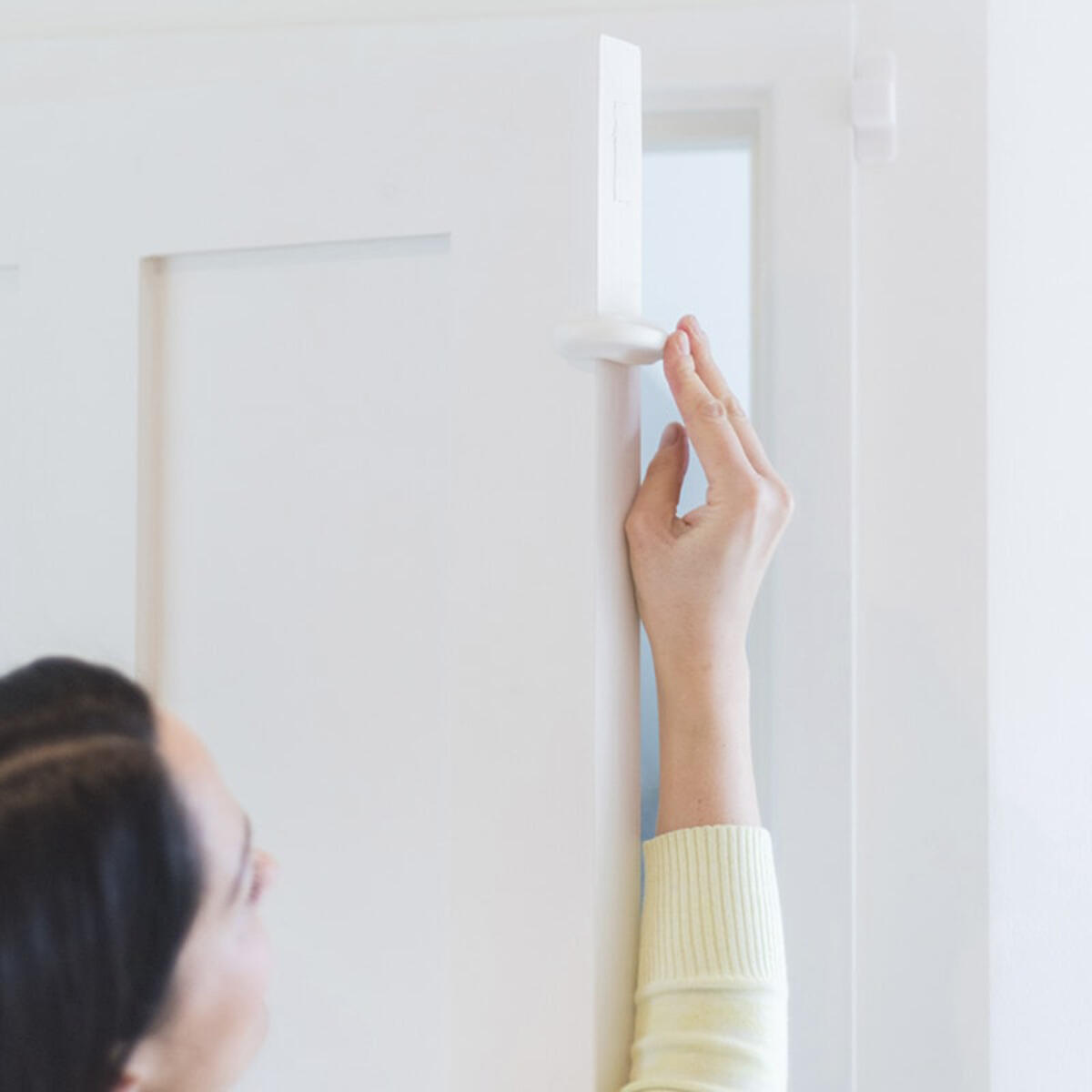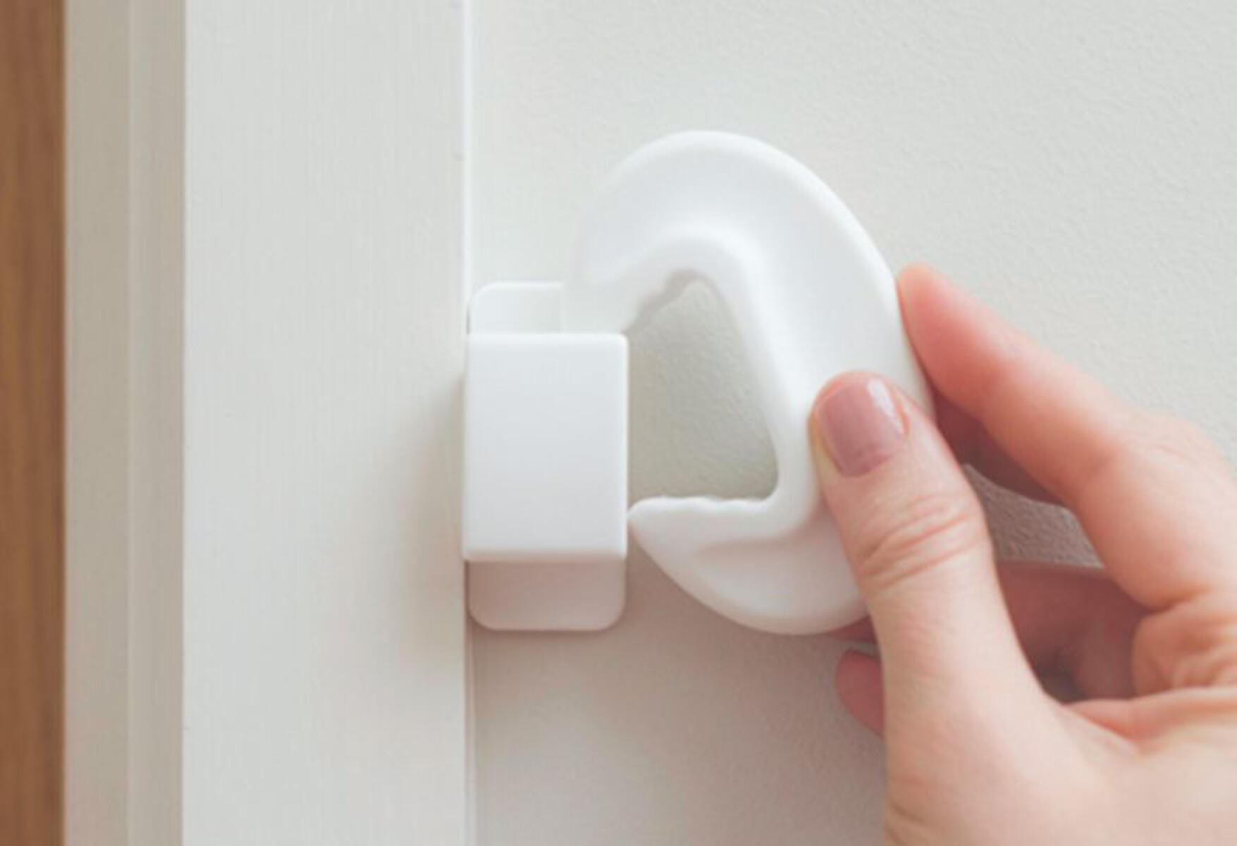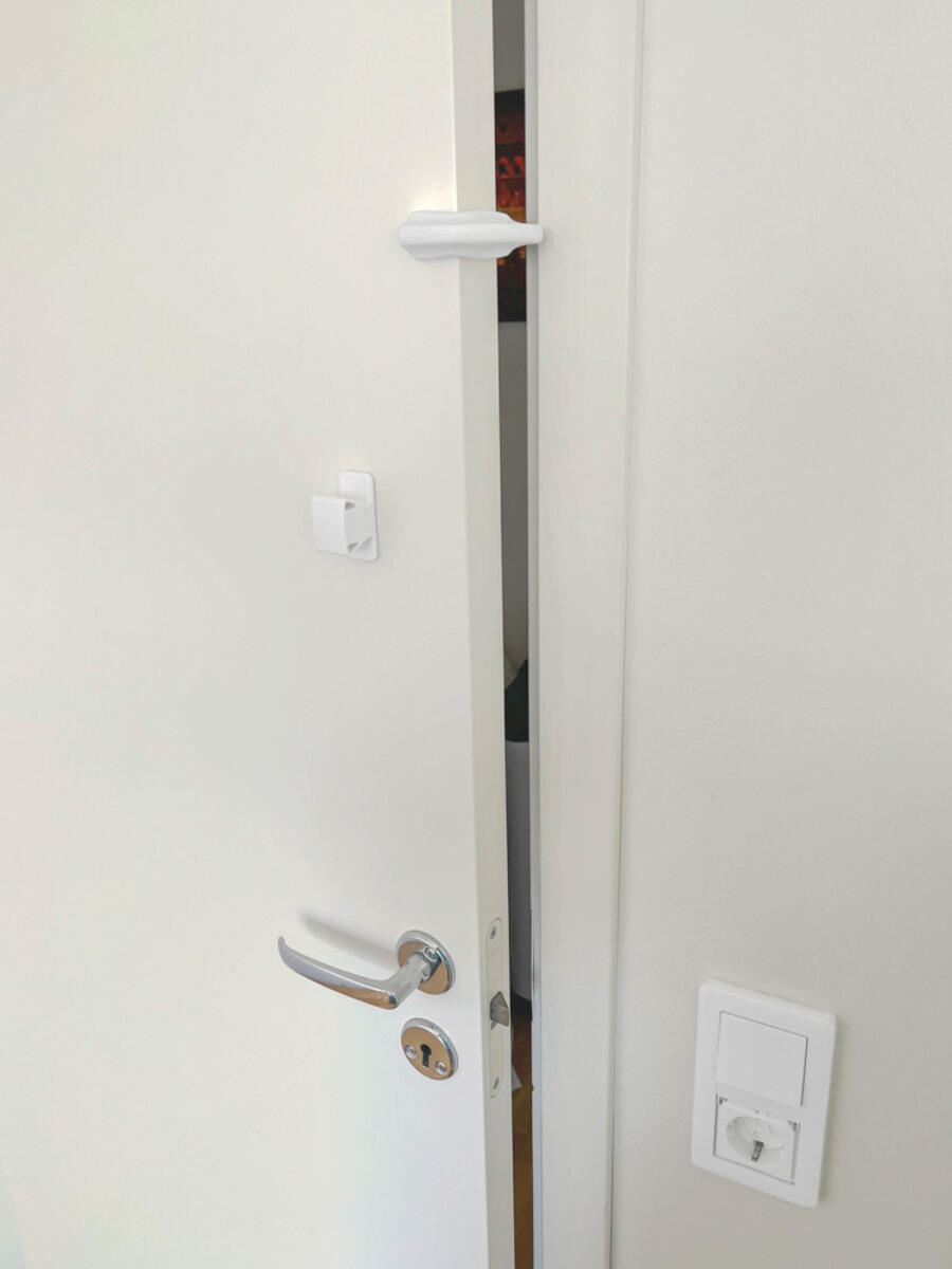 Klemsikring som beskytter barnet mot å klemme fingrene i forkanten av døren, og også mot at de låser seg inne på rommet, ettersom døren ikke kan lukkes når den sitter på.
