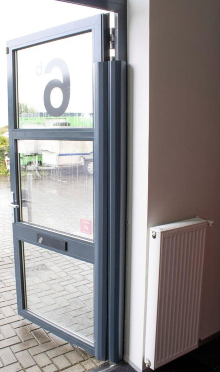 Klemsikring til dører over 6 cm tykke og kraftige hengsler med diameter over 13 mm. Beskyttelsen gjelder både innside og ytterside av døren. Høyde 200 cm, bredde 13 cm.