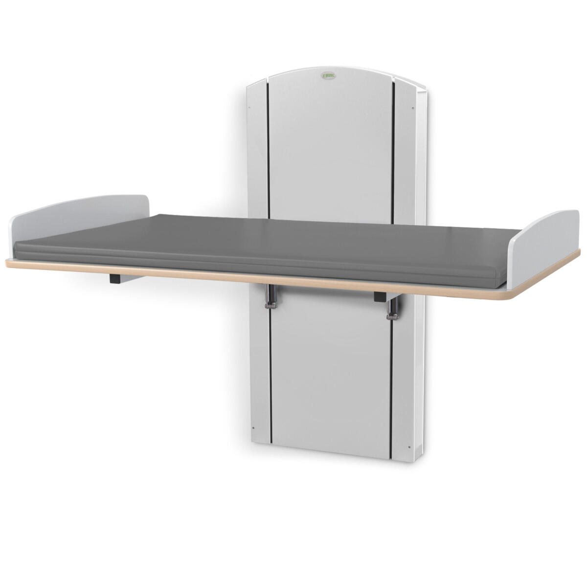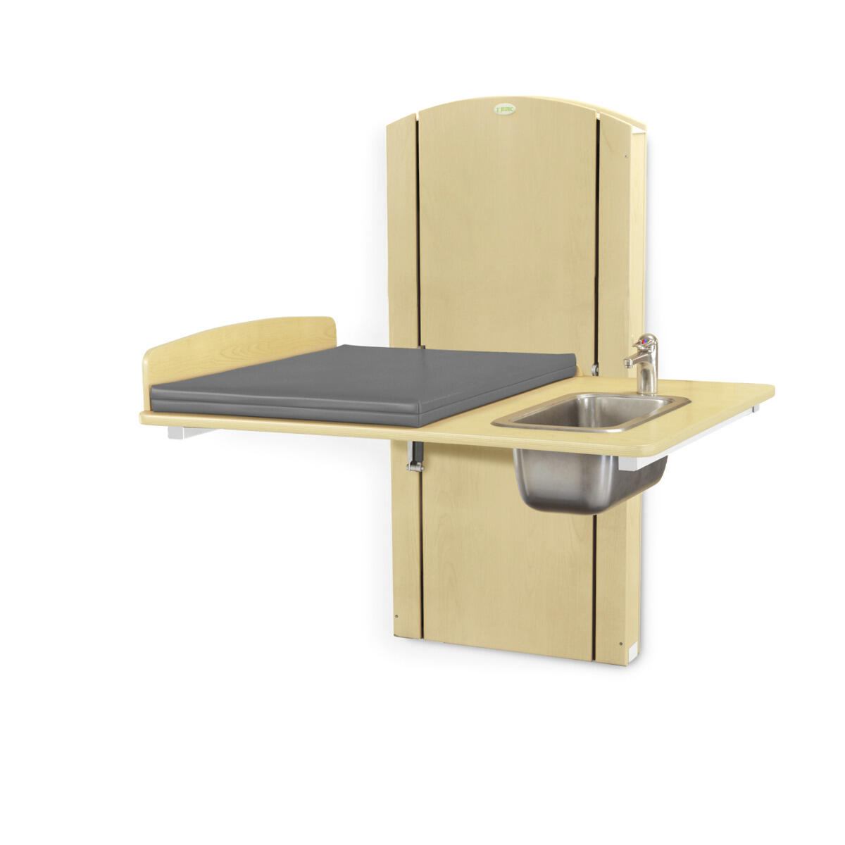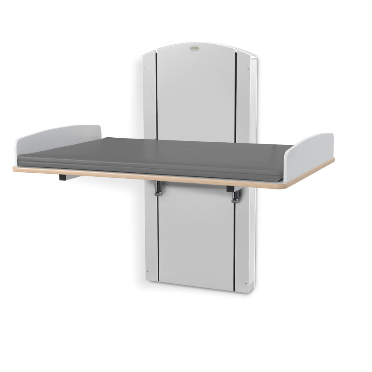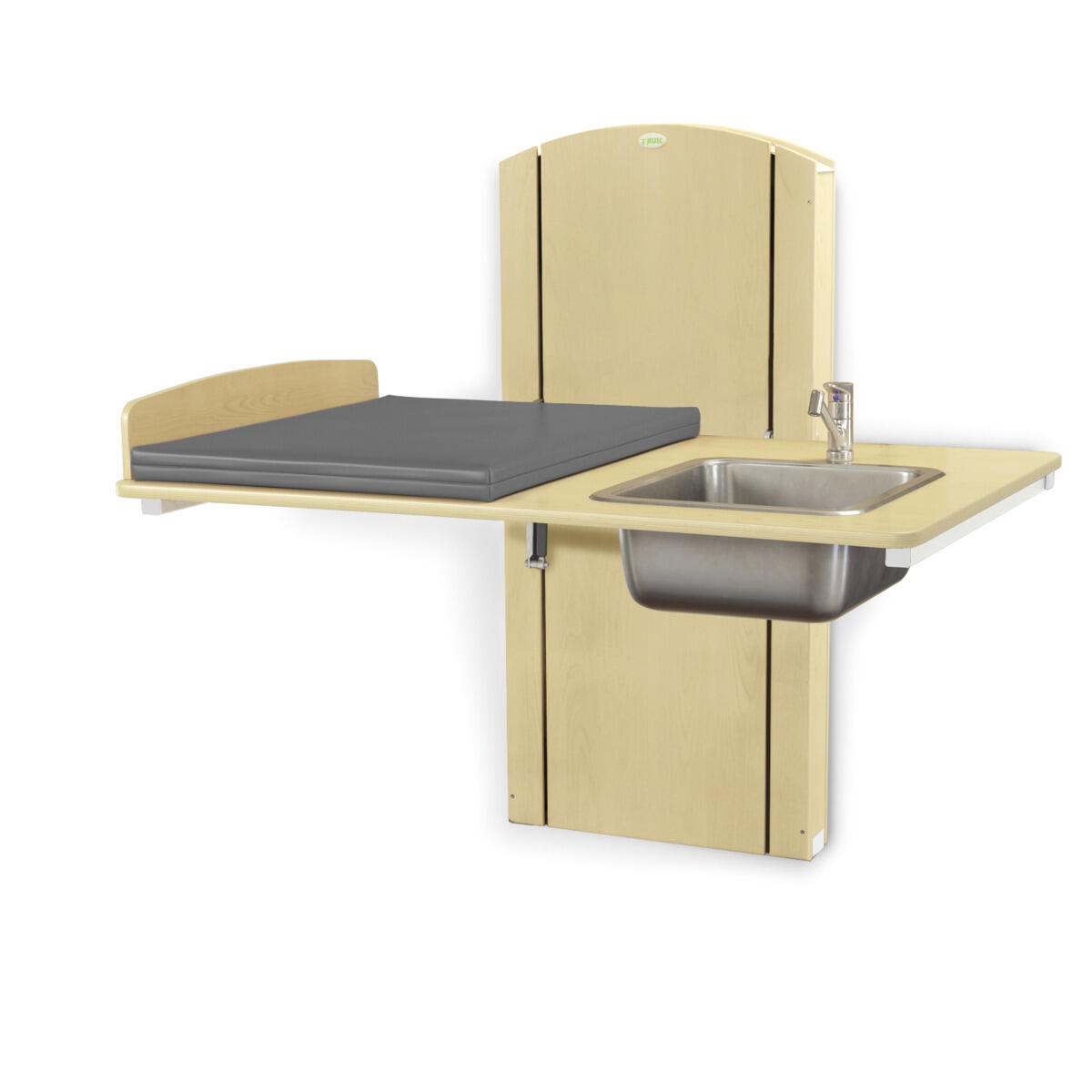 Lyfta vegghengt elektrisk justerbart stellebord med en minimumshøyde på 30 cm slik at barn enkelt kan klatre opp på stellebordet fra gulvnivå. Du stiller enkelt inn riktig arbeidshøyde med håndkontrollen. Forhøyet vegg finnes i bredder mellom 60-140 cm og med vaskedel høyre eller venstre i breddene 100, 120 og 140 cm. Alle bredder har standard plate i laminert plyfa (hvit eller bjørk) med mykt avrundede hjørner og høye kanter. Når stellebordet ikke er i bruk kan platen brettes opp mot veggen for å spare plass (gjelder ikke modeller med vaskedel). For å unngå klemfare mellom stellebordet og omkringliggende flater bør du ha en sikkerhetsavstand på ca 10 cm. Madrassen kan desinfiseres med sprit og tåler maskinvask opp til 60 °C. Ved valg av vaskedel følger det med blandebatteri. Ved bredde 120-140 med vask 34x40x18 cm medfølger blandebatteri med hånddusj. Ved bredde 100 med vask 17x34x14 cm medfølger blandebatteri uten hånddusj.