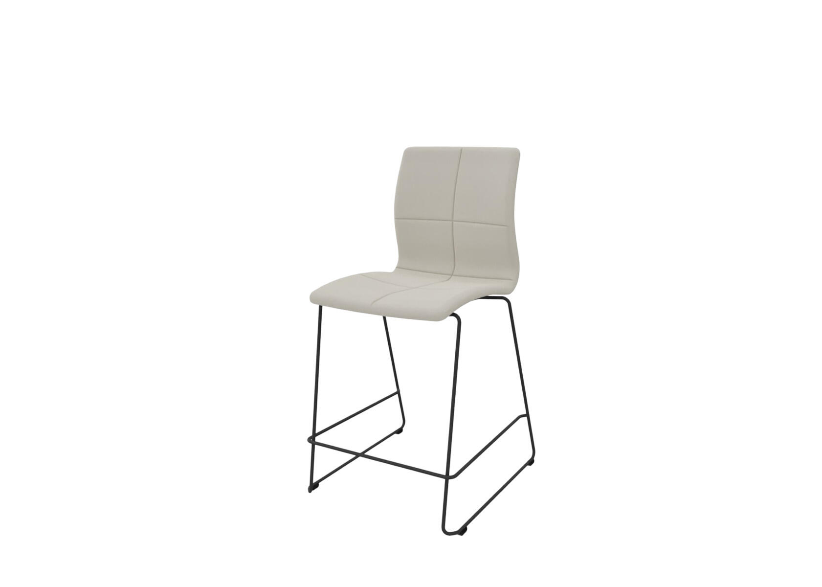En tidløs, ergonomisk og komfortabel barstol med quiltet rygg og sete i formpresset finér polstret med kaldskum som gir både komfort og støtte. Robust pulverlakkerte meieben, Ø11 mm rør med filtknotter for å beskytte gulvet. Stolen kan stables, maks. 5 i høyden. Fotstøtte plassert 31 cm fra gulvet..