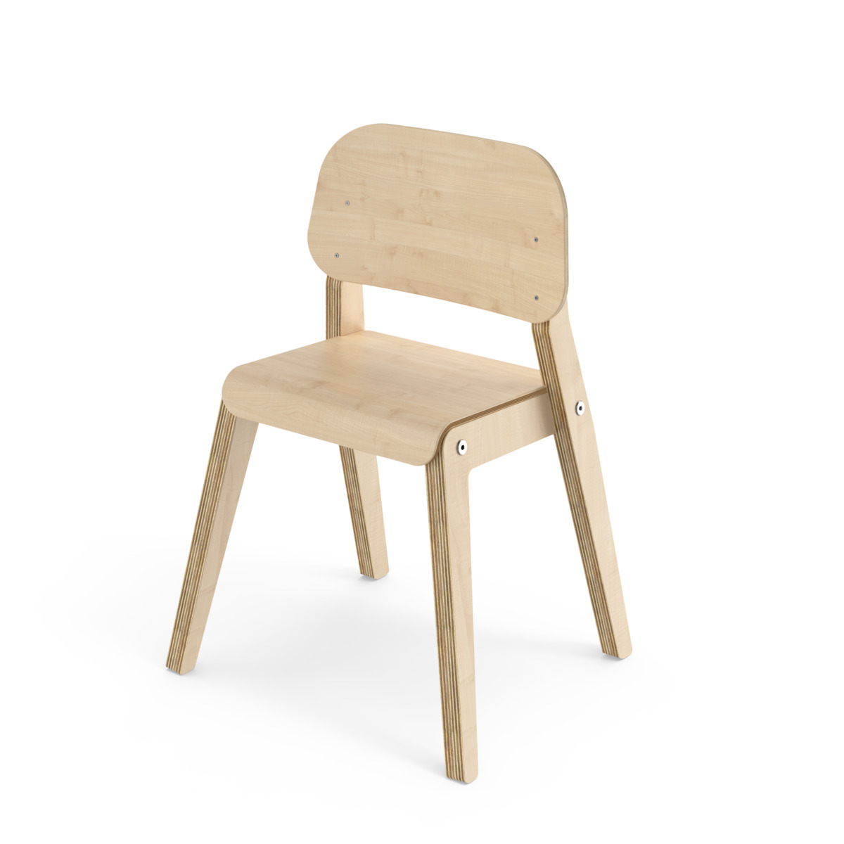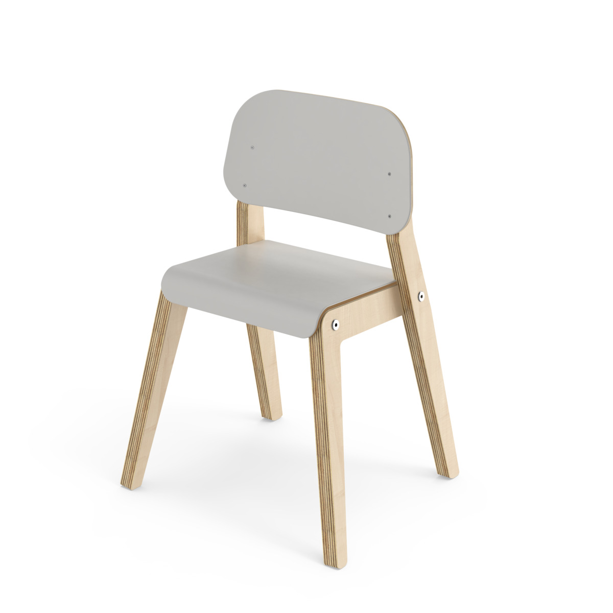 Grow er en nett barnestol med høy designverdi. Stolen har en sirkulær design der alle delene er utskiftbare og kan byttes ut, noe som gir stolen en ekstra lang levetid. Stolens benramme er laget av klarlakkert bjørkekryssfiner. Setet og ryggen er laget av kryssfiner med en overflate av slitesterkt høytrykkslaminat. Ryggstøtten er mykt buet for å gi barnet ekstra komfort og støtte, og det lett tilbakelente setet med sin avrundede forkant gir en myk følelse og hindrer barnet i å skli ned. Setet har ingen skruehull i overflatelaget, noe som gjør det enkelt å tørke av og holde rent. Setedybden og høyden på stolen er tilpasset barn mellom 105-120 cm. Stolen kan stables i opptil tre i høyden. Dette produktet oppfyller de høye kravene i EN 17191-standarden, noe som betyr at barn får det beste innen sikkerhet og komfort.