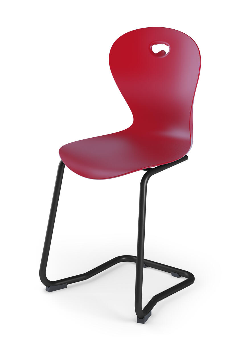 Plastskall av 100% resirkulert materiale. Stolen oppfyller EN 1729-1&2 Sizemark 5&6 som innebærer at brukere mellom 146 og 188 cm sitter bekvemt og ergonomisk riktig. Veskekrok på baksiden. Kan stables maks 4 stoler. Kan henges opp hvis stolen snus. Svart understell RAL 9005. Enkel å gjøre ren. Sittehøyde 45 cm, setebredde 42 cm, setedybde 40 cm.
