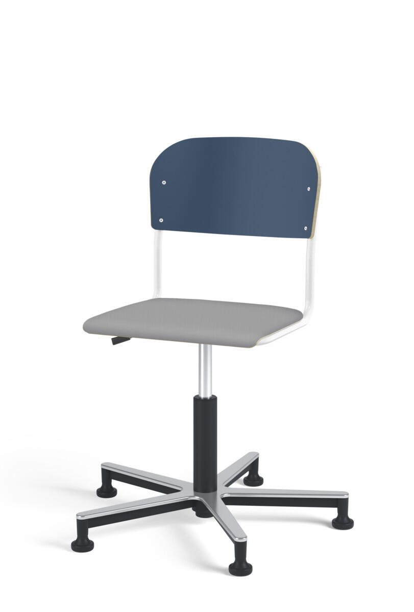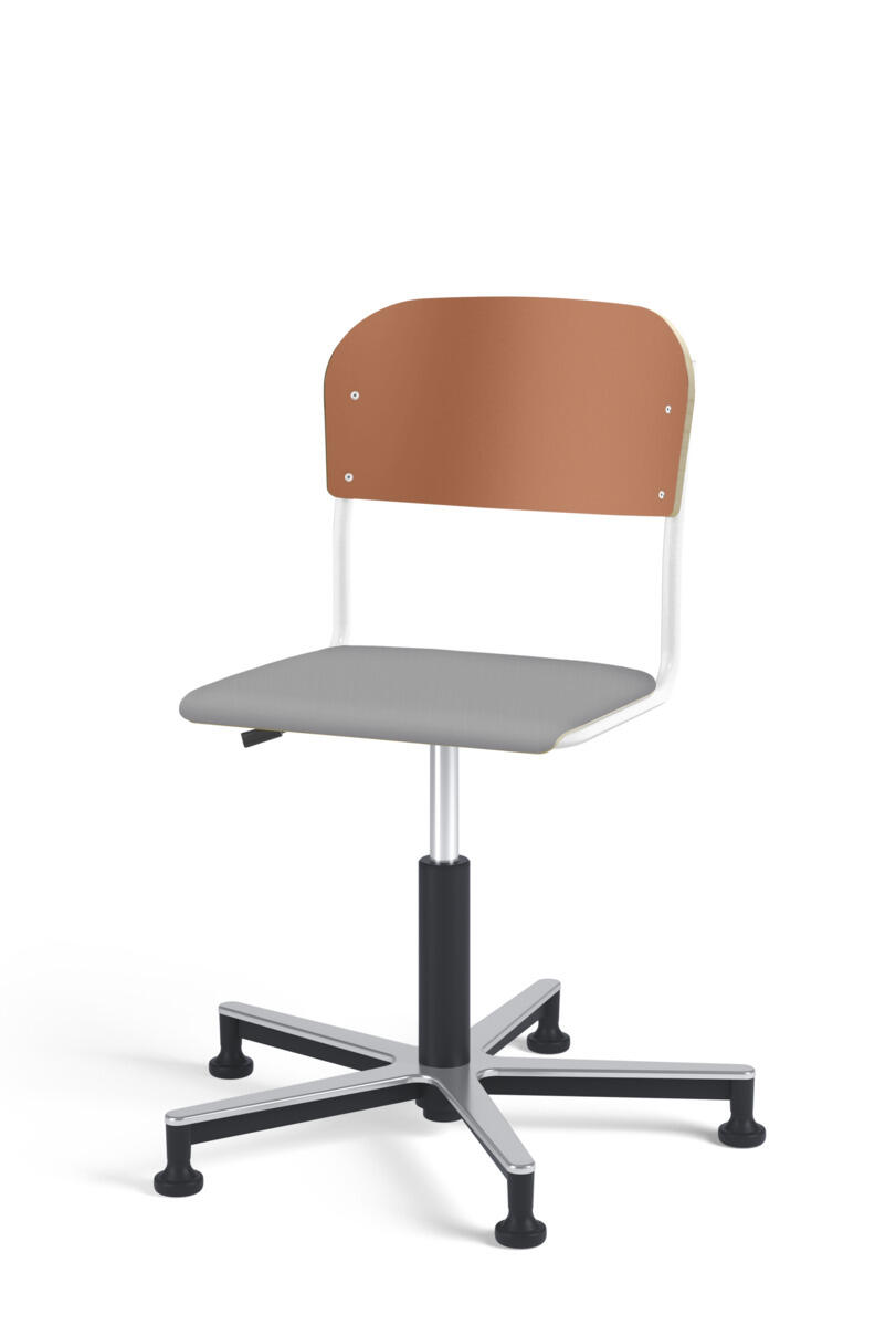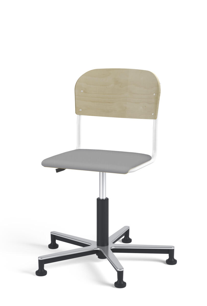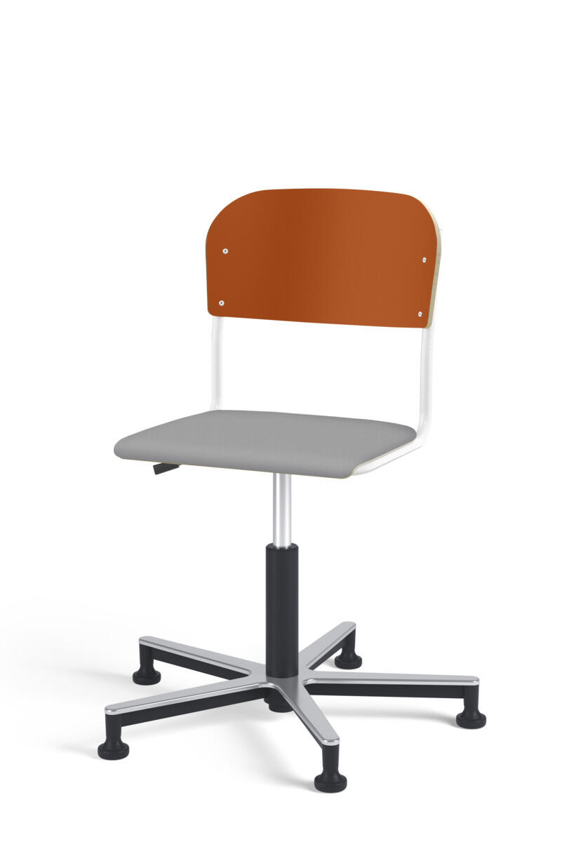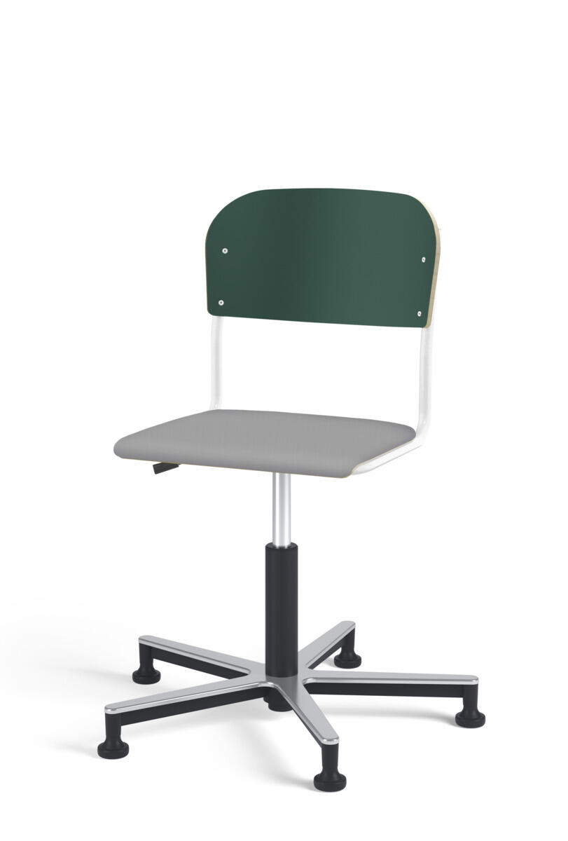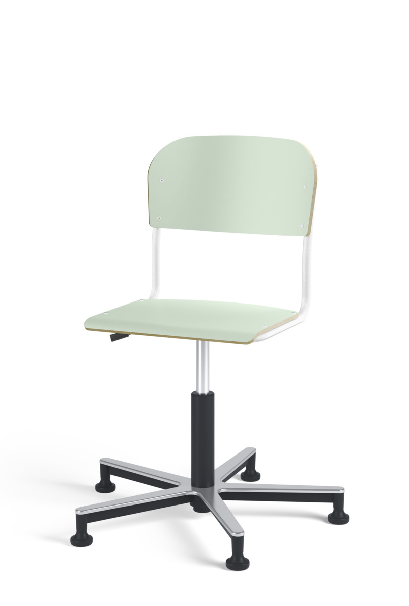 Stol Matte med gassfjær for justering av setehøyde ved hjelp av en spak. Sete og rygg i høytrykkslaminat. Ramme for sete og rygg i pulverlakkert stål, sølv. Kryss i aluminium med glideføtter. Tilvalg: sete kledd i stoffet Xtreme Padang YS145 (100 % polyester).