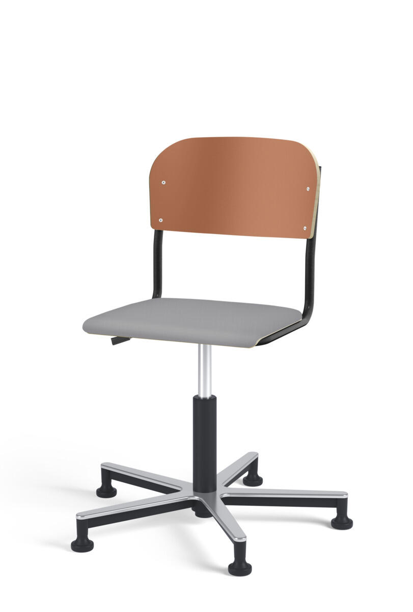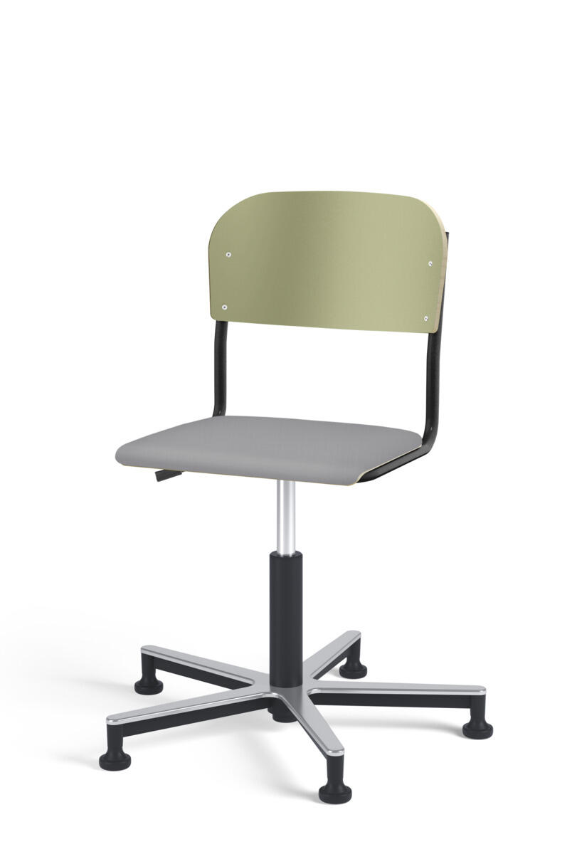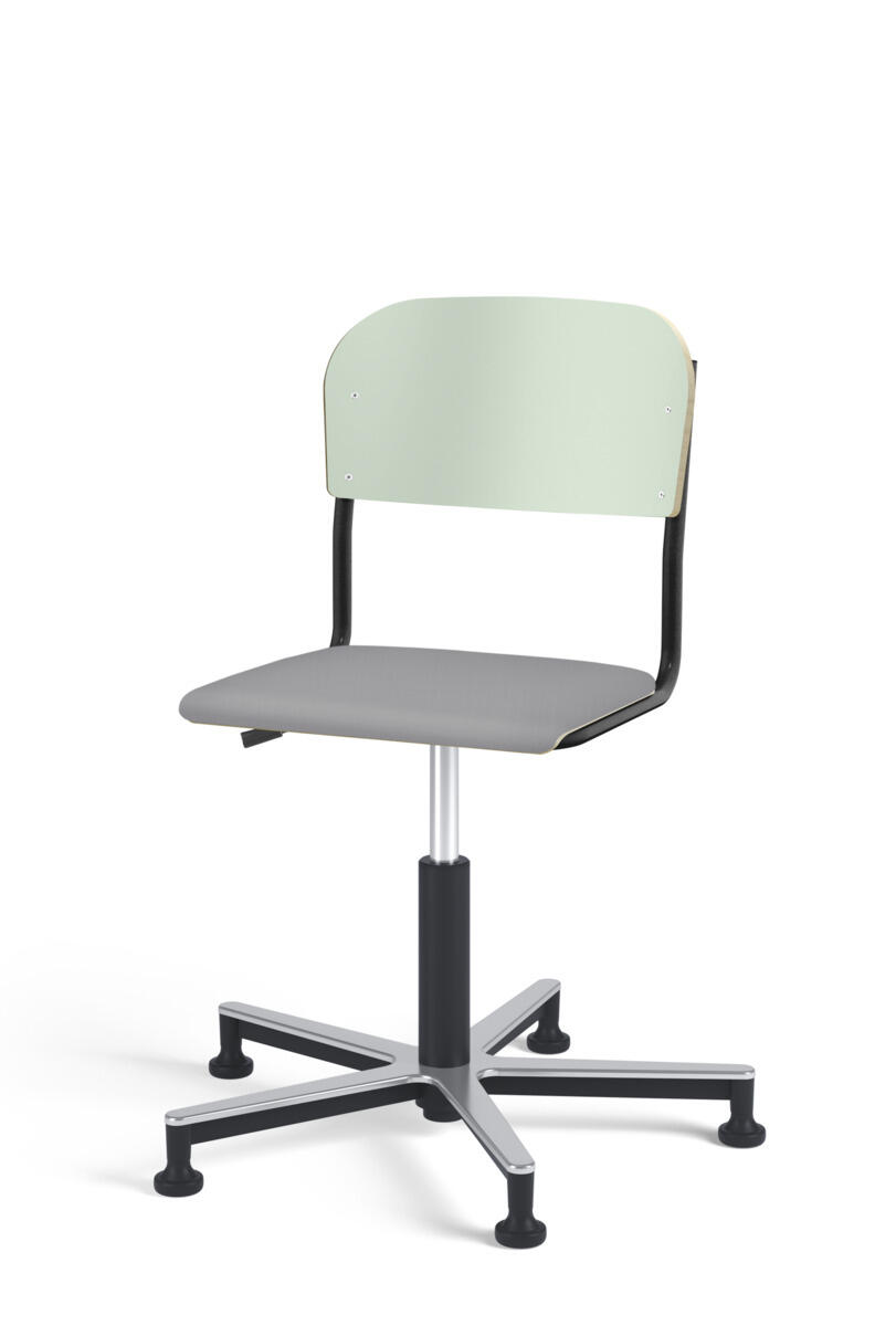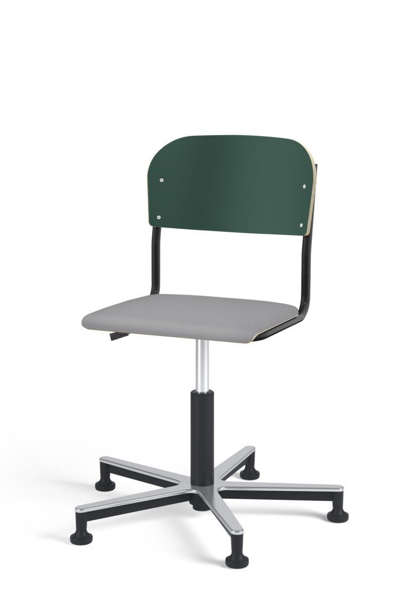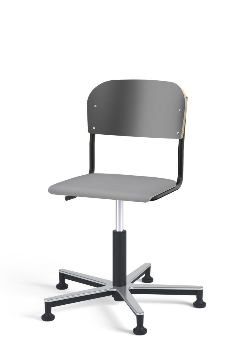 Stol Matte med gassfjær for justering av setehøyde ved hjelp av en spak. Sete og rygg i høytrykkslaminat. Ramme for sete og rygg i pulverlakkert stål, sort. Kryss i aluminium med hjul. Tilvalg: sete kledd i stoffet Xtreme Padang YS145 (100 % polyester).