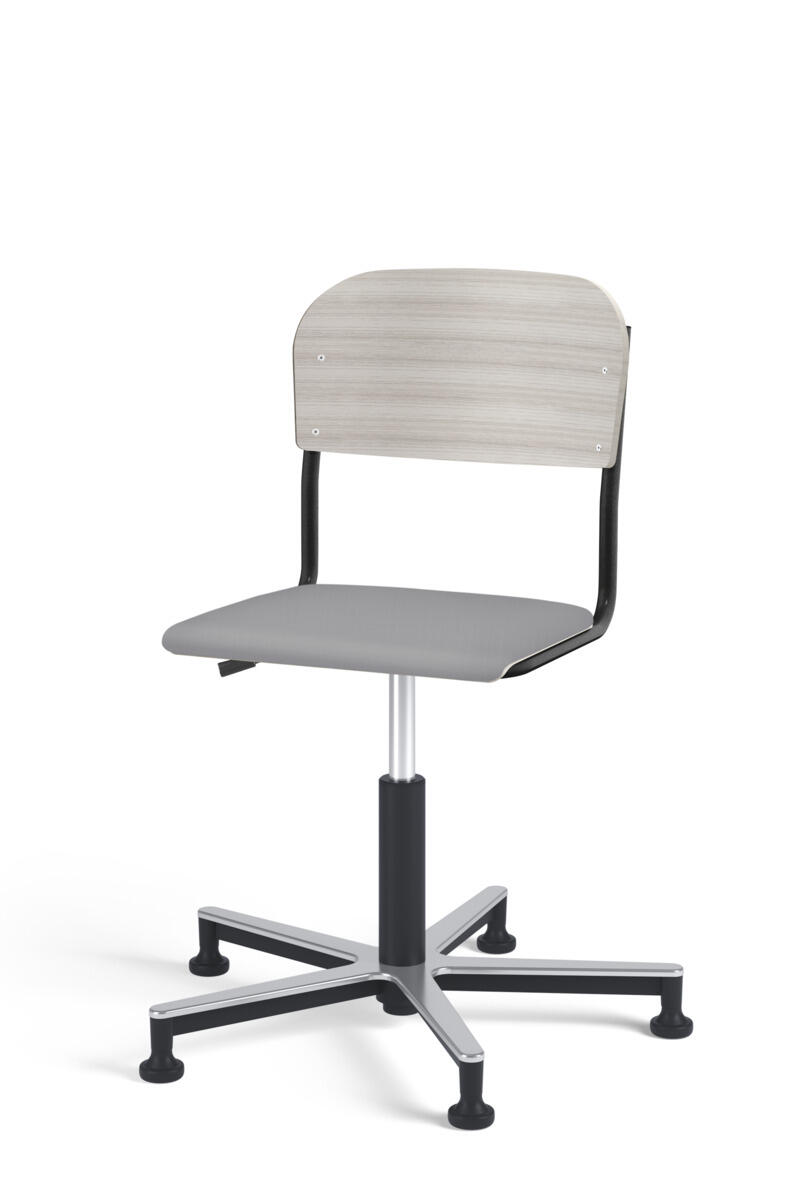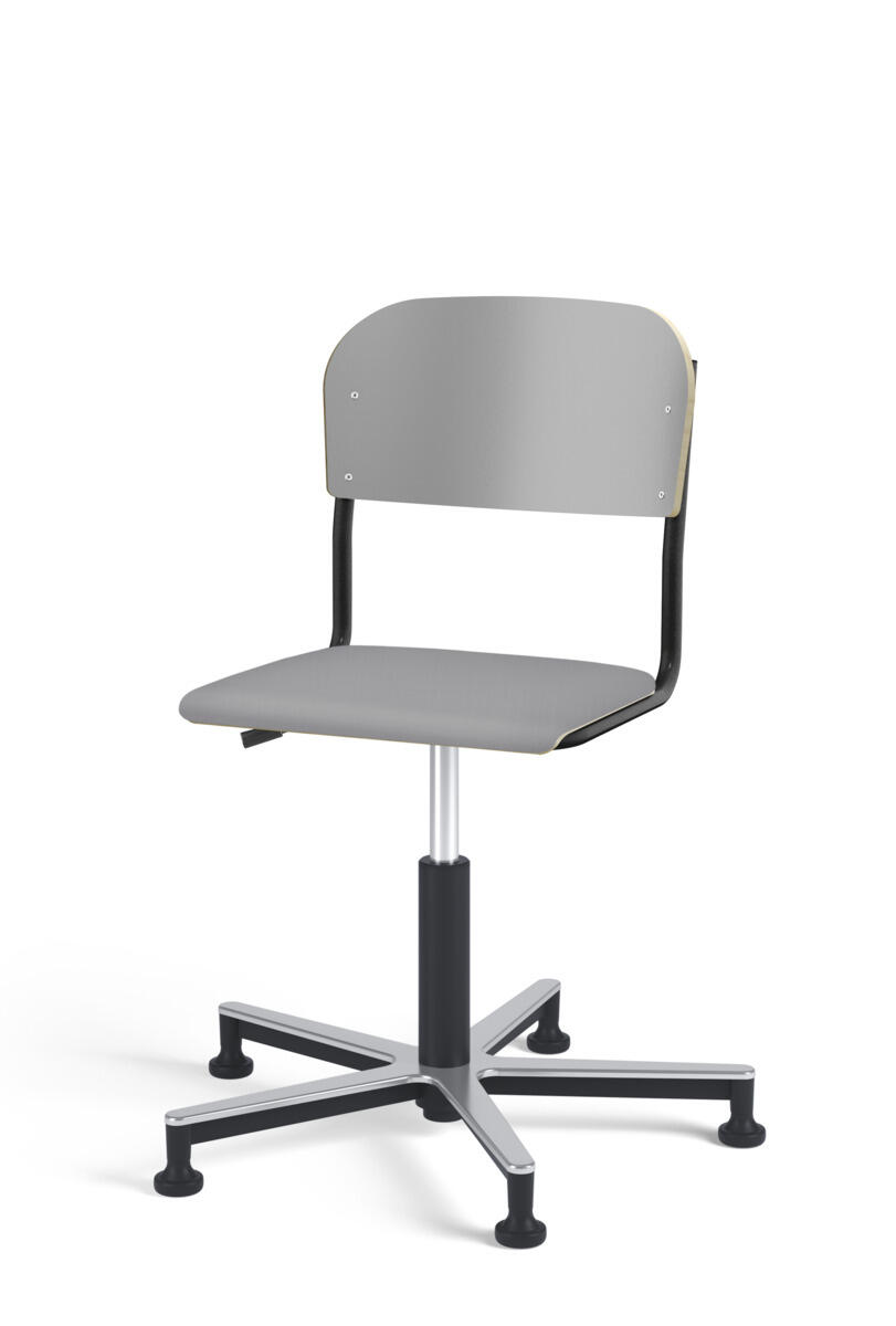 Stol Matte med gassfjær for justering av setehøyde ved hjelp av en spak. Sete og rygg i høytrykkslaminat. Ramme for sete og rygg i pulverlakkert stål, sølv. Kryss i aluminium med glideføtter. Tilvalg: sete kledd i stoffet Xtreme Padang YS145 (100 % polyester).