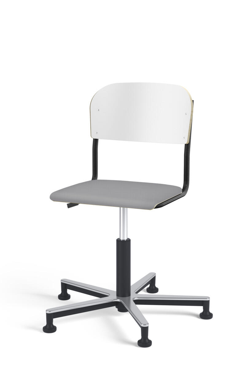Stol Matte med gassfjær for justering av setehøyde ved hjelp av en spak. Sete og rygg i høytrykkslaminat. Ramme for sete og rygg i pulverlakkert stål, hvit. Kryss i aluminium med glideføtter. Tilvalg: sete kledd i stoffet Xtreme Padang YS145 (100 % polyester).