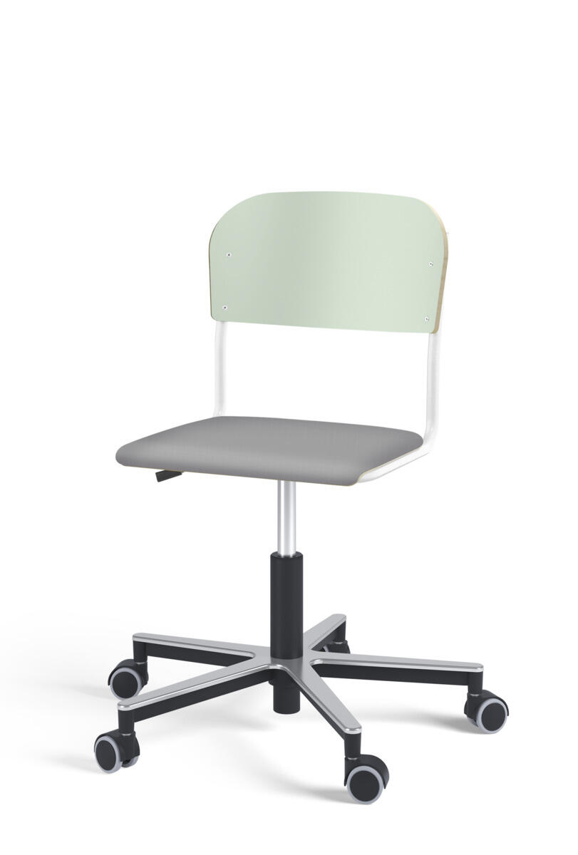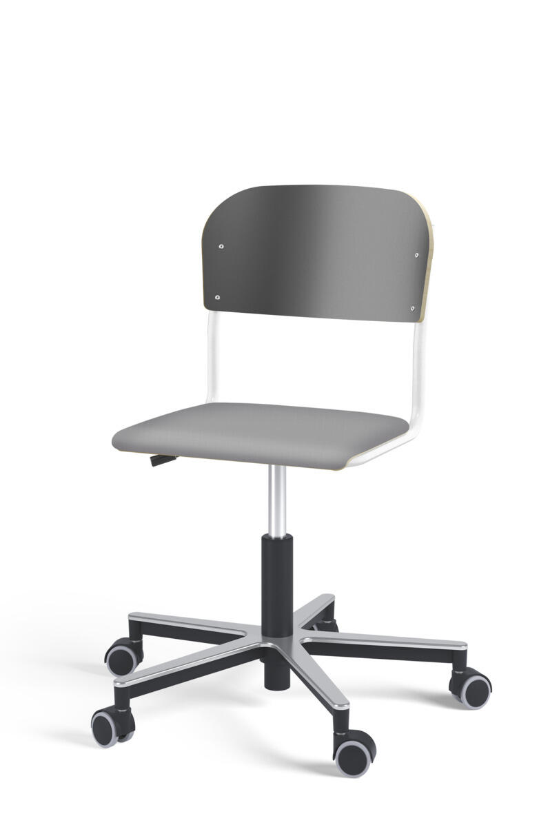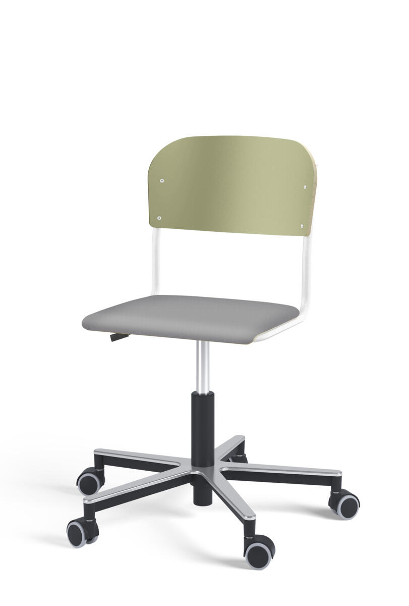 Stol Matte med gassfjær for justering av setehøyde ved hjelp av en spak. Sete og rygg i høytrykkslaminat. Ramme for sete og rygg i pulverlakkert stål, sølv. Kryss i aluminium med hjul. Tilvalg: sete kledd i stoffet Xtreme Padang YS145 (100 % polyester).