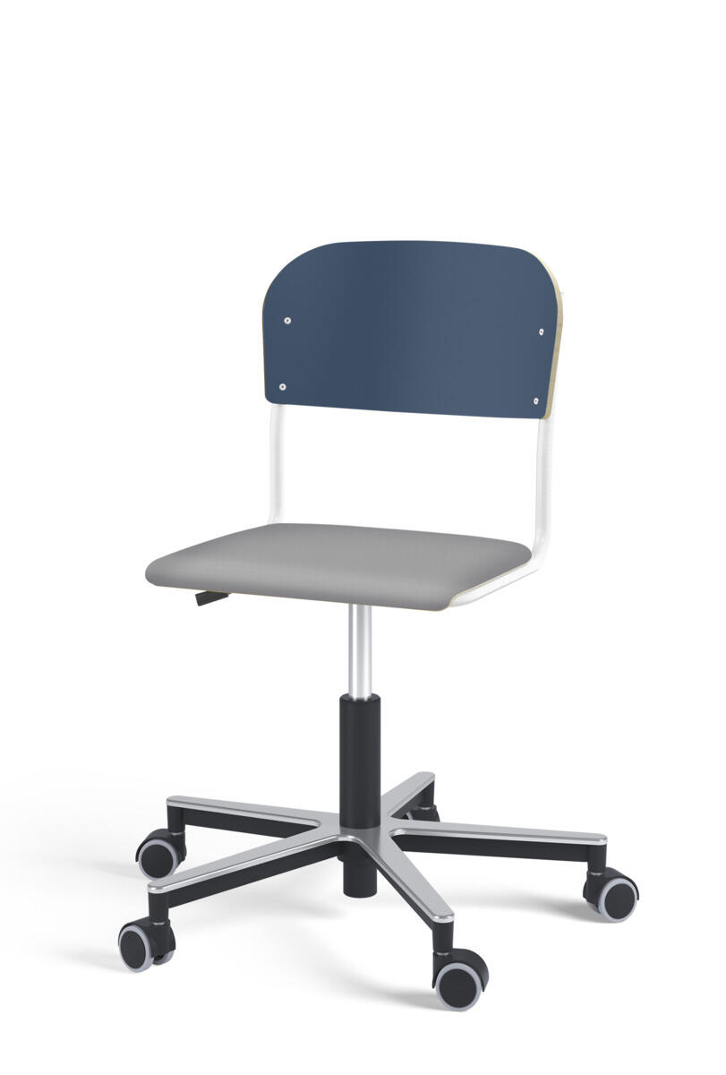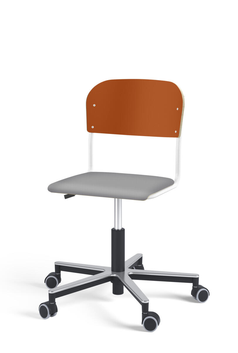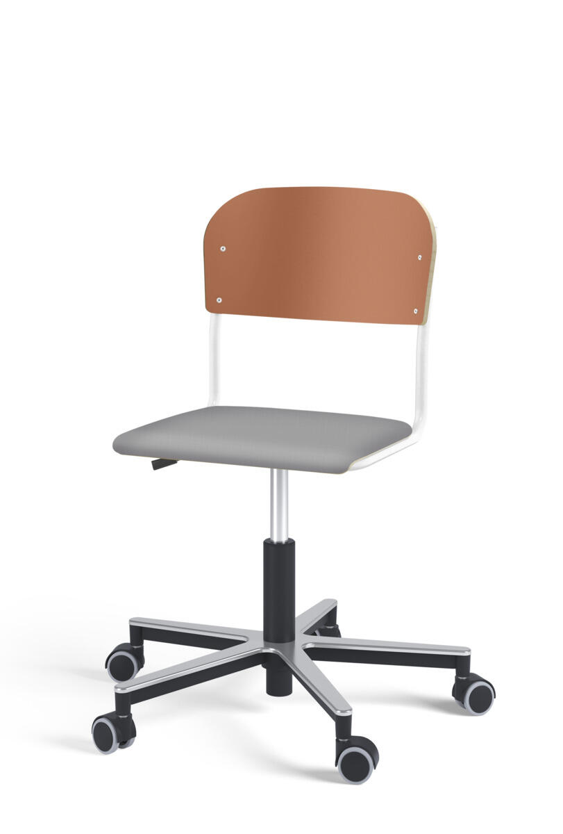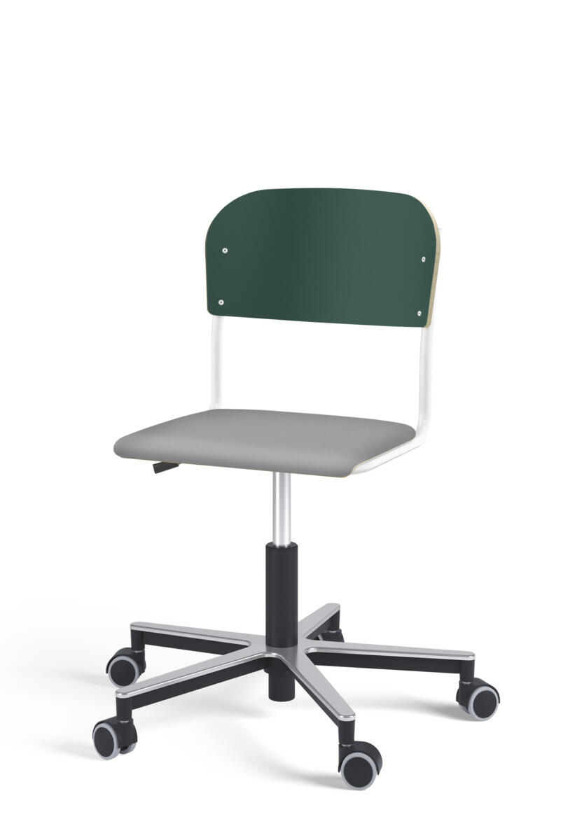 Stol Matte med gassfjær for justering av setehøyde ved hjelp av en spak. Sete og rygg i høytrykkslaminat. Ramme for sete og rygg i pulverlakkert stål, sølv. Kryss i aluminium med hjul. Tilvalg: sete kledd i stoffet Xtreme Padang YS145 (100 % polyester).