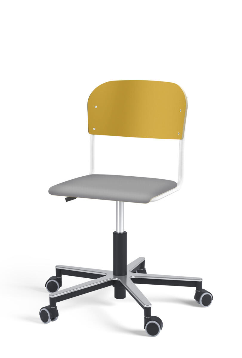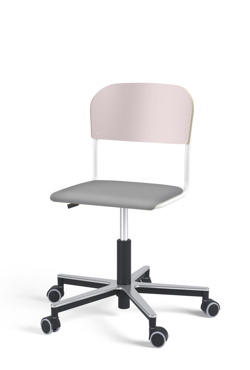 Stol Matte med gassfjær for justering av setehøyde ved hjelp av en spak. Sete og rygg i høytrykkslaminat. Ramme for sete og rygg i pulverlakkert stål, hvit. Kryss i aluminium med hjul. Tilvalg: sete kledd i stoffet Xtreme Padang YS145 (100 % polyester).