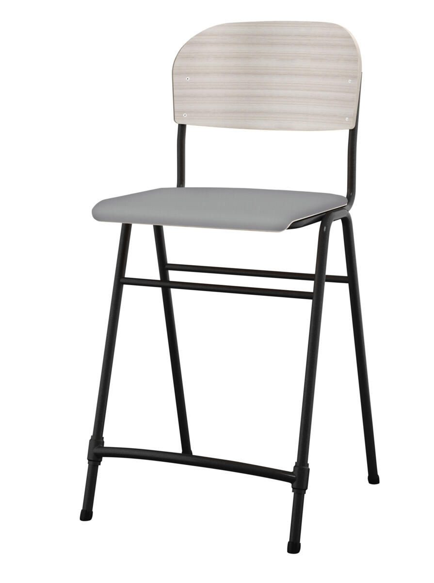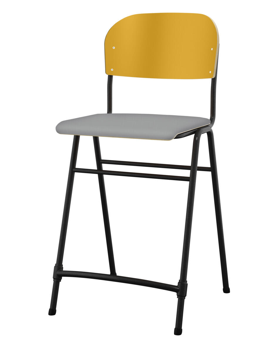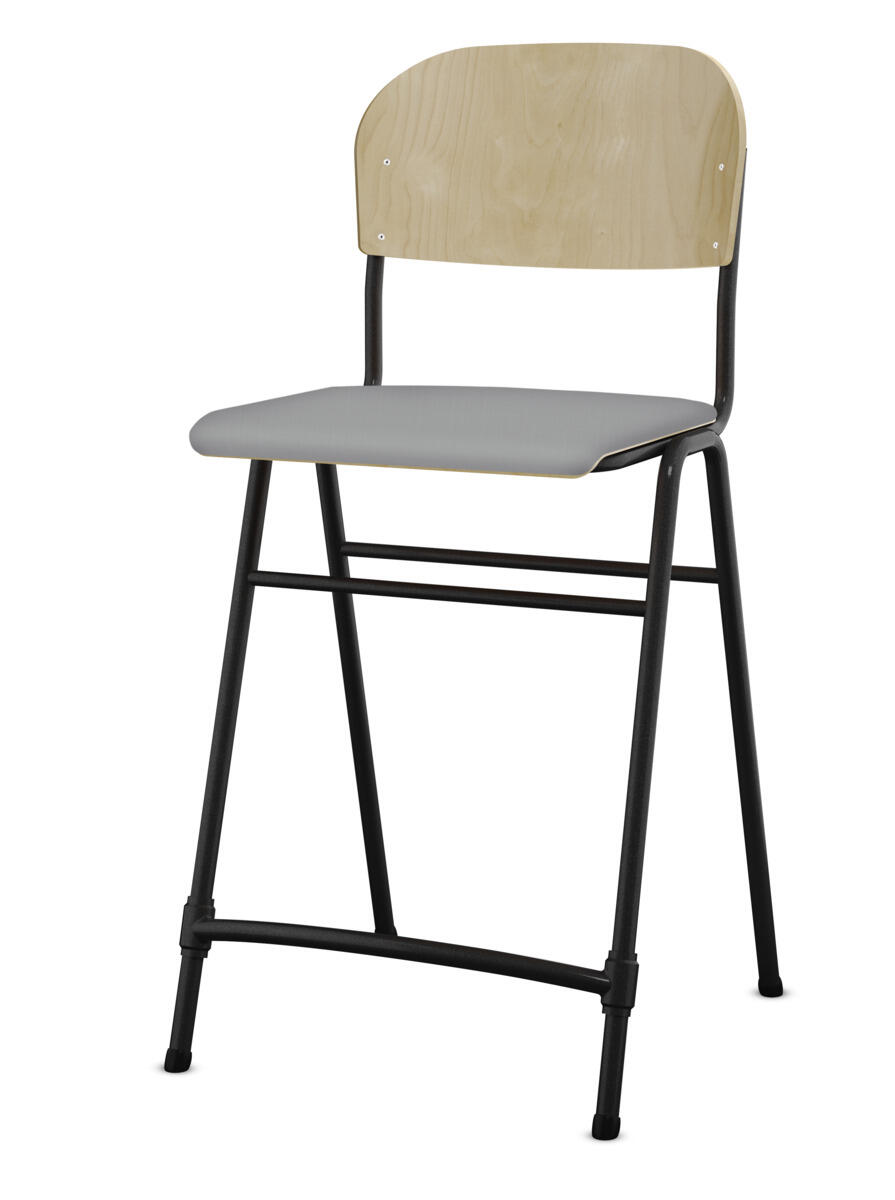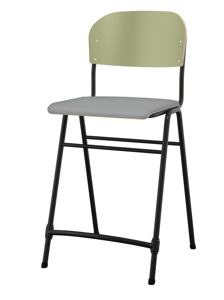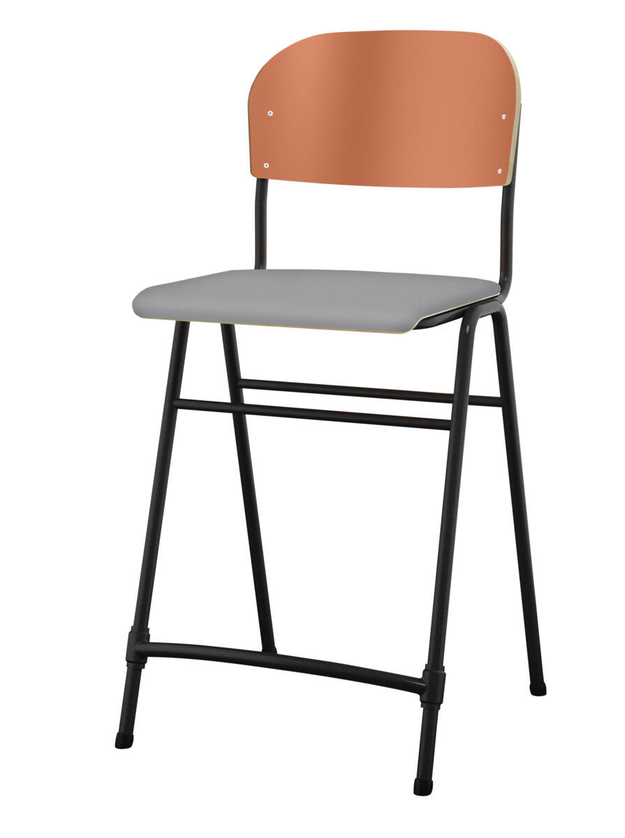 Sete og rygg belagt med høytrykkslaminat. Epoxylakkert understell i sølv RAL 9006. Stillbar i høydene 38, 43, 46 og 51 cm. Setebredde 42 cm, sittedybde 39 cm. Vekt 5 kg. Justerbare føtter.