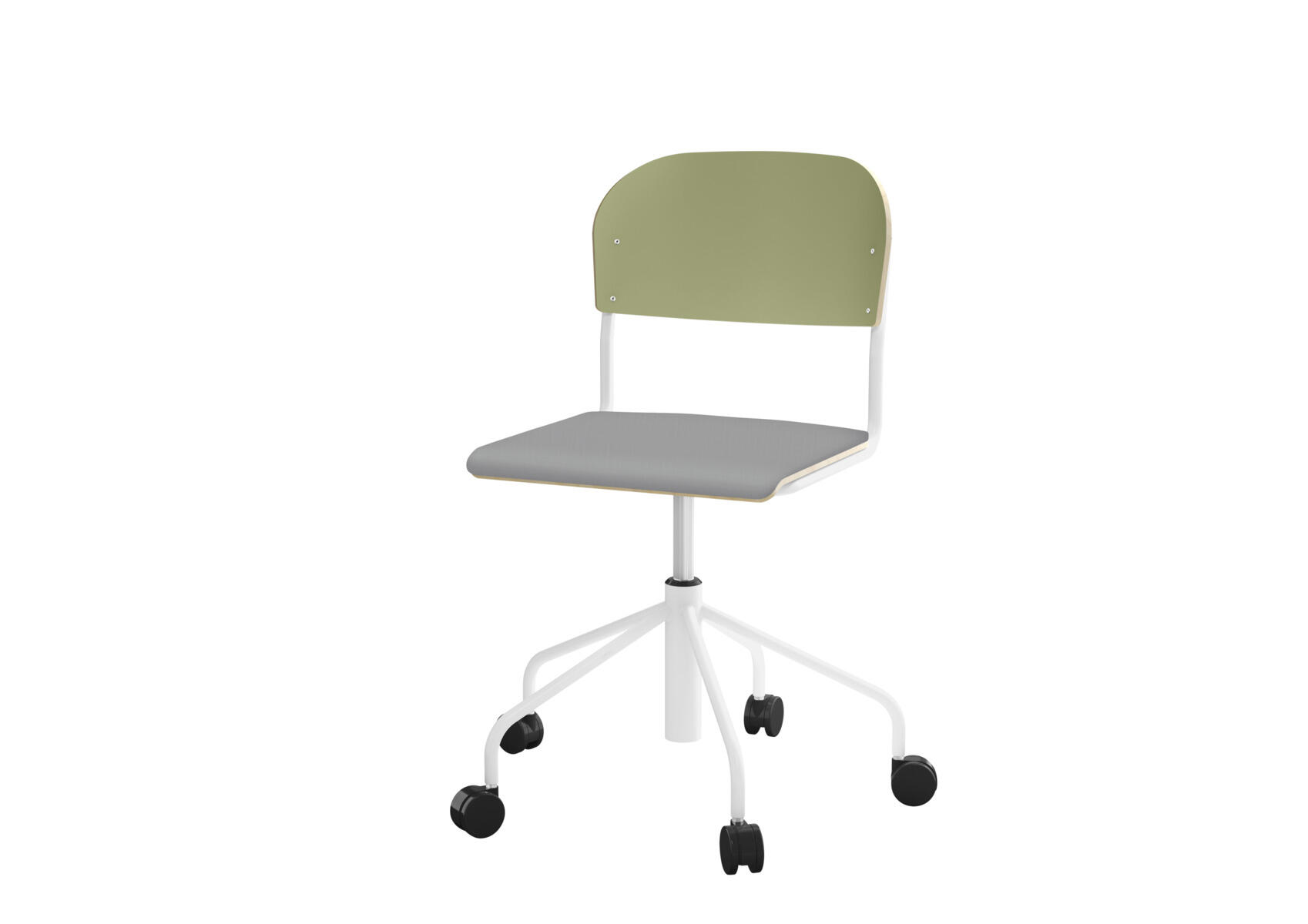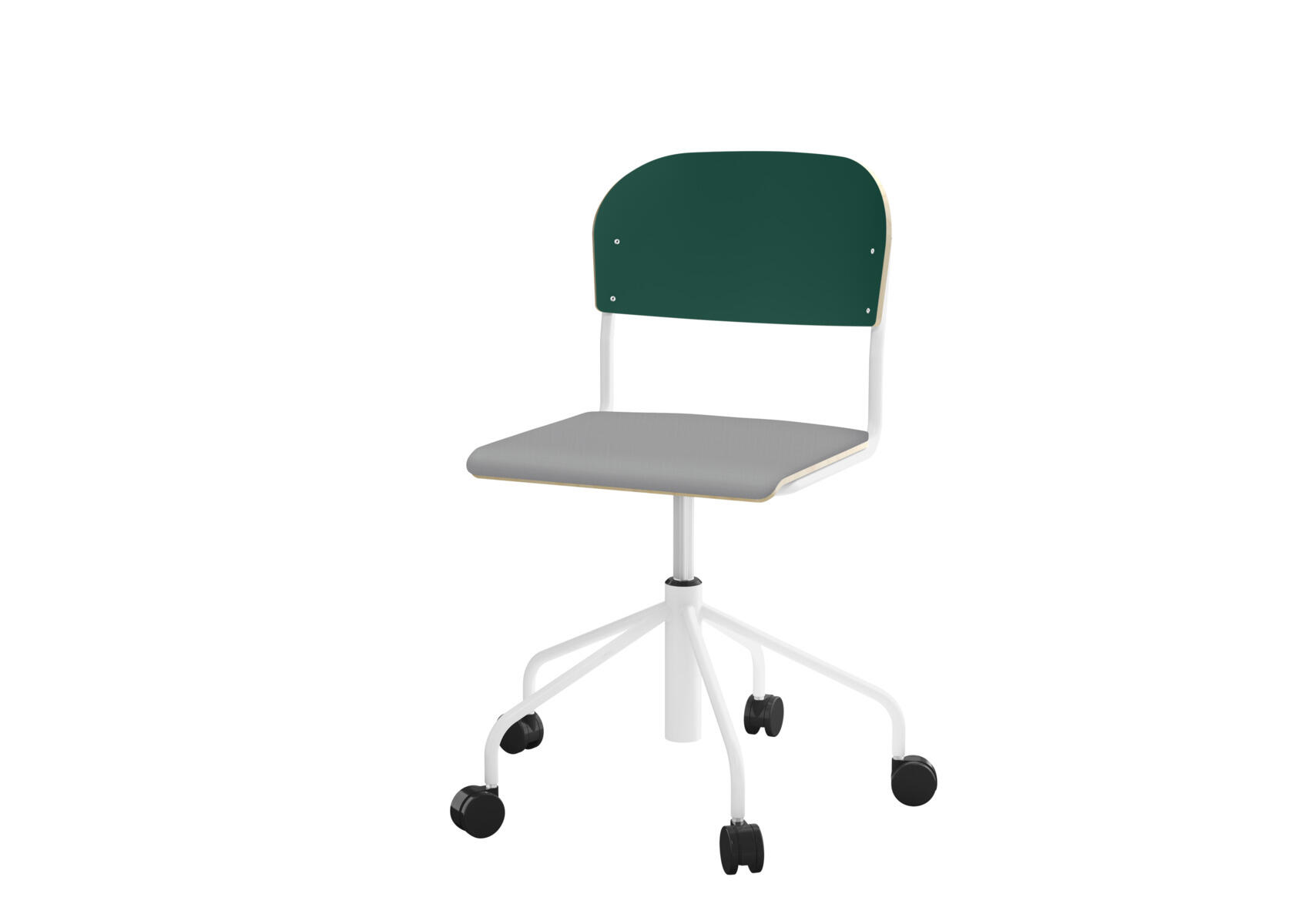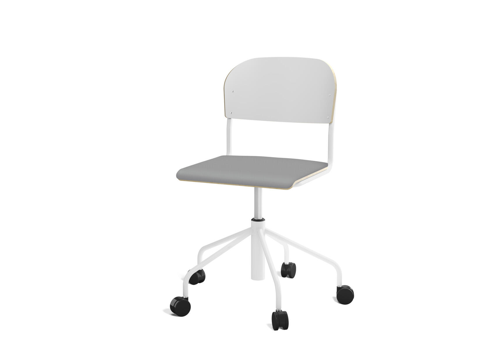 Elevstol med høyt 5-kryss stativ på hjul lakkert i RAL 9003. Setehøyden justeres med gassfjær i intervallene 45-56. Som et tilvalg kan du få setet trukket i stoffet Xtreme Padang YS 145 som er laget av 100% polyester.